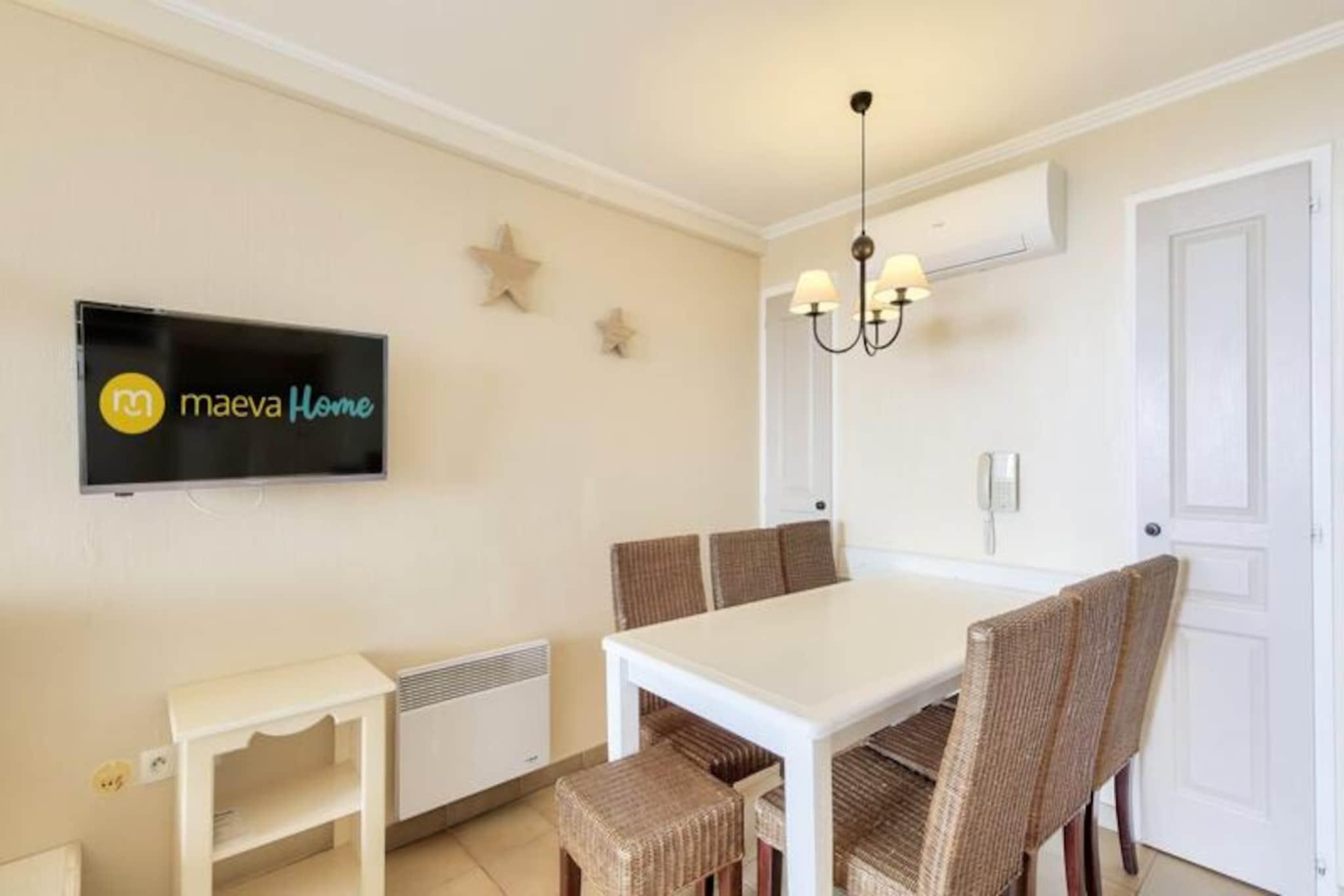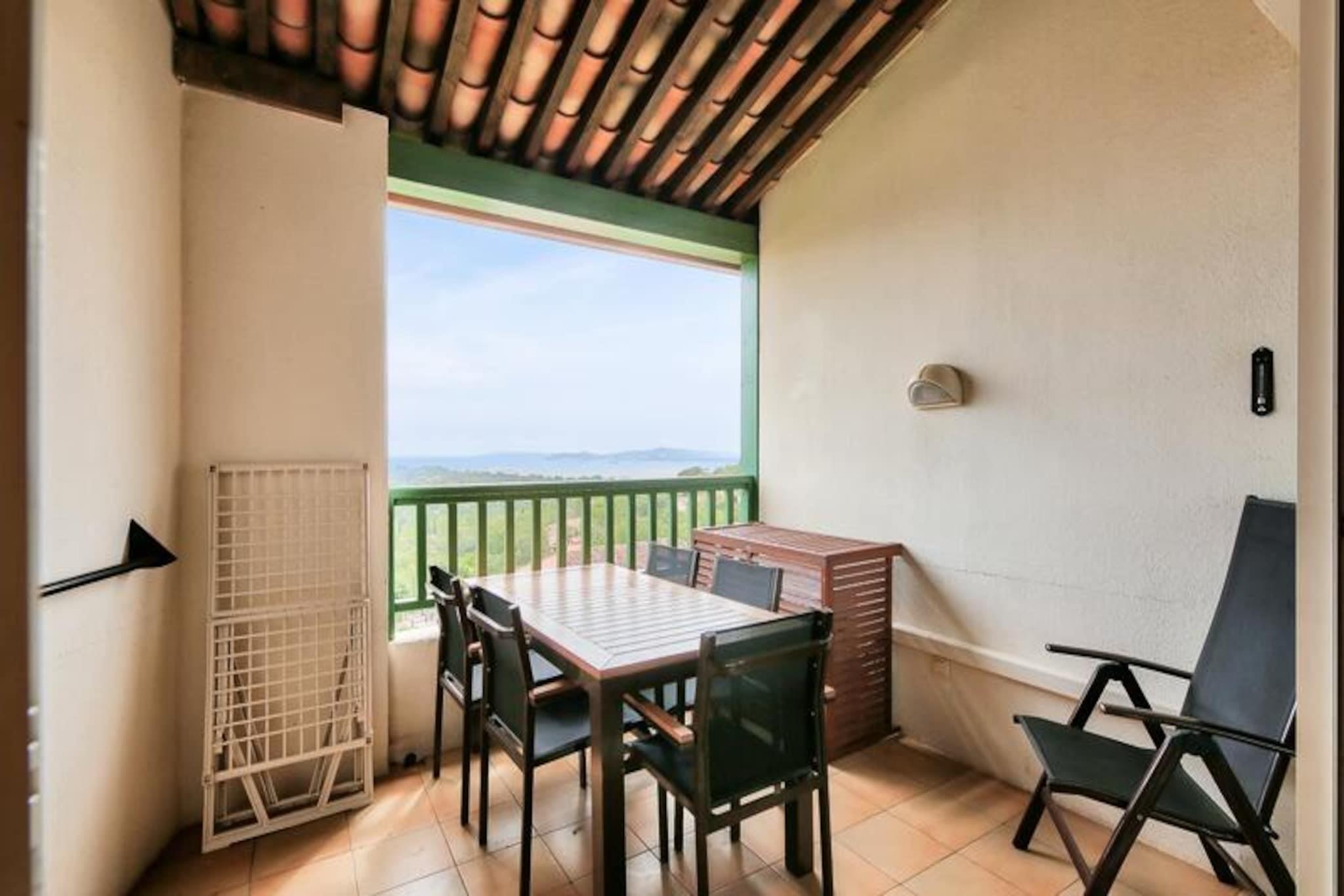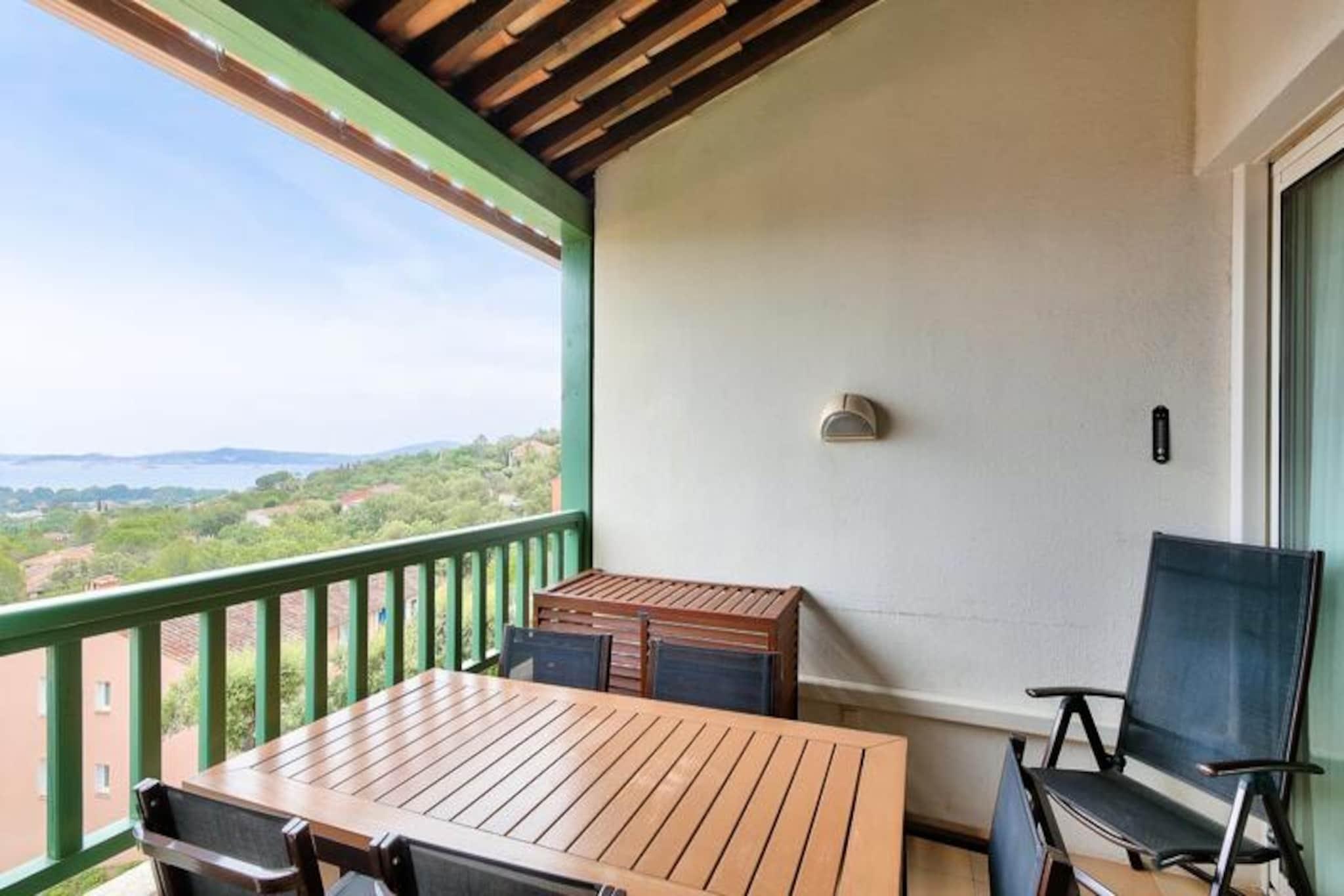 This air-conditioned apartment rental is perfect for a family vacation in Provence. The property boasts a balcony with stunning sea views, an aquatic area with multiple pools (including a wave pool!), and children's clubs for ages 4-12 (during peak season). The surrounding area offers charming villages like Grimaud and Saint-Tropez, beautiful beaches like Lavandou, and exciting activities like Luna Park funfair. While a car is recommended to fully explore the area, the property itself provides on-site entertainment including tennis courts, petanque, and a restaurant with Provençal cuisine. Located 3km from a sandy beach, this apartment features 2 bedrooms, 2 bathrooms, a kitchen, and a living room with a sofa bed and a trundle bed, comfortably accommodating up to 7 guests. The kitchen is equipped for preparing meals, and the balcony offers the perfect spot to relax and enjoy the sea views. Please note that amenities like Wi-Fi, pet access, crib rentals, linens, towels, and end-of-stay cleaning are all subject to additional charges.