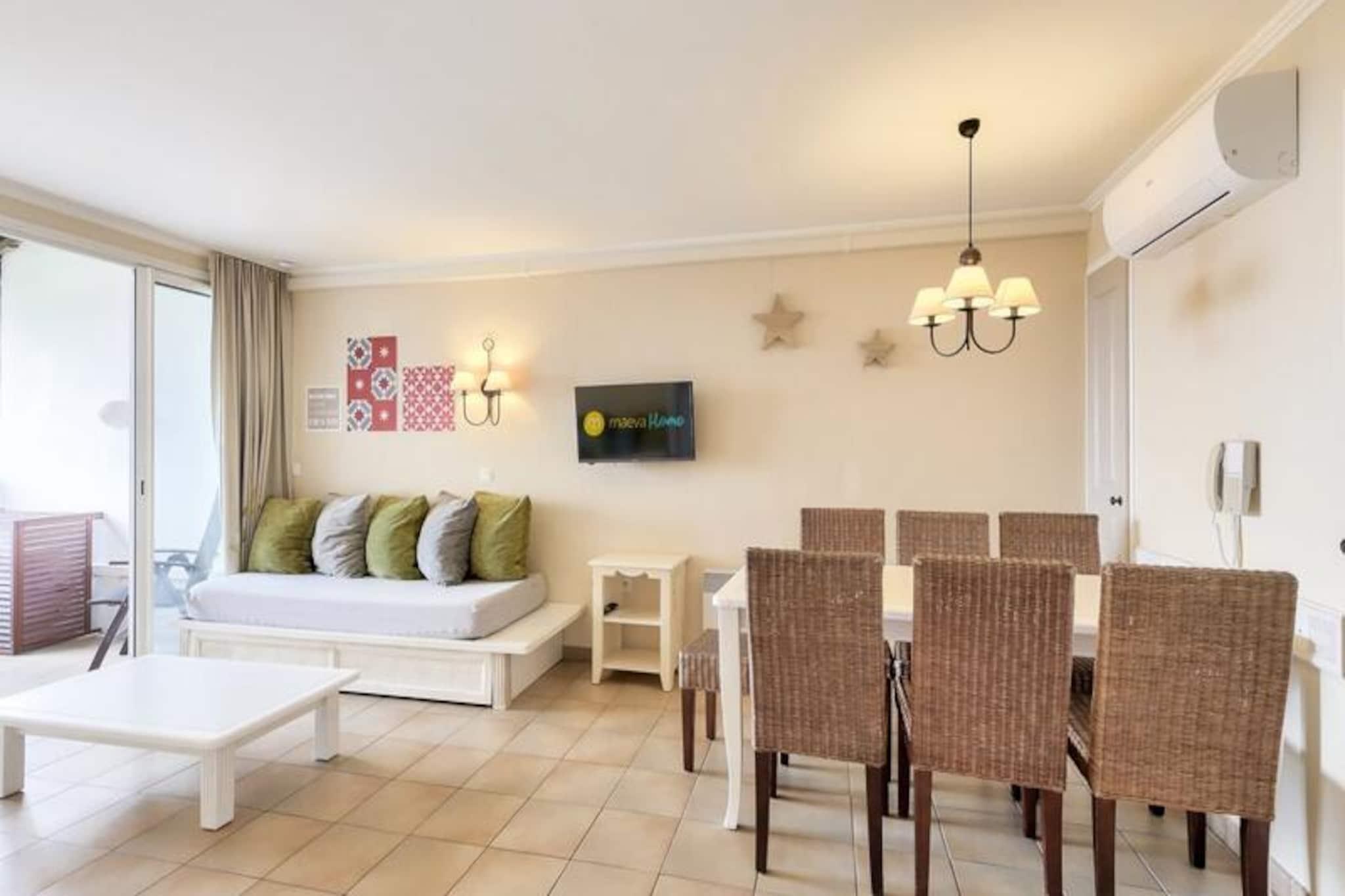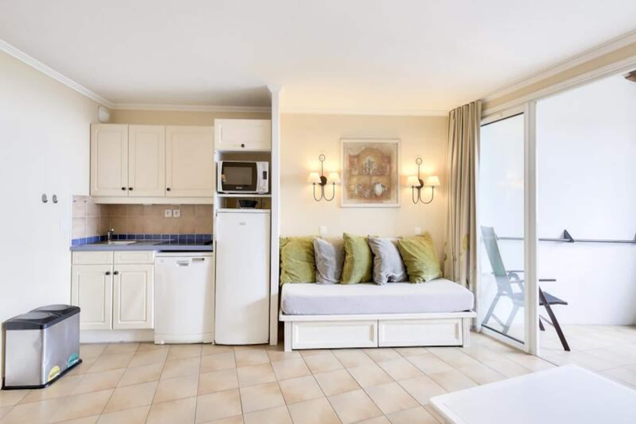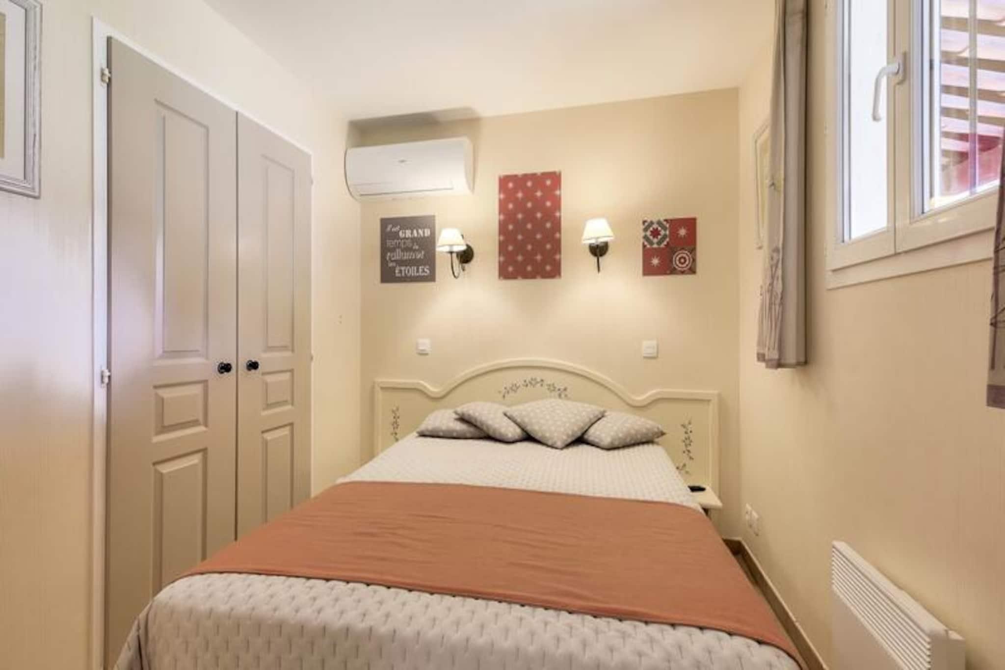 This air-conditioned apartment rental is perfect for a family vacation in Provence. The property boasts a balcony with stunning sea views, an aquatic area with multiple pools (including a wave pool!), and children's clubs for ages 4-12 (during peak season). The surrounding area offers charming villages like Grimaud and Saint-Tropez, beautiful beaches like Lavandou, and exciting activities like Luna Park funfair. While a car is recommended to fully explore the area, the property itself provides on-site entertainment including tennis courts, petanque, and a restaurant with Provençal cuisine. Located 3km from a sandy beach, this apartment features 2 bedrooms, 2 bathrooms, a kitchen, and a living room with a sofa bed and a trundle bed, comfortably accommodating up to 7 guests. The kitchen is equipped for preparing meals, and the balcony offers the perfect spot to relax and enjoy the sea views. Please note that amenities like Wi-Fi, pet access, crib rentals, linens, towels, and end-of-stay cleaning are all subject to additional charges.