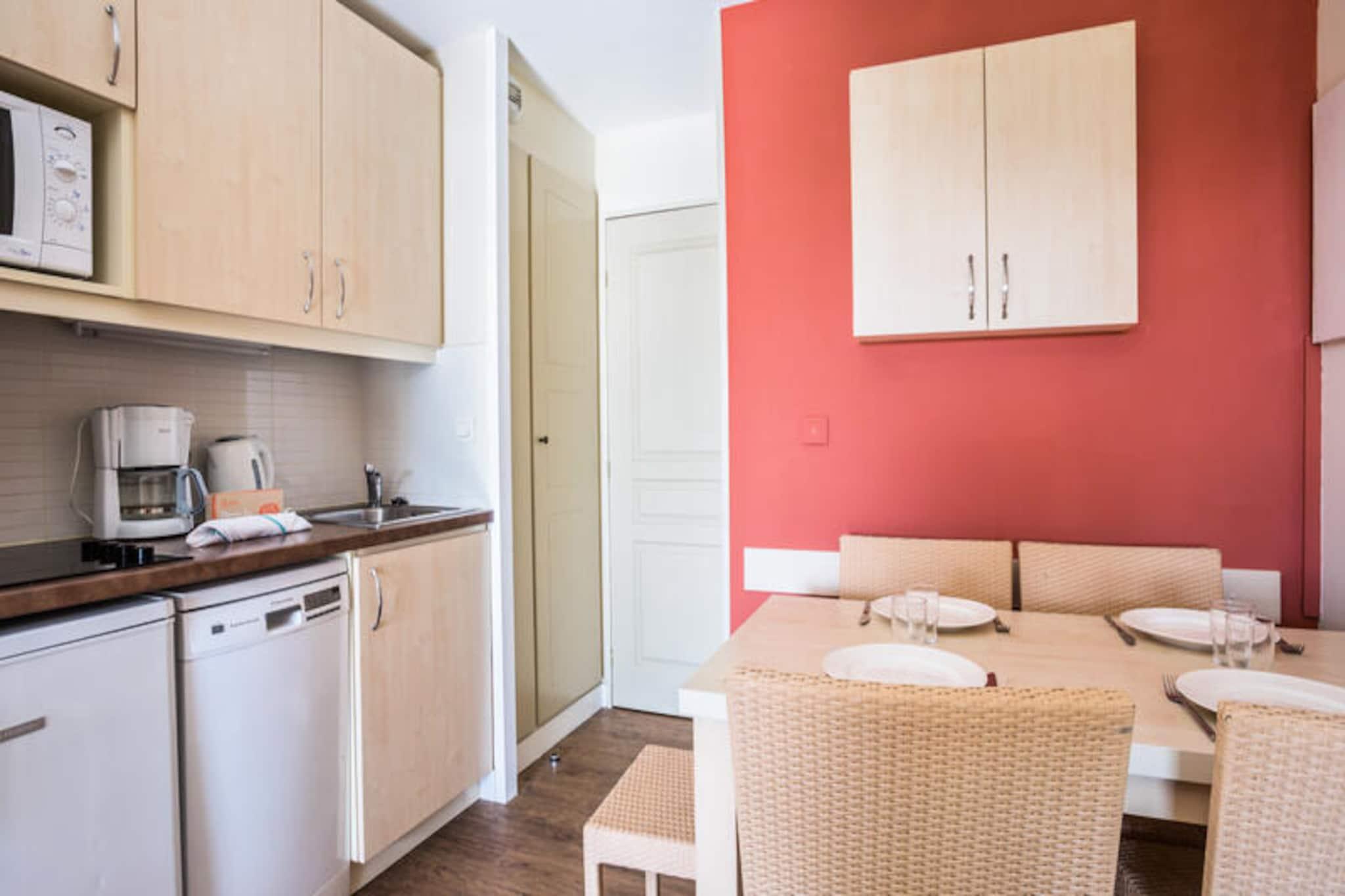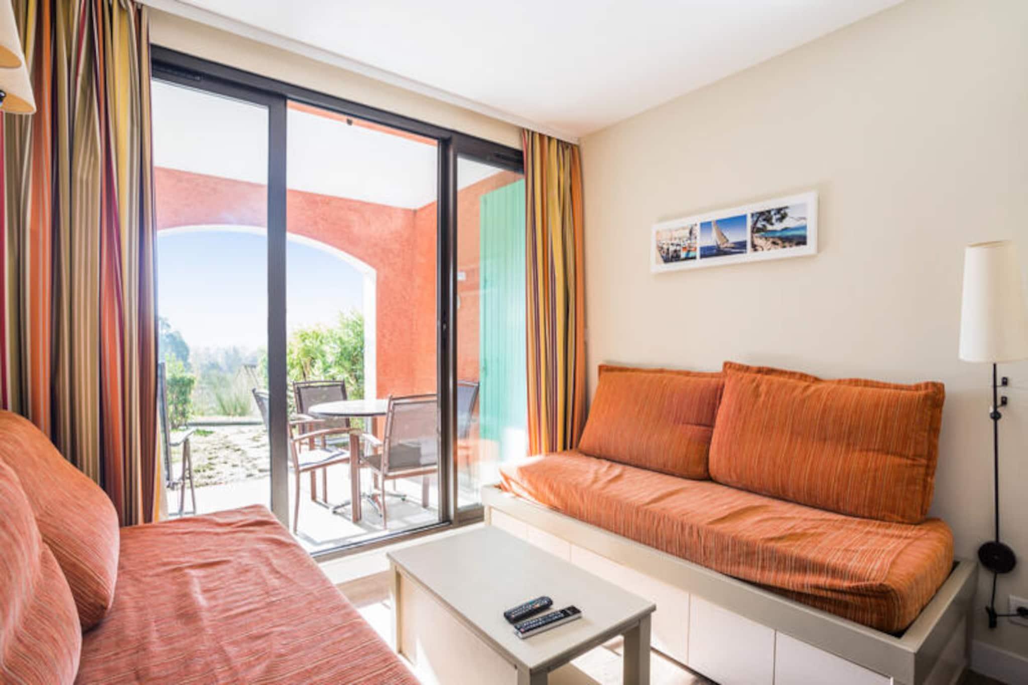 Nestled near the Massif des Maures, this charming vacation rental offers a peaceful retreat in a flower-filled 16-hectare estate. The apartment includes a living room with two single sofa beds, a double bedroom, a bathroom with a bathtub, and a separate toilet. The terrace and garden provide a lovely outdoor space to relax, and a free parking space is available. Pets are welcome (please inquire for additional charges), and bed linen is included, while towels are available for an extra fee. Located just 10km from Saint-Tropez and less than 500m from the beach, this residence places you close to both local attractions and natural beauty. The surrounding area offers cafes, shops, and markets for your convenience. The famous beach is just a short walk away, making it easy to enjoy the sun and sea. The apartment is well-equipped with an open-plan kitchen that includes everything you need for your stay. A dining table for four, a fridge, and cooking essentials are provided. The residence also features an outdoor swimming pool, open from April to October, with extended hours during peak season.
