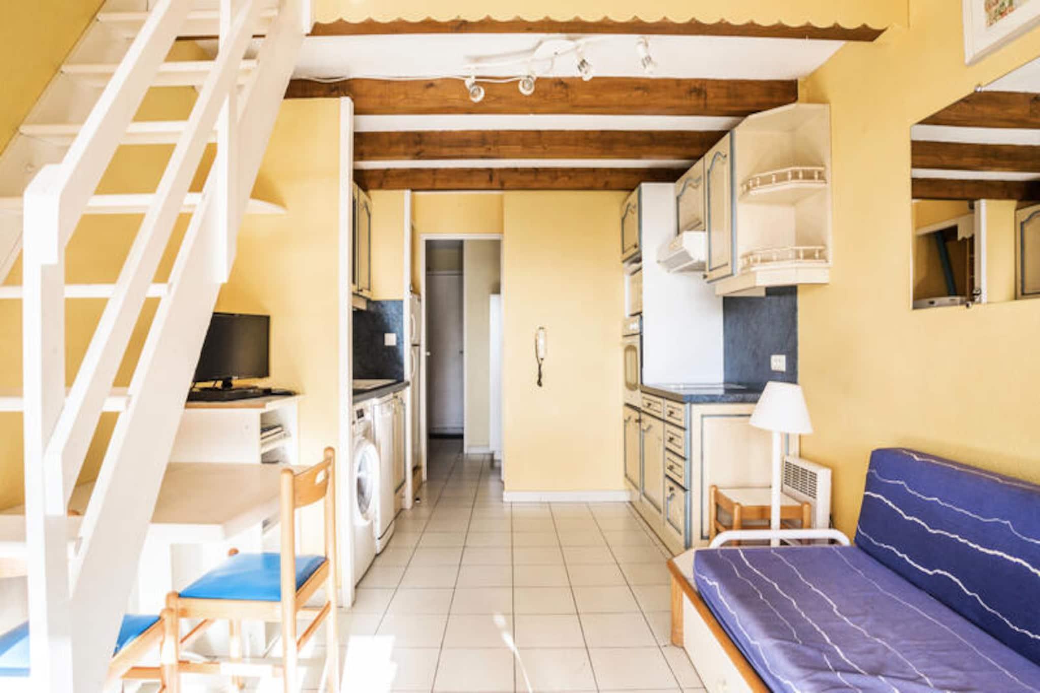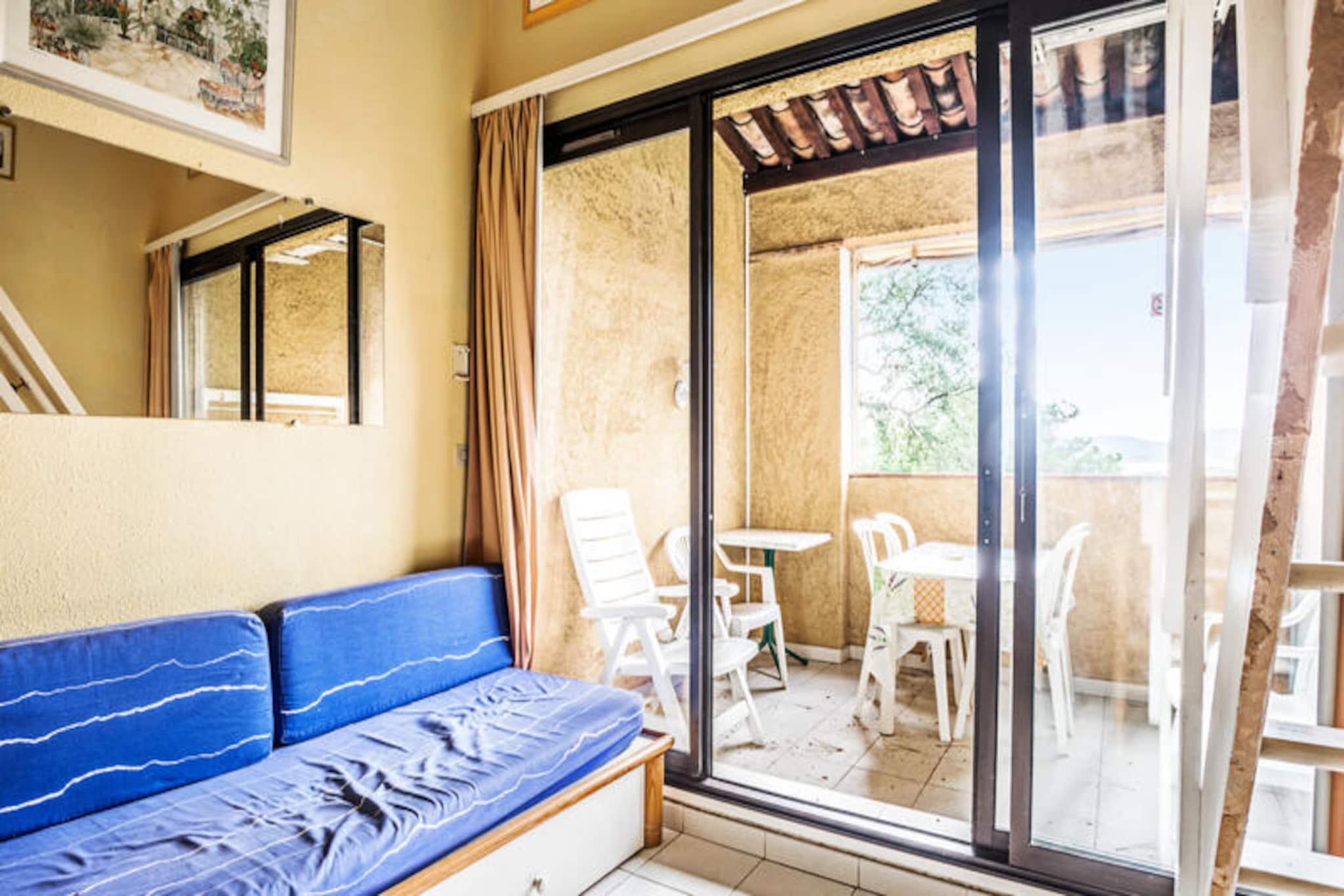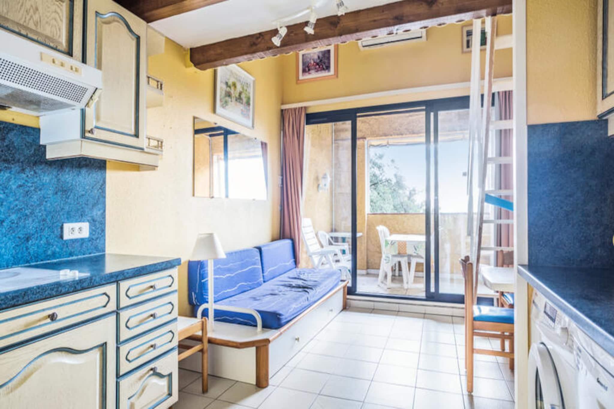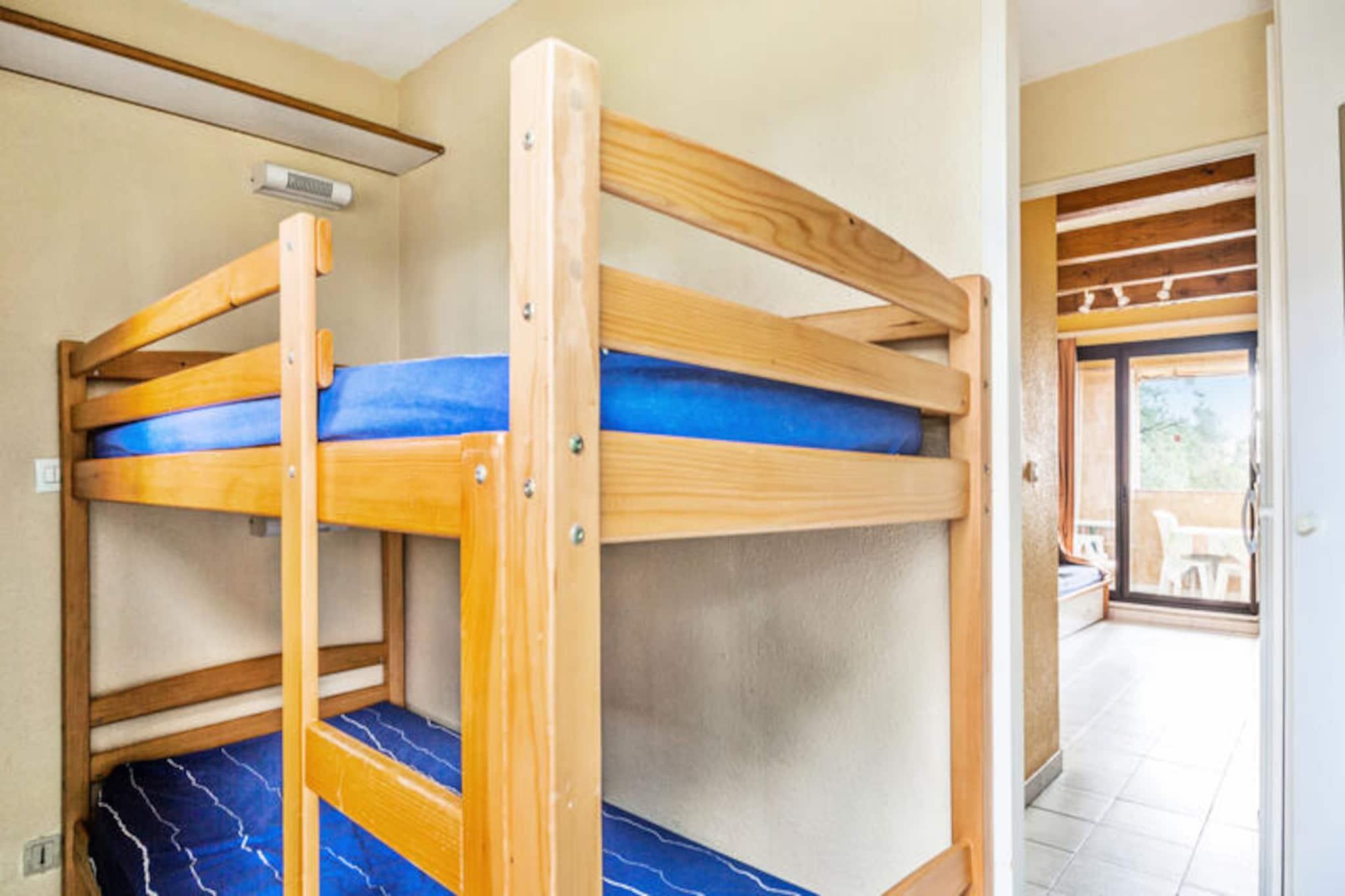 Located in the heart of a 16-hectare flower-filled estate near the Massif des Maures, this vacation apartment offers a peaceful retreat. It can accommodate up to 5 people with a living room, a mezzanine with a double bed, bunk beds in a dedicated area, and a single sofa bed. The apartment features a bathroom with a bathtub, a separate toilet, and a balcony. Pets are allowed for an additional fee, and bed linen is included, with towels available for an extra charge. The residence is perfectly located just 10km from Saint-Tropez and less than 500m from the beach, accessible via the park's south gate. You’ll be surrounded by Proven?al beauty and have easy access to the region’s attractions. Enjoy the local markets, cafes, and shops, or relax by the beach for a day in the sun. The vibrant town of Grimaud offers a wealth of cultural sites and restaurants for a true taste of the Mediterranean. The apartment includes a fully equipped kitchen, perfect for preparing your own meals, and a dining area with seating for five. Parking is provided at no extra charge, subject to availability. Additionally, you’ll have access to the outdoor swimming pool, open from April to October, allowing you to unwind and enjoy the beautiful surroundings. WiFi is available for an extra charge, and end-of-stay cleaning is mandatory.