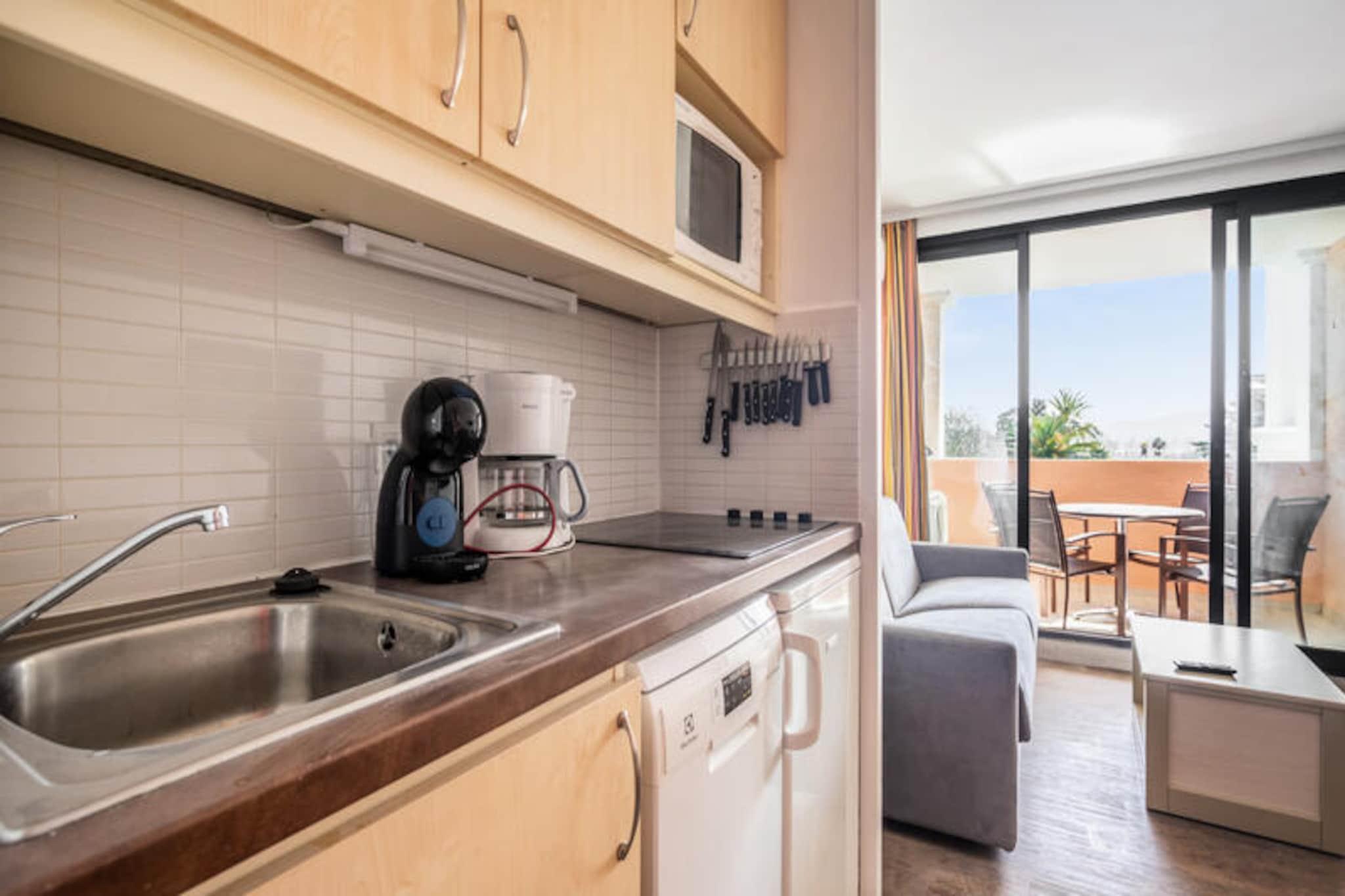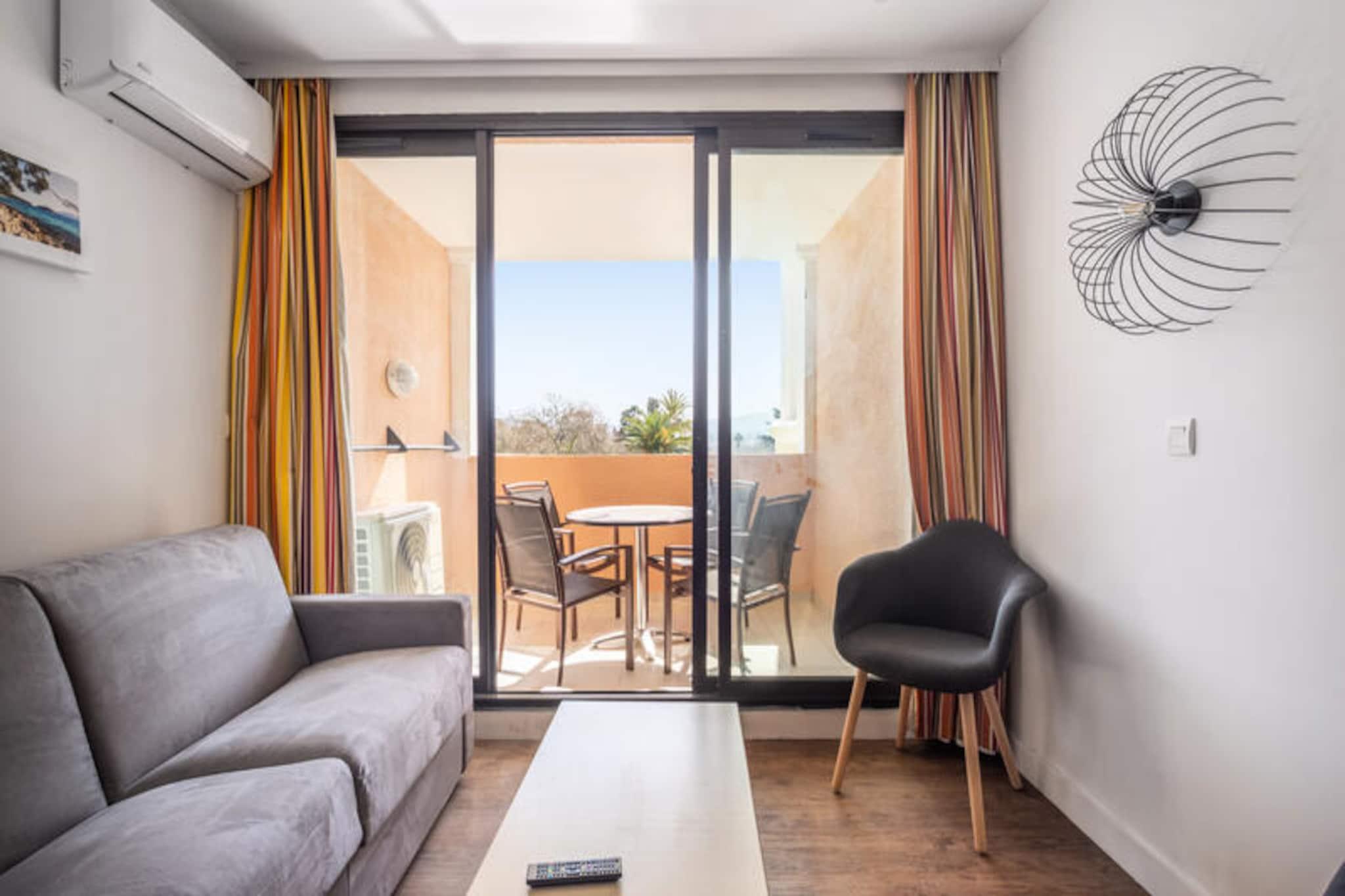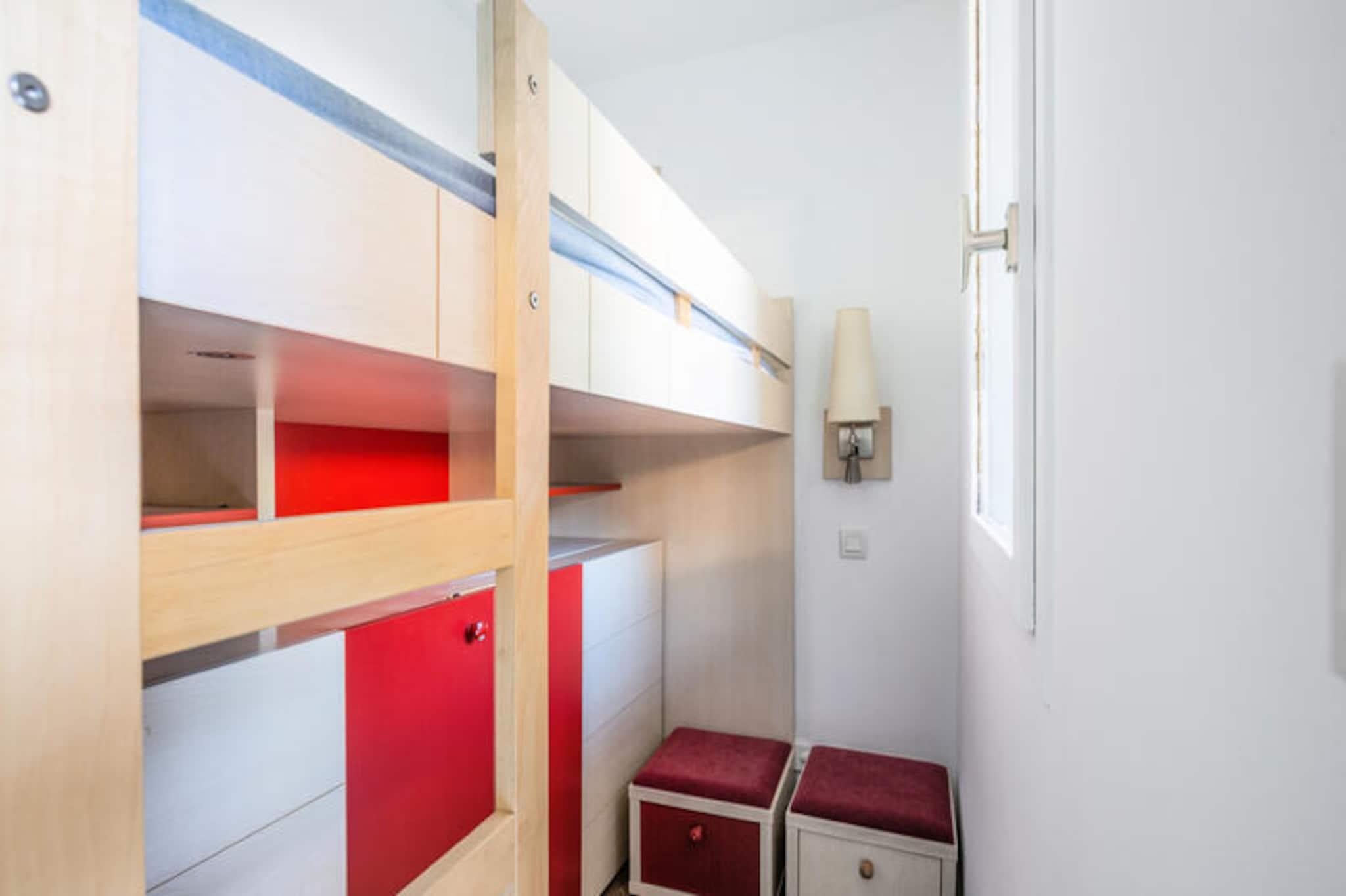This charming holiday apartment is located in a picturesque residence near the Massif des Maures and offers a cozy stay for up to 4 guests. The apartment features a living room with a sofa bed for 2, a cabin area with bunk beds, and a bathroom with a bathtub-shower combination. Pets are allowed, and parking is available within the residence, subject to availability. The property also offers convenient amenities, including free outdoor parking and bed linen included for a comfortable stay. Please note that towels are available for an extra charge. Situated just 10 km from the vibrant Saint-Tropez and only 500 meters from the beach via the south gate of the park, this location is ideal for those looking to enjoy both the tranquility of nature and the excitement of the Mediterranean coast. Guests can explore the nearby shops, cafes, and markets, or take advantage of the outdoor activities the area offers. The residence also benefits from its close proximity to the scenic beauty of the Massif des Maures, perfect for outdoor enthusiasts. The apartment features an open-plan kitchen, complete with a table and 4 chairs for meals, and is fully equipped for your convenience. Enjoy a lovely terrace where you can unwind after a day of sightseeing or beach activities. The residence also boasts a large outdoor swimming pool, available from April to October, offering a perfect spot to relax and cool off during the warmer months.