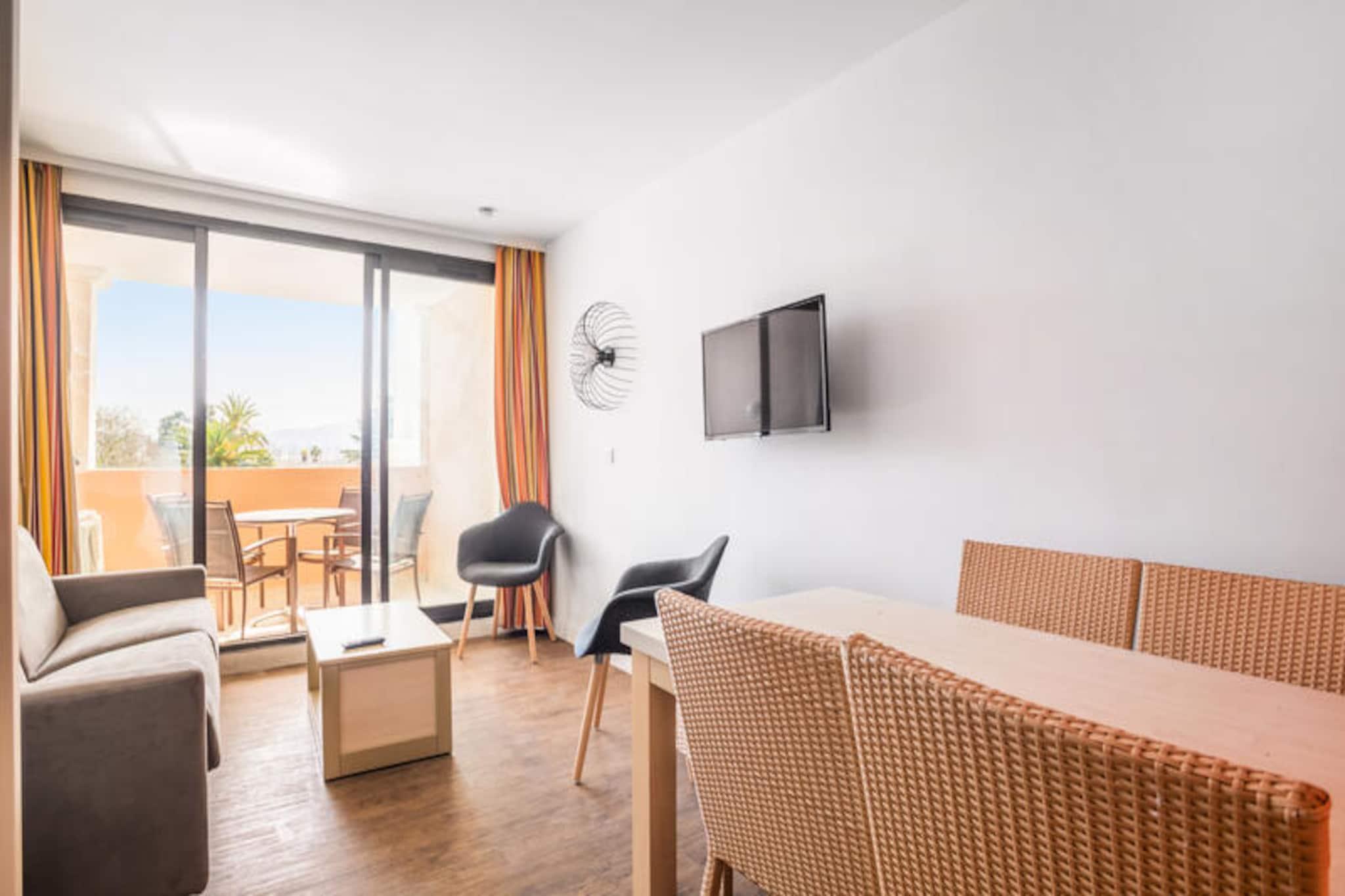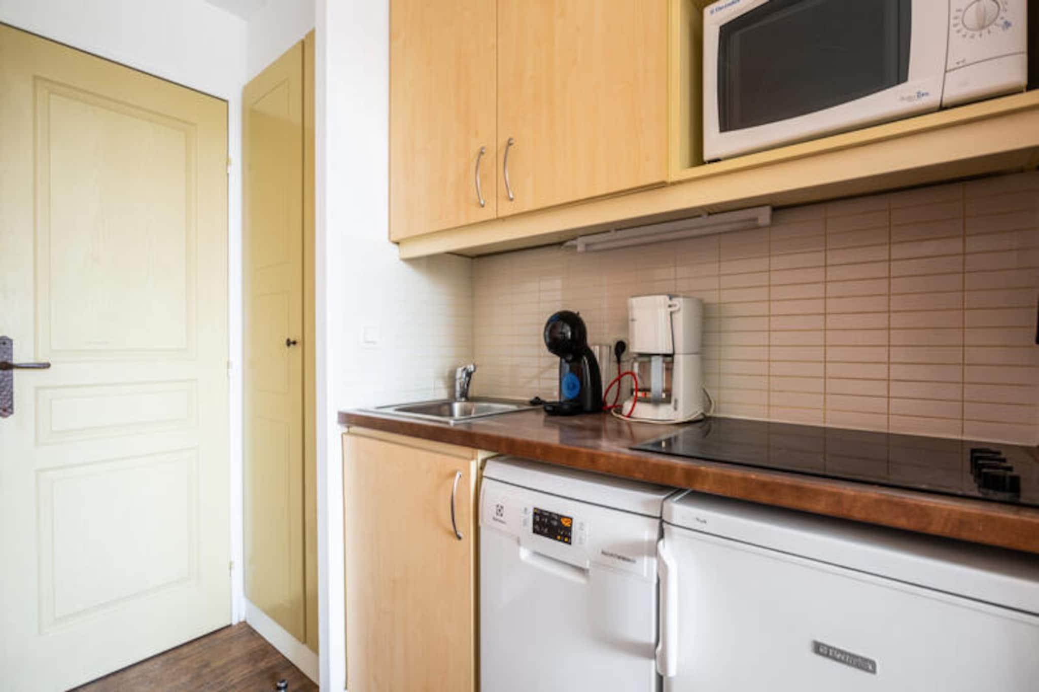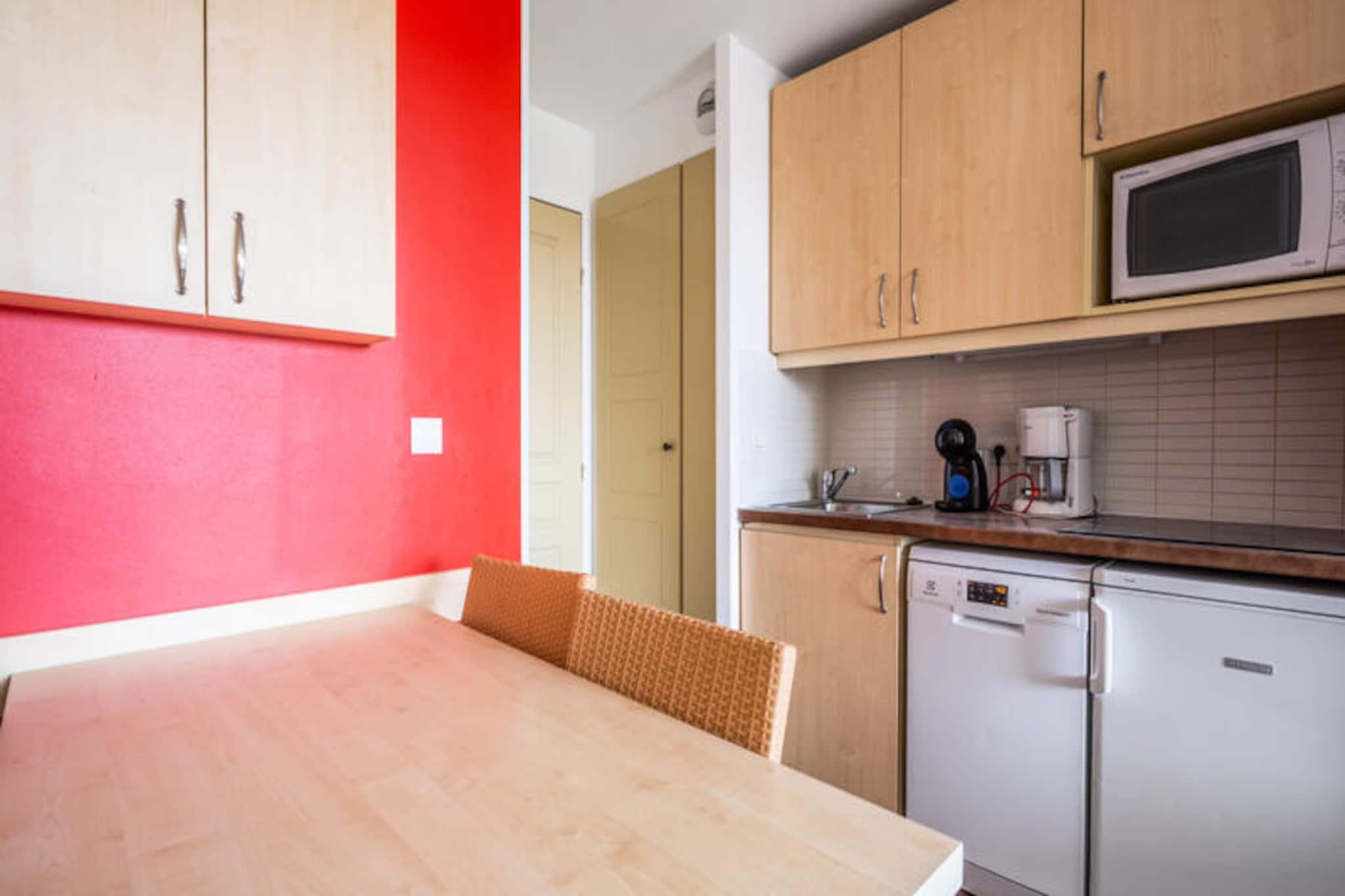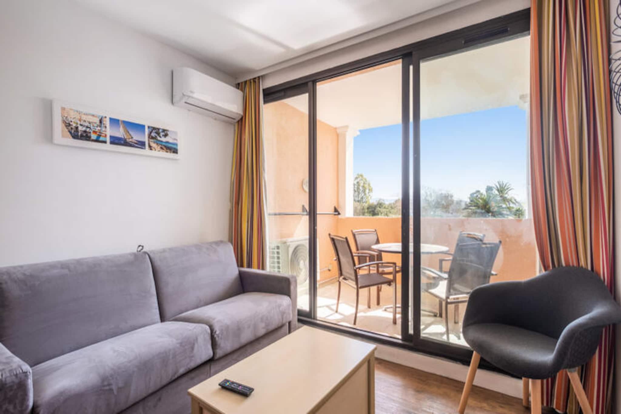 This charming holiday apartment is located in a picturesque residence near the Massif des Maures and offers a cozy stay for up to 4 guests. The apartment features a living room with a sofa bed for 2, a cabin area with bunk beds, and a bathroom with a bathtub-shower combination. Pets are allowed, and parking is available within the residence, subject to availability. The property also offers convenient amenities, including free outdoor parking and bed linen included for a comfortable stay. Please note that towels are available for an extra charge. Situated just 10 km from the vibrant Saint-Tropez and only 500 meters from the beach via the south gate of the park, this location is ideal for those looking to enjoy both the tranquility of nature and the excitement of the Mediterranean coast. Guests can explore the nearby shops, cafes, and markets, or take advantage of the outdoor activities the area offers. The residence also benefits from its close proximity to the scenic beauty of the Massif des Maures, perfect for outdoor enthusiasts. The apartment features an open-plan kitchen, complete with a table and 4 chairs for meals, and is fully equipped for your convenience. Enjoy a lovely terrace where you can unwind after a day of sightseeing or beach activities. The residence also boasts a large outdoor swimming pool, available from April to October, offering a perfect spot to relax and cool off during the warmer months.