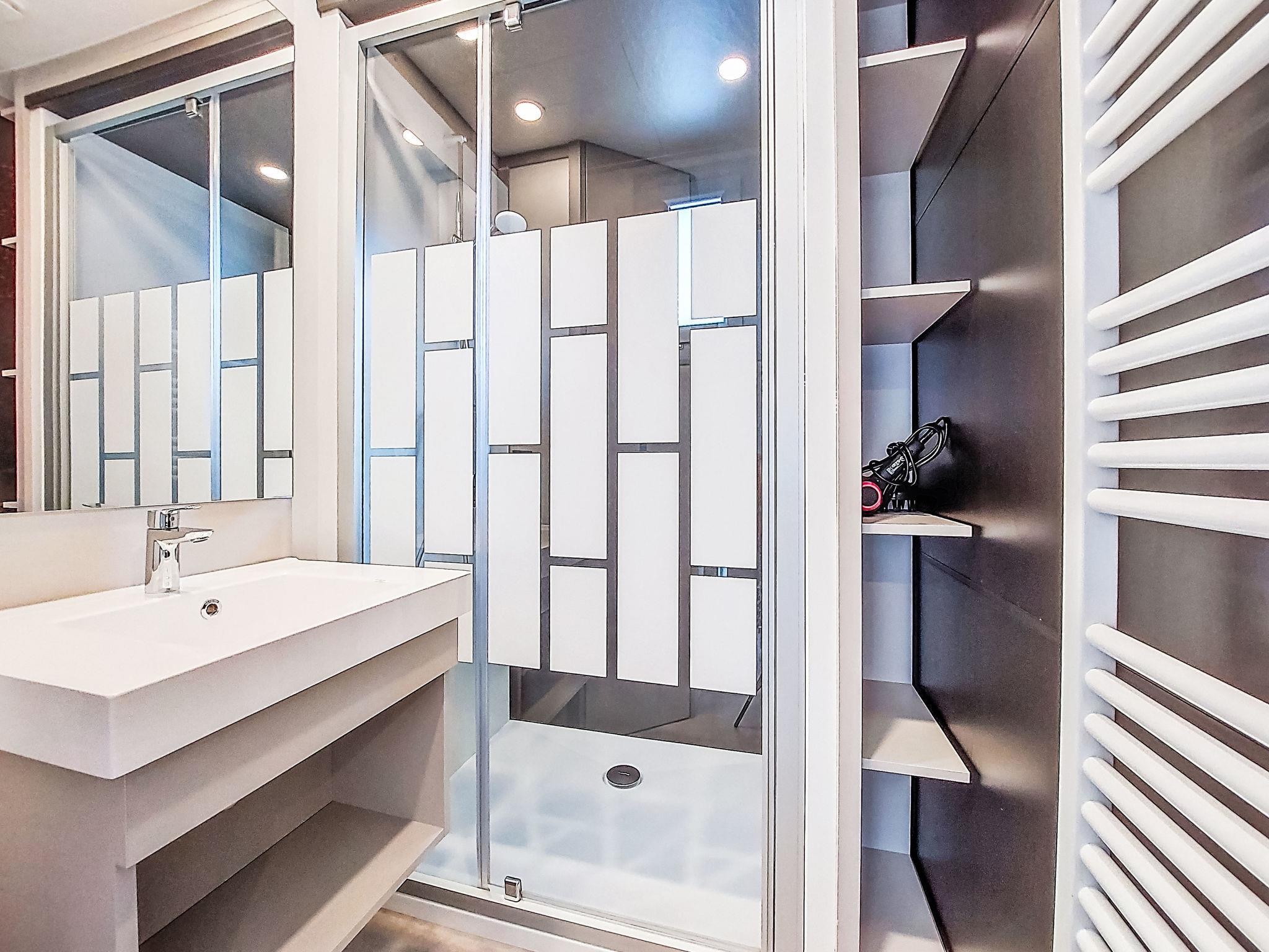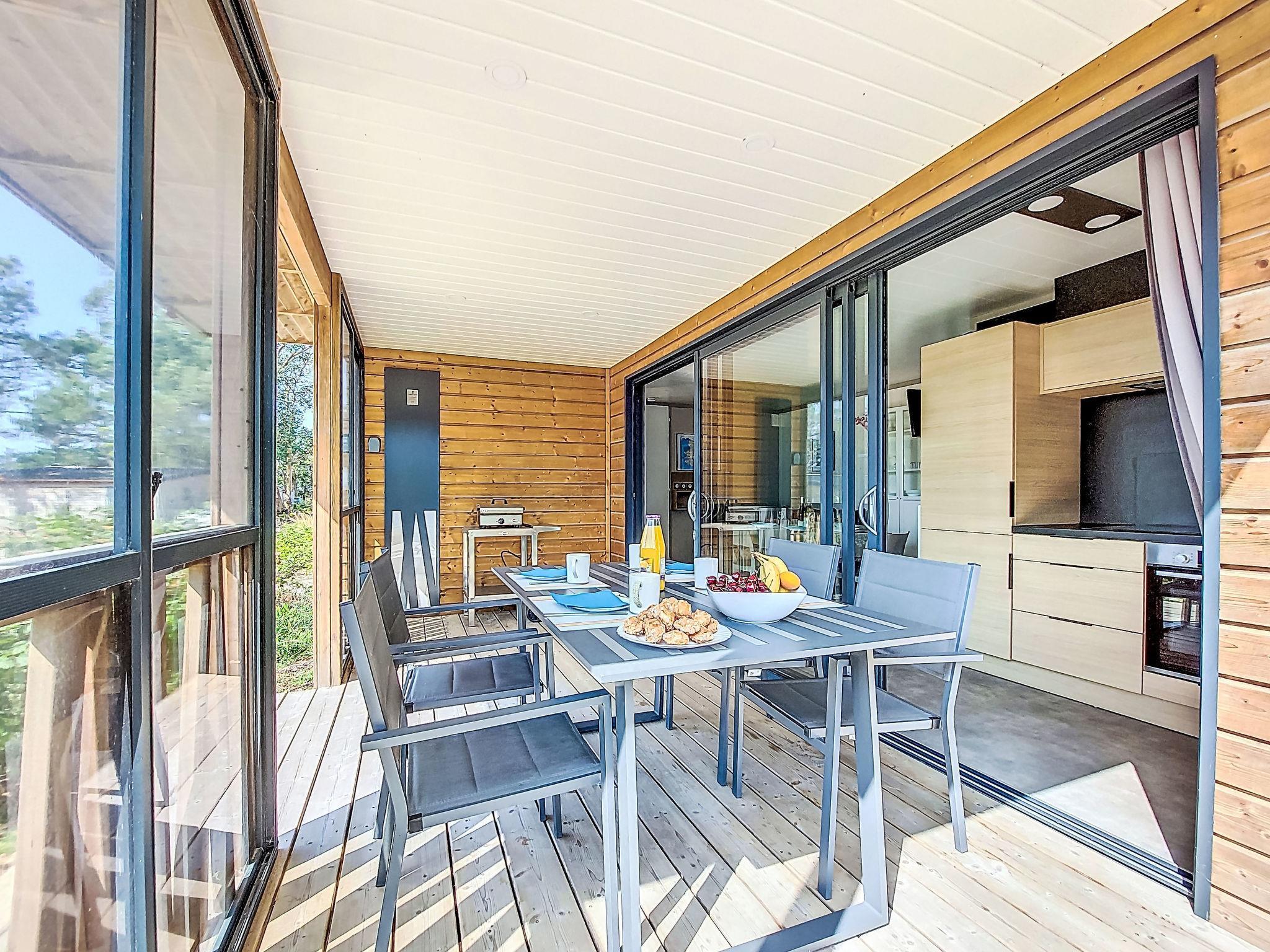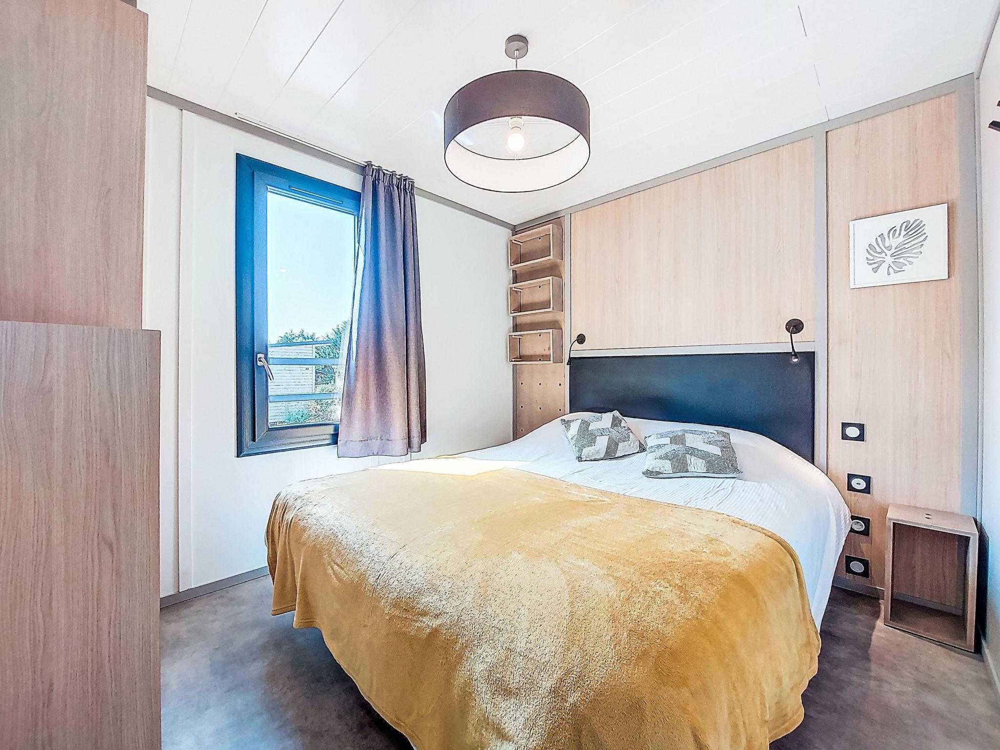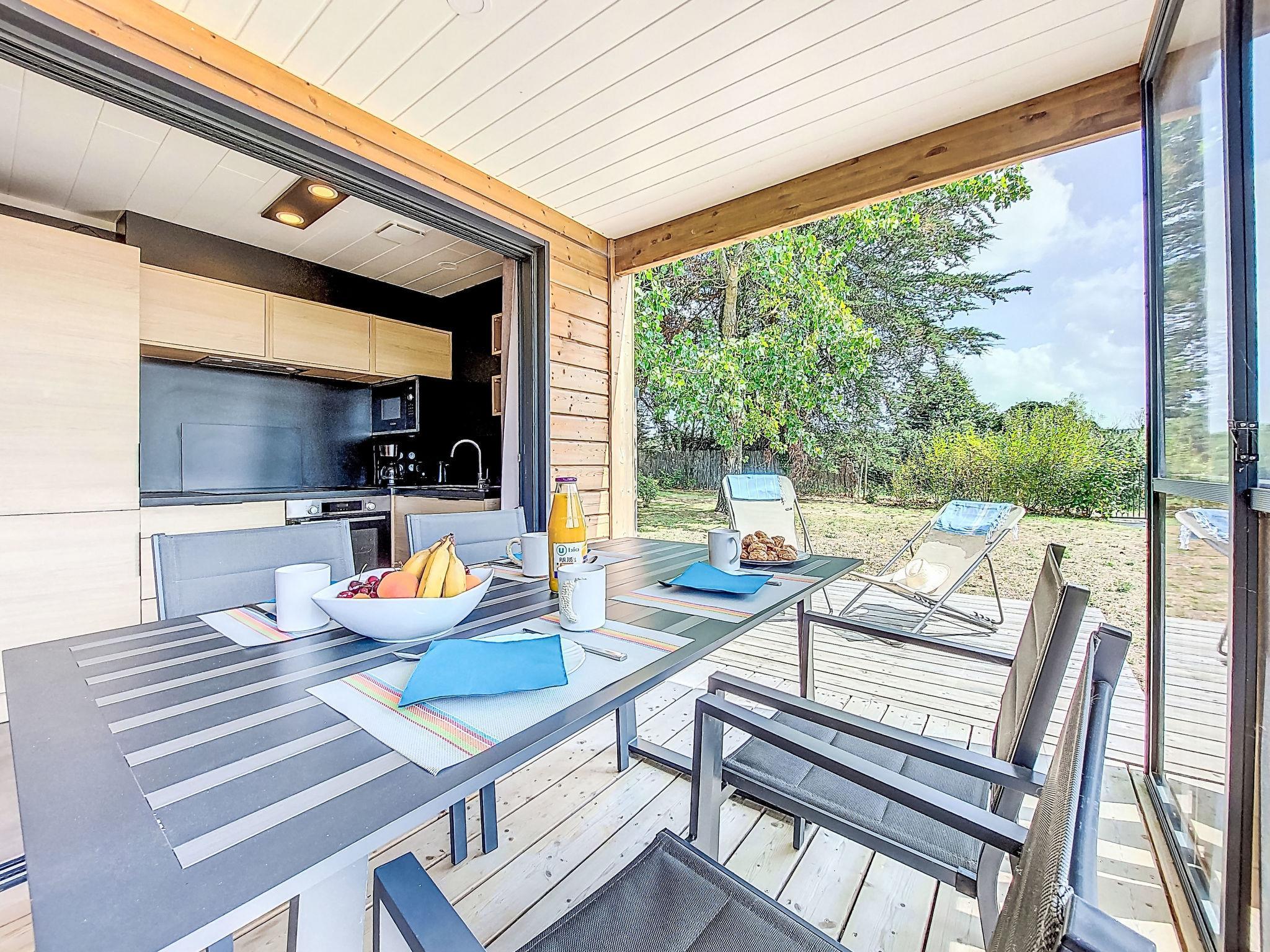 "Chalet moderne La Baule-Guérande", 3-room chalet 48 m2. Very beautiful furnishings: living room with panoramic window with dining nook and TV (flat screen). Exit to the terrace. 1 room with 1 french bed (160 cm, length 200 cm). 1 room with 2 beds (80 cm, length 200 cm), 1 bunk beds (80 cm, length 200 cm) (1 pers.). Open kitchen (oven, dishwasher, 4 ceramic glass hob hotplates, toaster, kettle, microwave, freezer, electric coffee machine). Shower, sep. WC. Electric heating. Large terrace 22 m2 partly roofed, south facing position. Terrace furniture, electric barbecue (portable), deck chairs (4), box-room. Facilities: washing machine, children's high chair, baby cot for up to 2 year olds, hair dryer. Internet (WiFi, free). Parking space n 36. Please note: non-smokers only. Smoke alarm. Offer by a private individual according to Art. 155, IV of CGI.