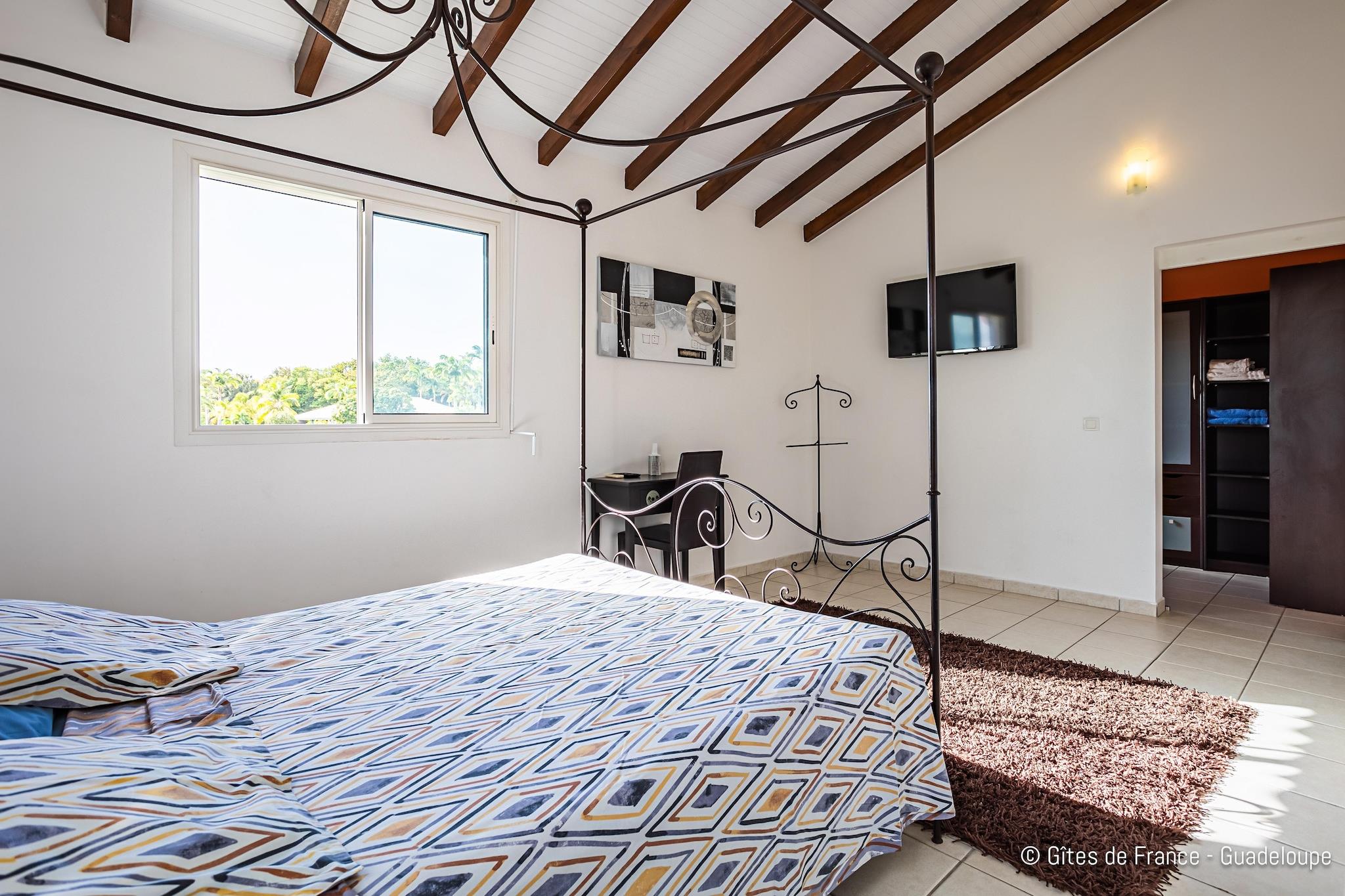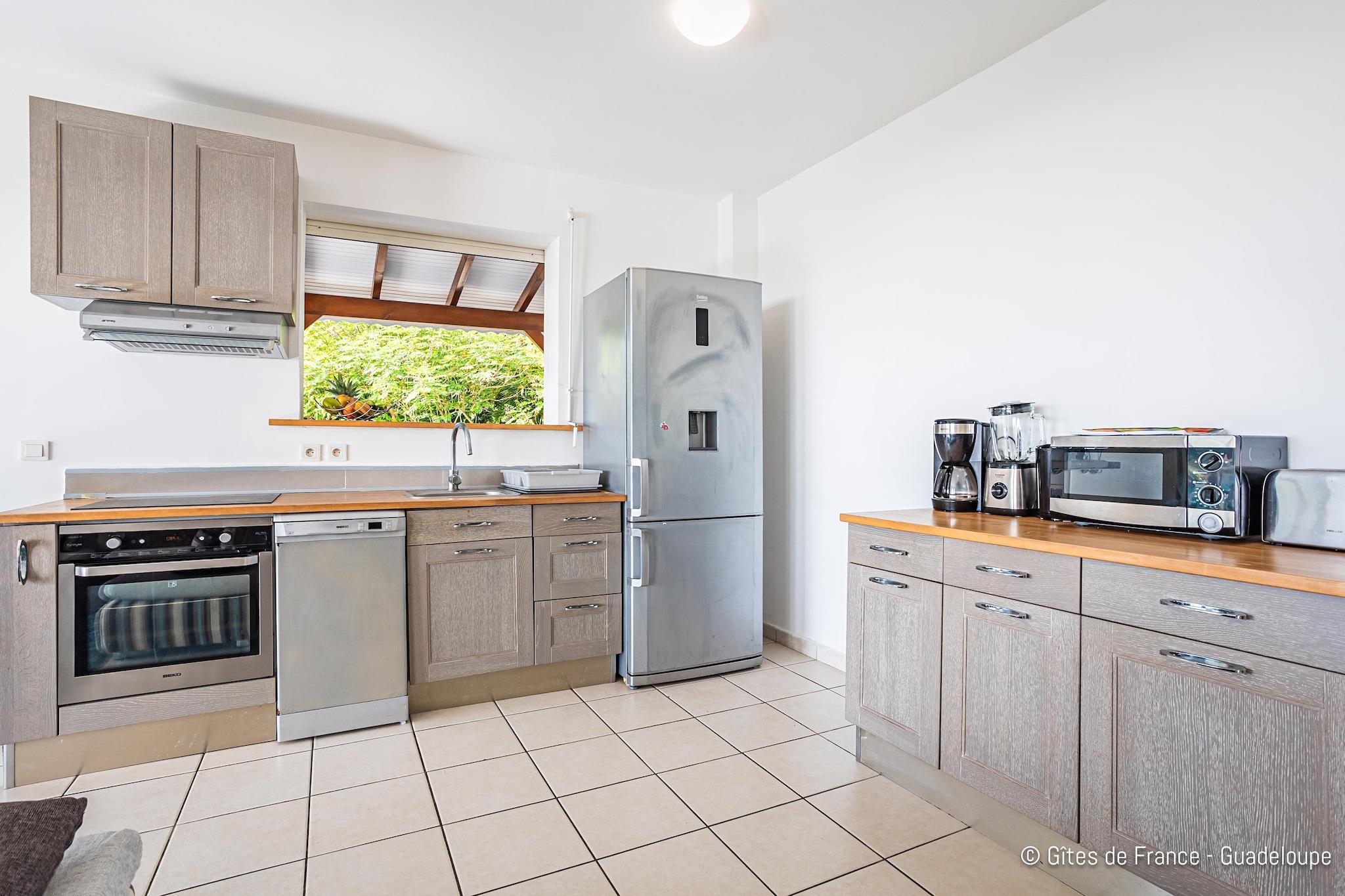 Tucked amid the lush hills of Guadeloupe, this contemporary villa offers a serene escape where tropical beauty meets modern living. Overlooking a shimmering pool and surrounded by greenery, it’s a peaceful haven for families or friends seeking comfort, style, and the unhurried rhythm of island life. Spacious and sunlit, the villa blends clean design with Caribbean warmth perfect for slow mornings, poolside afternoons, and long evenings under the stars. Inside, the open-plan living area features a comfortable lounge, satellite TV, and dining space that flows naturally into a fully equipped kitchen with an oven, dishwasher, coffee machine, and wine glasses ready for sunset toasts. Three inviting bedrooms include two doubles and one suite with a double bed, two single beds, and a private bathroom. Each room has a TV and air conditioning for restful nights after days of exploring. Modern comforts such as Wi-Fi, an ironing station, and a drying cabinet add effortless ease to your stay. Outside, a shared garden and pool invite quiet relaxation, while the terrace and barbecue area make every meal an occasion. Just minutes away lies Deshaies, a picturesque coastal village known for its colourful Creole charm, the stunning Botanical Garden, and Grande Anse Beach, a golden stretch framed by turquoise water. Venture further to Sainte-Rose for rum tasting and mangrove tours, or hike through the waterfalls and trails of Guadeloupe National Park. Here, between sun, sea, and soft breezes, each day unfolds at the perfect pace, calm, bright, and beautifully unforgettable.