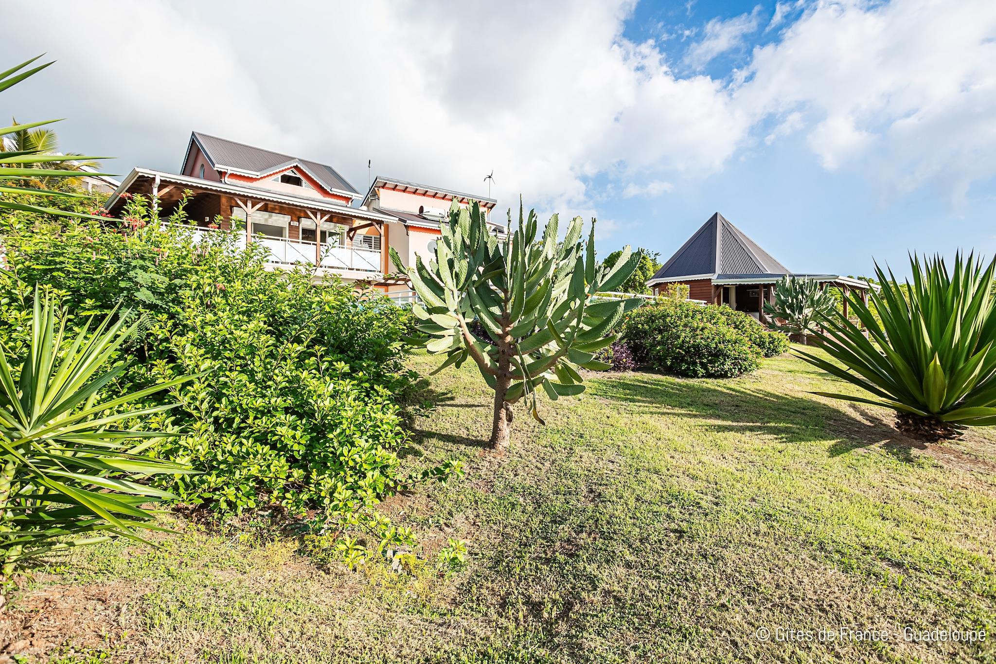 Perched on a gentle hillside with sweeping views of the Caribbean Sea, this stunning 350 m² villa offers space, privacy, and the soul of tropical living. Designed as an eco-friendly residence, it’s a place where families and friends can gather, unwind, and reconnect in style. With room for up to 17 guests, the property combines a grand villa, a cozy bungalow, and four independent studios giving everyone the comfort of their own space while keeping the group together in one beautiful setting. The villa’s interiors are bright, elegant, and thoughtfully crafted. Soaring ceilings and open living areas invite conversation and laughter, while large windows frame the sea and bathe the rooms in light. The main house features multiple bedrooms with queen, double, and single beds, ensuring flexibility for every kind of group. Each unit is air-conditioned and equipped with a kitchen or kitchenette, a modern bathroom, and all the comforts of home from Wi-Fi and flat-screen TVs to mosquito nets and soft linens. A spacious dining area, living room, and shaded patio make it easy to gather for shared meals and sunset drinks. Outside, life moves to a slower rhythm. Enjoy breakfast by the pool with its endless sea view, relax on the terrace surrounded by tropical gardens, or fire up the charcoal grill for an al fresco dinner under the stars. The villa’s prime location makes exploring Guadeloupe effortless from the vibrant beaches of Deshaies and the lush Botanical Garden to hidden coves, hiking trails, and the island’s lively local markets. Whether it’s a family reunion, a retreat with friends, or a celebration in paradise, this villa offers everything you need for a stay filled with warmth, laughter, and unforgettable island moments.
