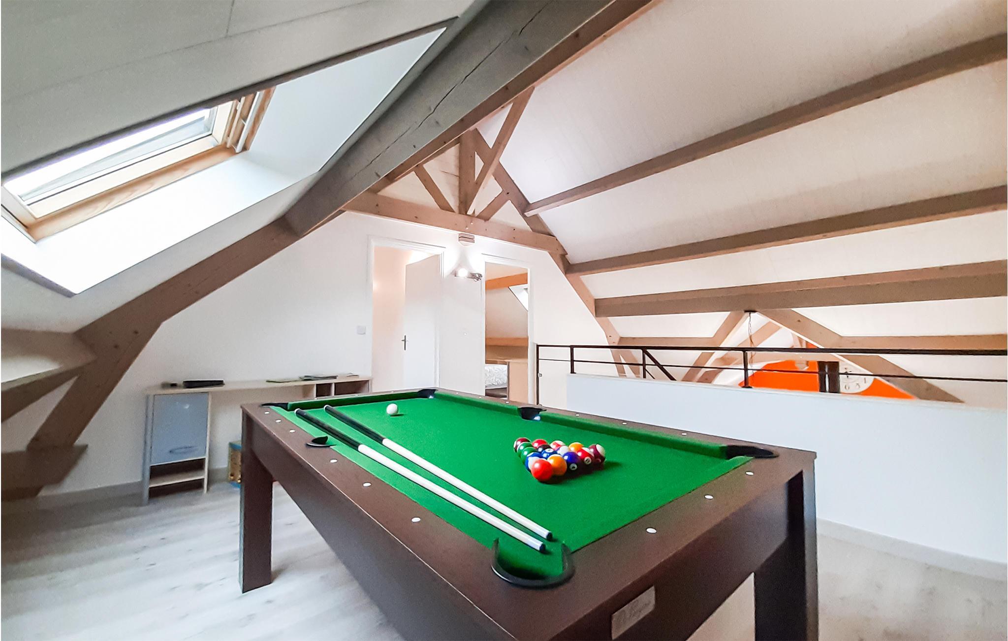 Dieses geräumige mit zwei Etagen versehene Ferienhaus bietet Ihnen und Ihrer Begleitung einen modernen Wohlfühlort in der Region Hauts-de-France, im Nordwesten Frankreichs. Dies lässt Sie ein Barbecue auf einer offenen überdachten Terrasse genießen oder einen Wein gustieren während die Anderen in den privaten Pool eintauchen. Des weiteren können Sie sich am Abend einem Match in Billard oder Tischfußball widmen und abwägen wer schlussendlich für den Abwasch verantwortlich ist.