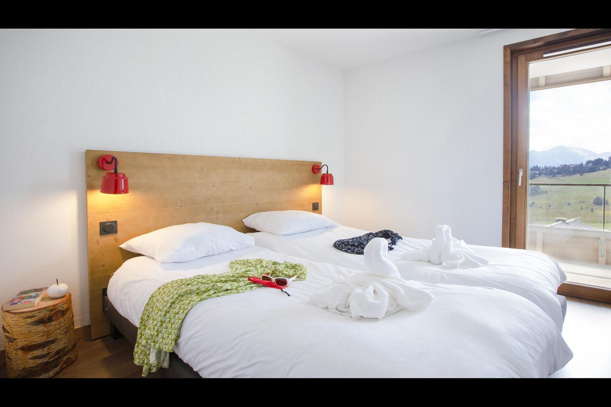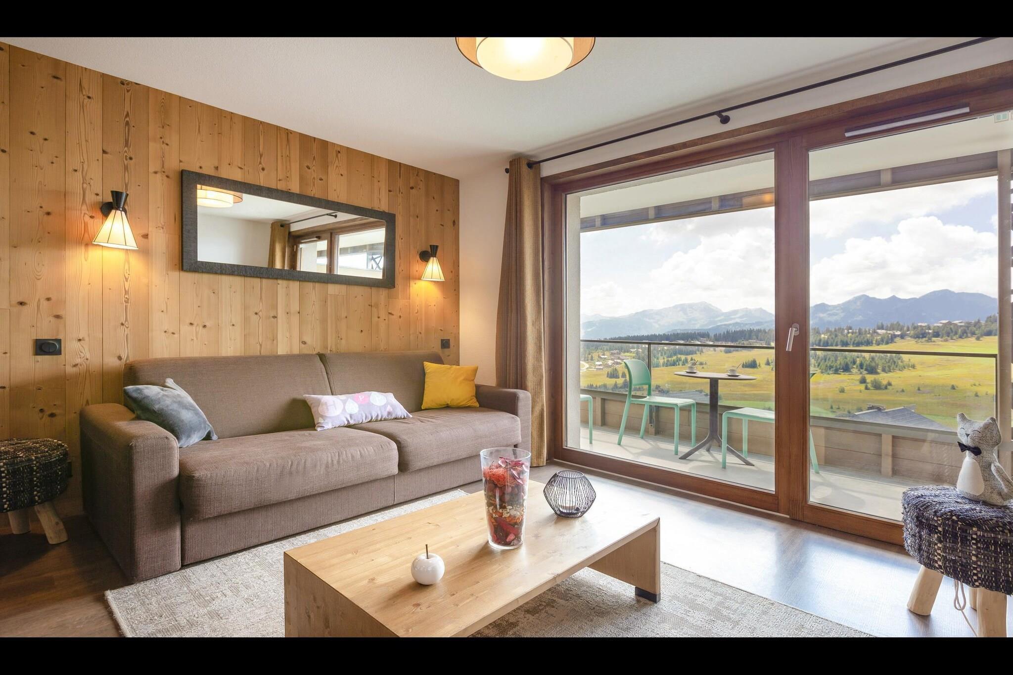A refined apartment, this spacious holiday home is designed to host up to eight guests comfortably. It features three well-appointed bedrooms and two modern bathrooms, making it a perfect option for families or small groups. The inviting living space includes a sofa for relaxing evenings, while many units offer balconies or terraces with stunning alpine views. Though Wi-Fi and a private pool are not available, the property is pet-friendly and offers rentable amenities such as baby equipment and ski lockers. Complimentary seasonal activities for children and teens are available through dedicated clubs and supervised programs. Nestled at the highest point of the resort in Hauteluce, the apartment boasts a ski-in/ski-out location with direct access from the residence’s central square. It overlooks the village resort of Les Saisies, offering immediate access to ski slopes and mountain trails. The area also features a selection of traditional restaurants, bakeries, and convenience shops within walking distance. The nearest major station is Albertville, approximately 30 km away, while Chambéry and Geneva airports can be reached in two to three hours by car. Shuttle services and taxis are available for smooth transfers. Each apartment includes a fully equipped kitchen with a microwave, oven, refrigerator, stovetop, and dishwasher—suitable for preparing meals throughout your stay. The two bathrooms feature updated fixtures and practical layouts for group convenience. Additional on-site amenities include a heated indoor pool, spa facilities with panoramic views, and a cozy fireplace lounge in the reception area, perfect for relaxing after a day of winter activities.