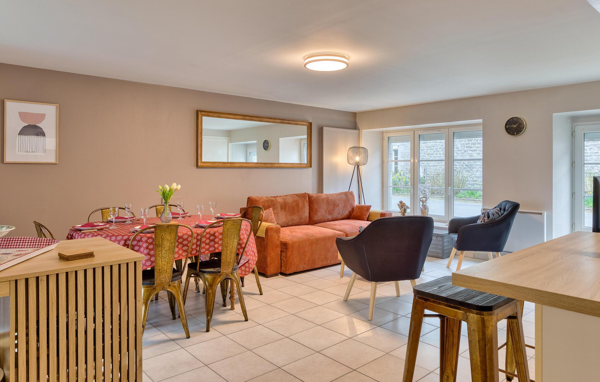 Treten Sie ein und lassen Sie sich vom liebevoll gestalteten Interieur dieses komfortablen Ferienhaus begeistern. Zaubern Sie köstliche Gerichte in der modernen, behaglichen Küche und genießen Sie gesellige Mahlzeiten am einladenden Esstisch. Lassen Sie sich nach einem erlebnisreichen Tag auf dem gemütlichen Sofa nieder, widmen Sie sich einem Buch oder veranstalten Sie einen Spieleabend.