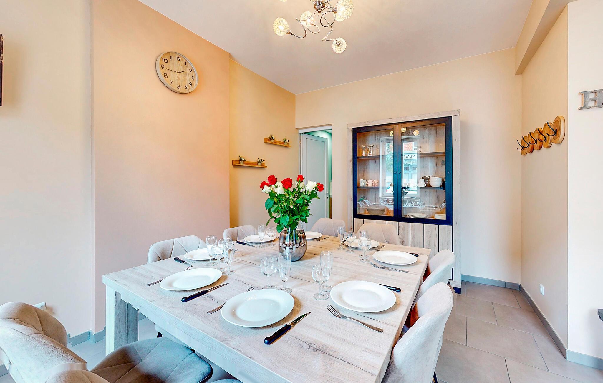 Machen Sie es sich in einem der zwei Wohnbereiche bequem. Genießen Sie gemeinsame Fernsehabende auf dem großen Sofa oder lesen Sie gutes ein Buch. Bereiten Sie Ihre Mahlzeiten in der großzügigen Küche zu. Hier finden Sie moderne Geräte, ausreichend Arbeitsfläche und einen großen Esstisch für gemeinsame Mahlzeiten und gesellige Stunden. Große Fenster sorgen für angenehmes Licht, während warme Farbtöne ein wohnliches Ambiente schaffen.