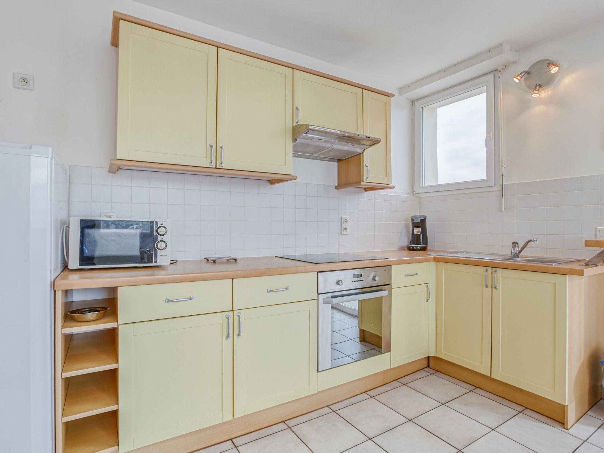 2-room apartment 35 m2, on the upper ground floor. Object suitable for 2 adults + 2 children. Practical and beautiful furnishings: living/dining room with 1 sofabed (130 cm, length 190 cm), TV (flat screen). Exit to the balcony. 1 room with 1 french bed (140 cm, length 190 cm). Open kitchen (oven, 4 ceramic glass hob hotplates, toaster, kettle, microwave, electric coffee machine). Bath/WC. Electric heating. Facilities: washing machine. Internet (WiFi, extra). Please note: non-smokers only. Smoke alarm. 40304000931GE
