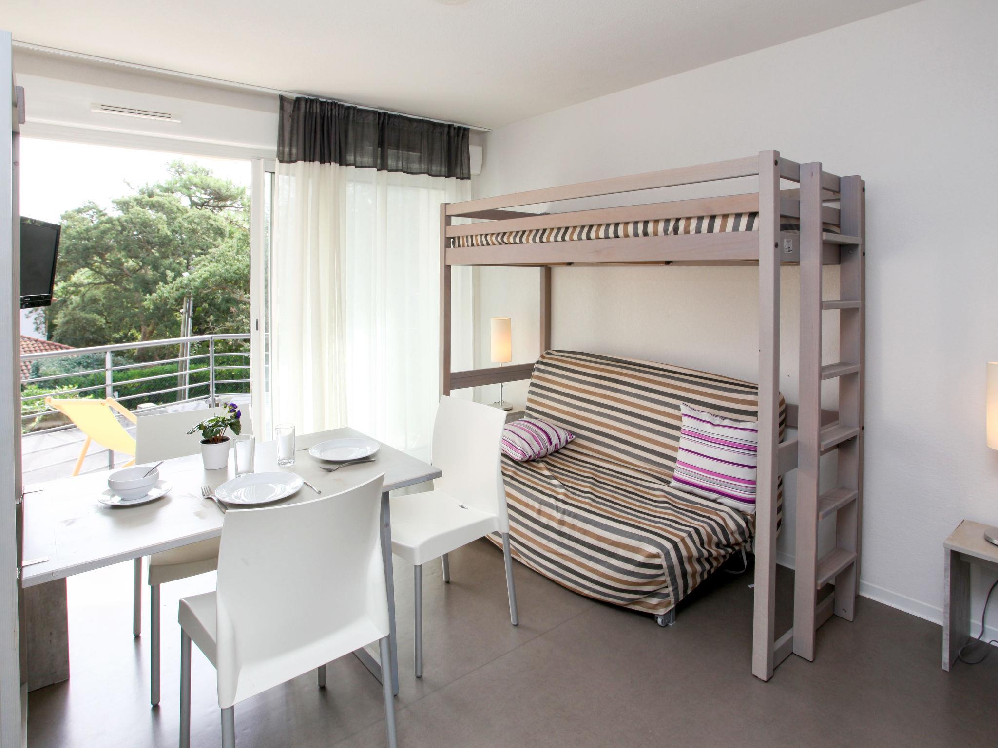 "Résidence Plage Centrale T2", 2-room apartment 34 m2. Object suitable for 2 adults + 1 child. Bright, practical furnishings: living/sleeping room with 1 double sofabed and 1 x 1 bunk beds (80 cm), dining table and TV. Exit to the balcony. 1 room with 1 french bed (160 cm). Open kitchen (2 ceramic glass hob hotplates, toaster, kettle, freezer, electric coffee machine, combination microwave). Shower/WC. Electric heating. Small balcony. Deck chairs (2). Facilities: washing machine, iron, children's high chair, baby cot (extra). Internet (WiFi, free). Parking (1 car). Please note: non-smokers only. Smoke alarm.