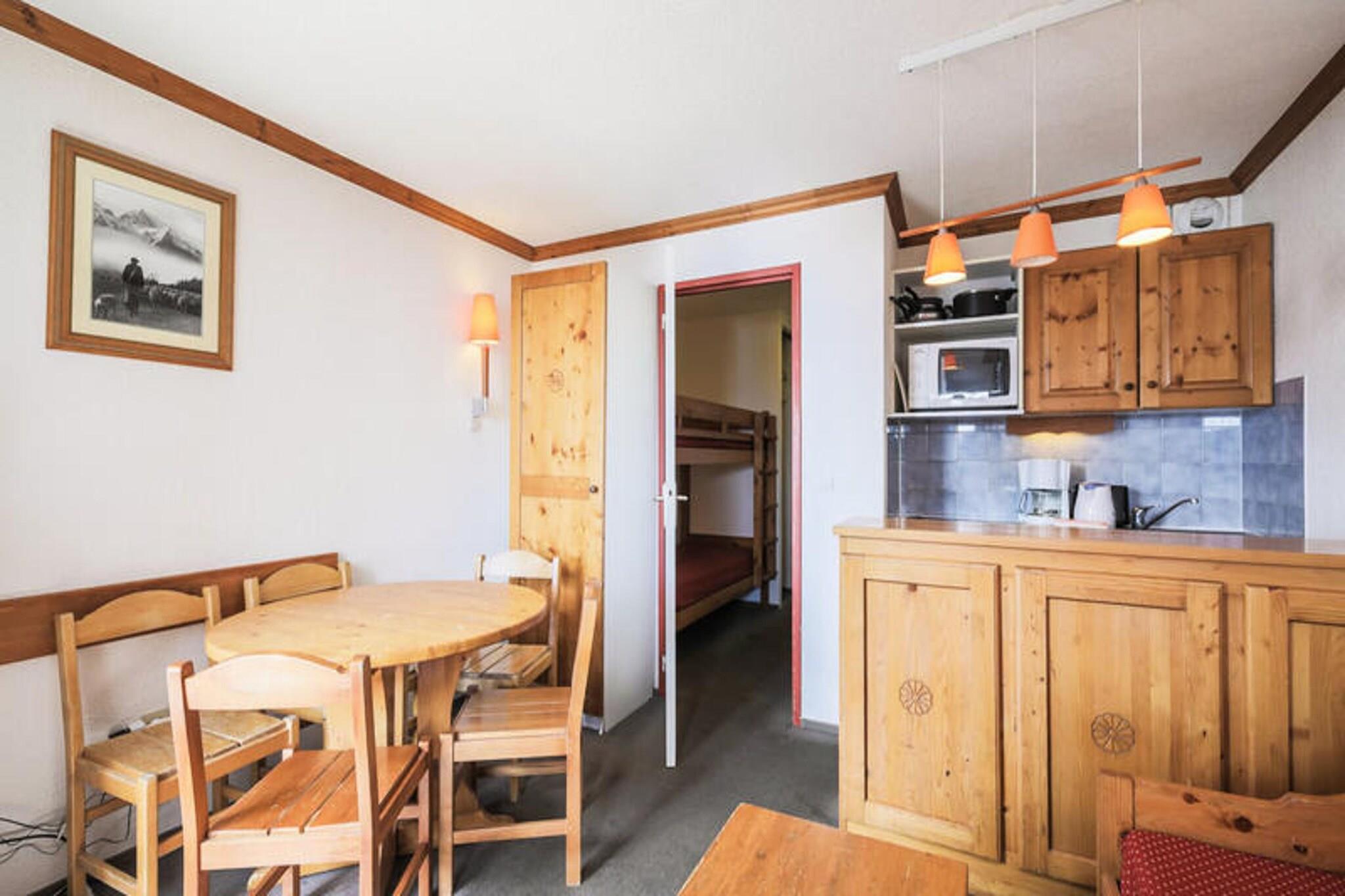 This charming apartment is designed to comfortably accommodate up to 6 guests, with a living room featuring a sofa bed and trundle bed, plus a cabin area with bunk beds. The property is pet-friendly, subject to approval, and offers additional amenities such as bed linens, towels, and end-of-stay cleaning for an extra fee. Guests can enjoy a parking space, with covered parking available upon request. Wi-Fi is available at an additional charge, and a mandatory cleaning fee is required at check-in. Conveniently located just 600 meters from the vibrant center of Alpe d'Huez, the apartment provides easy access to the resort's numerous attractions. Guests can explore nearby cafes, restaurants, and shops, or enjoy outdoor activities in the stunning Oisans Massif. The area is renowned for its beautiful landscapes and year-round appeal, with ski slopes easily accessible via an elevator from the property, ensuring quick access to the slopes. The apartment includes a well-equipped kitchen open to the living area, perfect for preparing meals. The bathroom features a shower, and a separate toilet adds to your comfort. The property also boasts a private balcony where you can enjoy beautiful views of the surrounding mountains, and an indoor swimming pool is available nearby for an additional fee at the Palais des Sports et des Congrès.