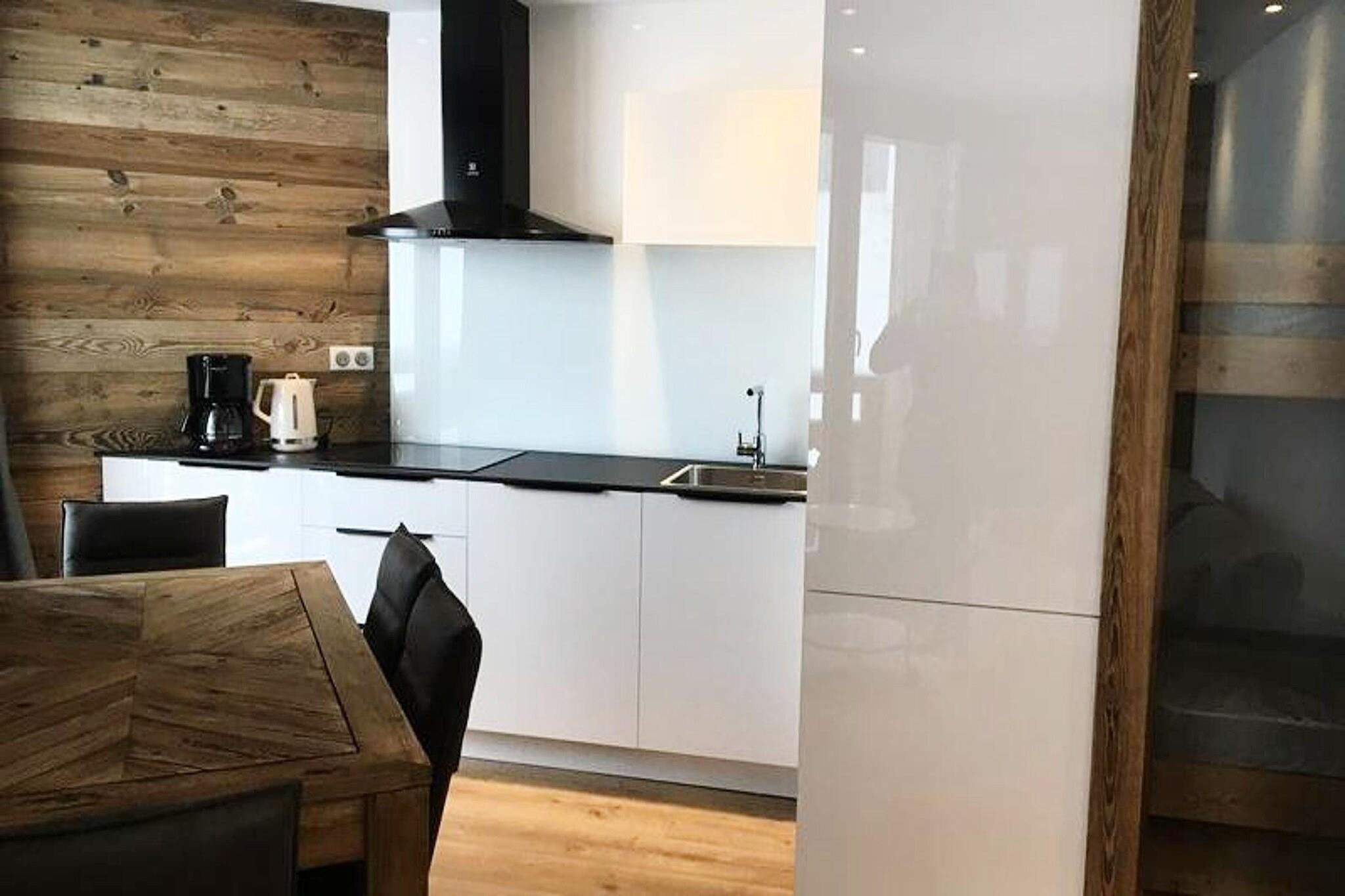 This cozy 33m² apartment is a perfect retreat for families or small groups, offering comfortable sleeping arrangements with a double bed in the bedroom, two bunk beds in the mountain corner, and a sofa bed in the living room. Equipped with a TV for entertainment, this apartment is ideal for a relaxing stay. Please note, the property is not pet-friendly, ensuring a peaceful environment for all guests. Located at the top of the station at the slopes roundabout, this apartment offers easy access to ski lifts and is close to a variety of amenities. Shops, cafes, and restaurants are all within walking distance, allowing guests to explore the local charm or grab a quick bite. Enjoy the fantastic view from the apartment, adding to the overall experience of staying in this prime location. The apartment is equipped with a practical kitchen area, featuring a refrigerator, oven, 3 ceramic hobs, and a dishwasher to make self-catering easy. The bathroom includes a separate shower and WC for added convenience. Additional amenities include a south and east-facing balcony, ski locker, and parking space. Bed linen, towels, and end-of-stay cleaning are not included, and heating is available throughout the apartment.