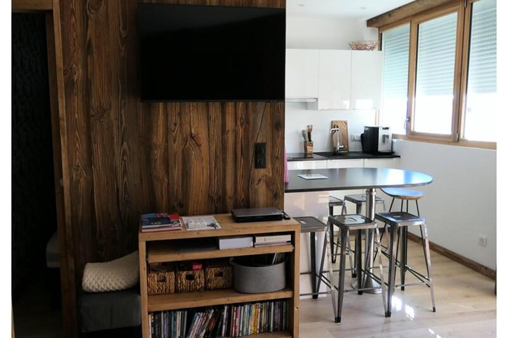 This 34m² apartment offers a comfortable and convenient stay for families or small groups, featuring a bedroom with a double bed and a separate area with two sets of bunk beds, perfect for children. The living room includes a sofa and a TV for entertainment. Please note, the property is not pet-friendly, ensuring a peaceful environment for guests. Ideally located at the foot of the slopes, this apartment offers easy access to skiing with skier returns directly in front of the residence. It is also close to shops, cafes, and other amenities, making it a perfect base for exploring the local area. Guests can enjoy a variety of restaurants and markets nearby, offering a taste of the local culture and convenience for all their needs. The apartment comes fully equipped for self-catering with a fridge, freezer, microwave oven, ceramic hotplates, dishwasher, and a washing machine. The bathroom includes a shower and toilet, providing a comfortable space for guests to refresh after a day of skiing or exploring. Enjoy the views from the south-west facing terrace, and take advantage of the ski locker for secure storage of your gear. Bed linen, towels, and end-of-stay cleaning are not included. Heating is available throughout the apartment for a cozy stay.