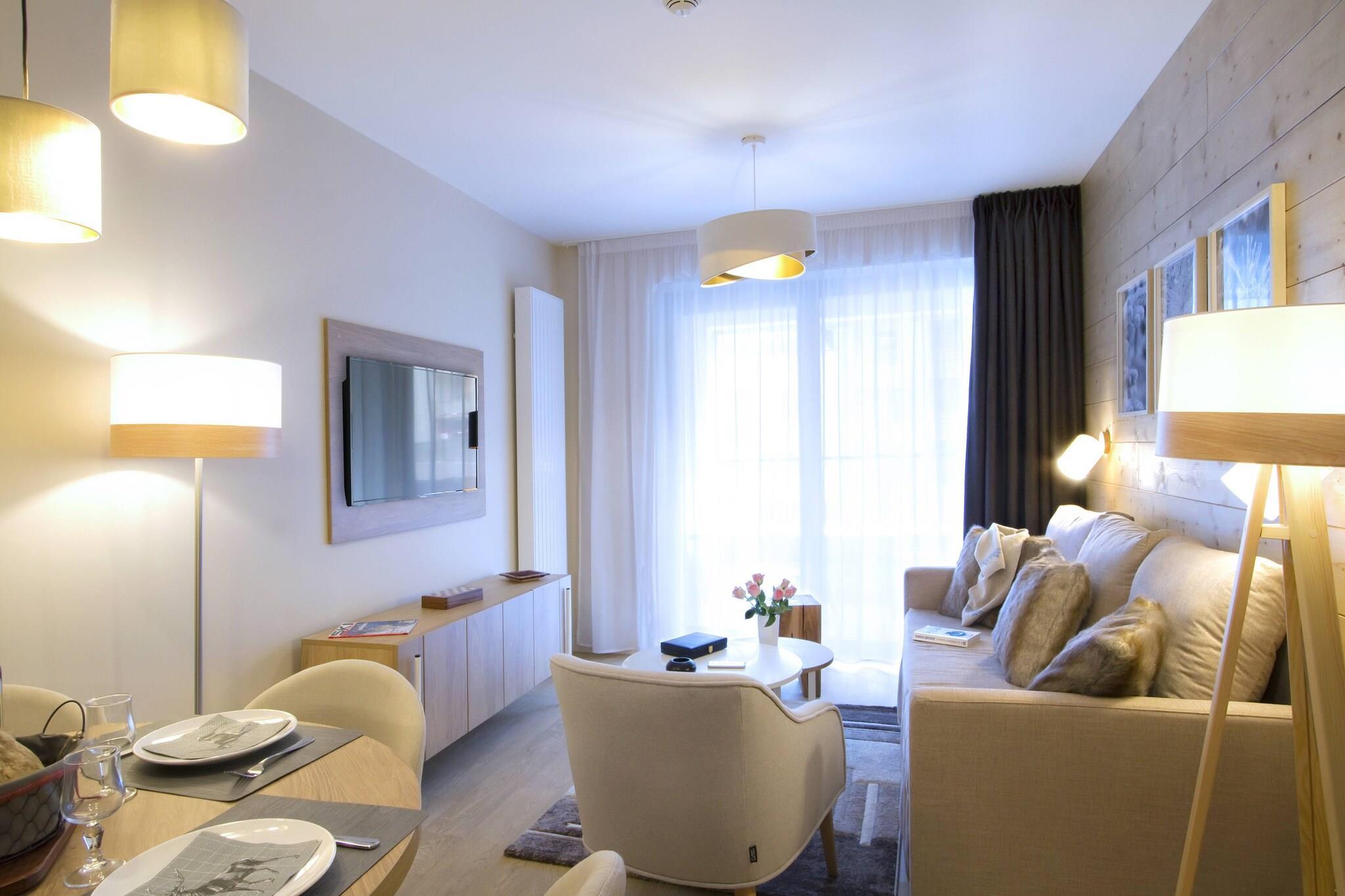Résidence Prestige L'Eclose is a new, stylish residence with contemporary and comfortably furnished apartments. A few larger, connected chalets accommodate apartments of various sizes. Built with plenty of wood, natural stone and quality materials in a local and contemporary style, the property exudes class. This ground floor apartment is luxurious and fully furnished. In the modern living room, you will find comfortable furniture, a sofa bed that sleeps two and a television The kitchen is fully equipped, including a dishwasher. The apartment also has a bedroom with a double bed, a sleep cabin with a bunk bed, a bathroom with bathtub and a separate toilet. For extra comfort, your beds will already be made on arrival. Outside the apartment also offers a balcony with a nice view of the mountain landscape. There is parking for one car in the parking garage of Résidence Prestige L'Éclose. This must be reserved in advance, so that the entry instructions are known to you in time. At Résidence Prestige L'Éclose, you can book various luxury apartments for four to ten people.