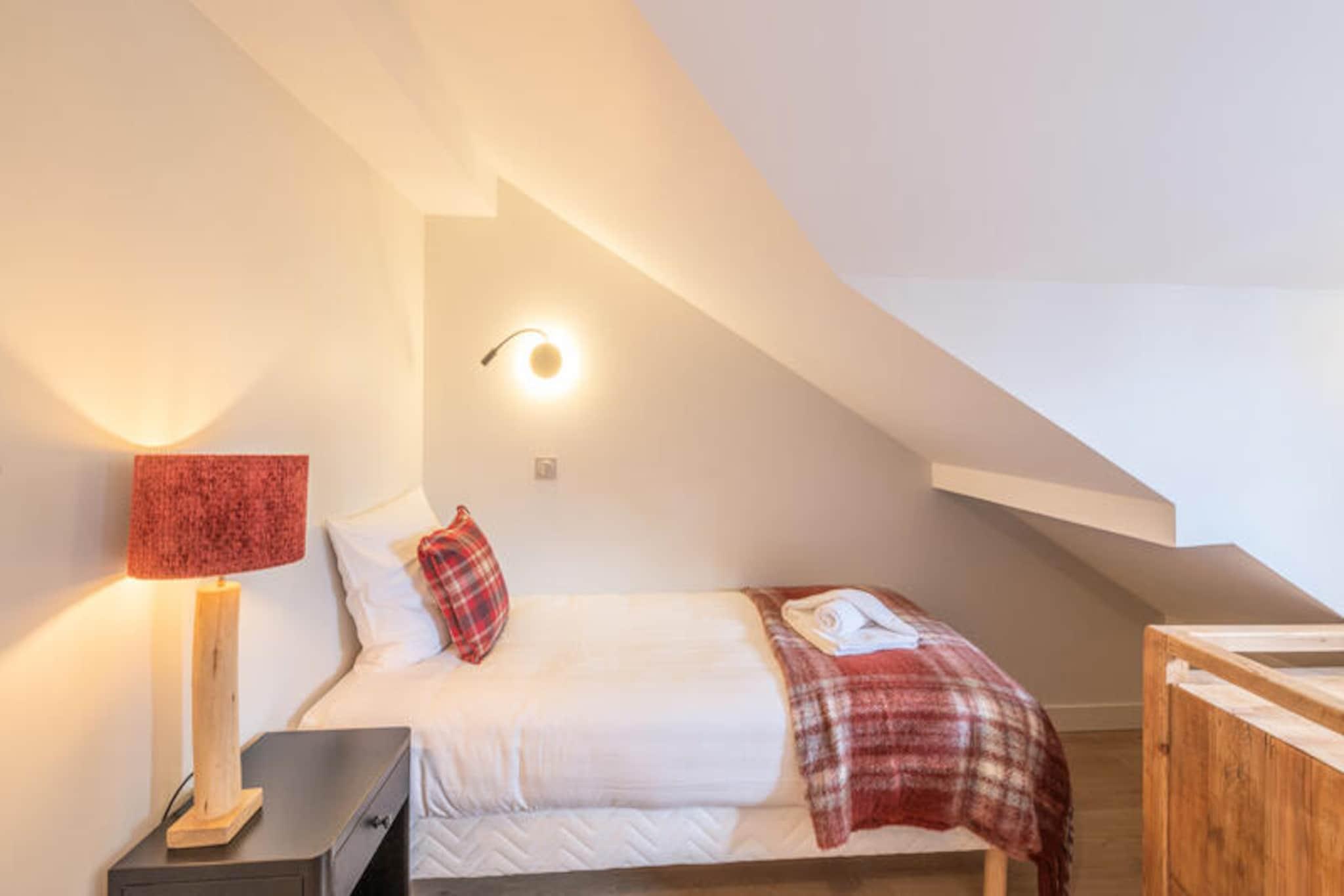 High above the valley, where the sun graces the slopes of Alpe d’Huez, lies the enchanting Fermes de l'Alpe residence in the historic Vieil Alpe district. This spacious 100m² duplex apartment combines alpine charm with modern comfort, offering a serene retreat just 400 meters from the lively resort center. Perfect for families or groups, it provides a warm and inviting base for your mountain adventures. Step inside and discover a thoughtfully designed layout across two levels. The ground floor features a cozy living room with a lounge and dining area, an open-plan kitchen, and a balcony that invites you to soak in the crisp alpine air. A double bedroom and a sleeping alcove with a bunk bed complete this level, along with a bathroom equipped with a bathtub. Upstairs, you'll find another double bedroom, a mezzanine with two single beds, and a bathroom with a shower and toilet, ensuring ample space and privacy for up to 4 adults and 4 children. The residence’s prime location places you close to the slopes and ski lifts, making it effortless to embrace the world-class skiing and snowboarding opportunities of Alpe d’Huez. After a day on the pistes, unwind with the included amenities such as fresh linens, bathroom products, and beds made upon arrival. The convenience of Wi-Fi, indoor parking, and end-of-stay cleaning ensures a hassle-free stay. Whether you’re exploring the vibrant resort center, enjoying the panoramic views from the slopes, or simply relaxing in the comfort of your chalet-inspired apartment, Fermes de l'Alpe promises an unforgettable alpine escape. Experience the perfect blend of tradition and luxury in one of France’s most iconic mountain destinations.