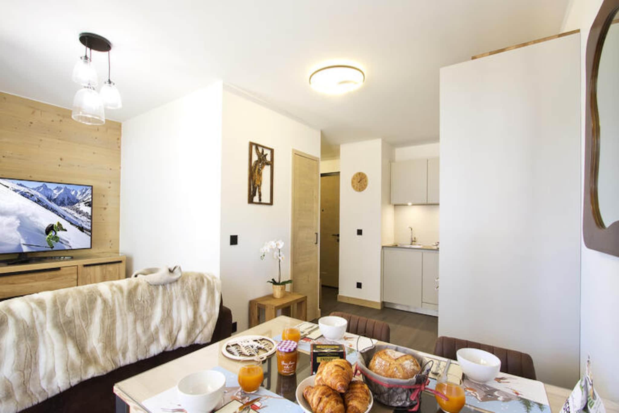 Bathed in natural light and surrounded by the pristine beauty of the French Alps, this modern apartment offers a luxurious alpine retreat with direct ski-in/ski-out access. Imagine waking up to the crisp mountain air, stepping onto your private south-east-facing terrace, and gazing at the sunlit slopes before heading out for a day of adventure. Nestled in a newly built residence, this property combines contemporary comfort with the charm of alpine living, making it an ideal choice for couples or small families seeking a memorable getaway. Inside, the apartment is thoughtfully designed to maximize comfort and convenience. The living and dining area features a smart TV and Bluetooth speaker, creating a cozy space to unwind after a day on the slopes. The fully equipped kitchen boasts modern appliances, including an induction hob, fridge, freezer, dishwasher, oven, microwave, and Nespresso coffee machine, perfect for preparing hearty meals. The bedroom offers a plush double bed, smart TV, and ample storage, while the sleeping alcove with a bunk bed is ideal for children or additional guests. A sleek shower room, separate toilet, and in-unit washing machine ensure all your needs are met. The residence itself is a haven of relaxation and wellness. Guests can enjoy access to a swimming pool, gym, sauna, steam room, and sensory showers, providing the perfect balance of activity and rejuvenation. A ski room with a boot dryer offers direct access to the slopes, while a locked garage in the basement adds convenience and security. With its prime location, luxurious amenities, and breathtaking surroundings, this apartment promises an unforgettable alpine escape. Whether you're here for skiing, hiking, or simply soaking in the serene mountain atmosphere, this is your gateway to the best of the French Alps.