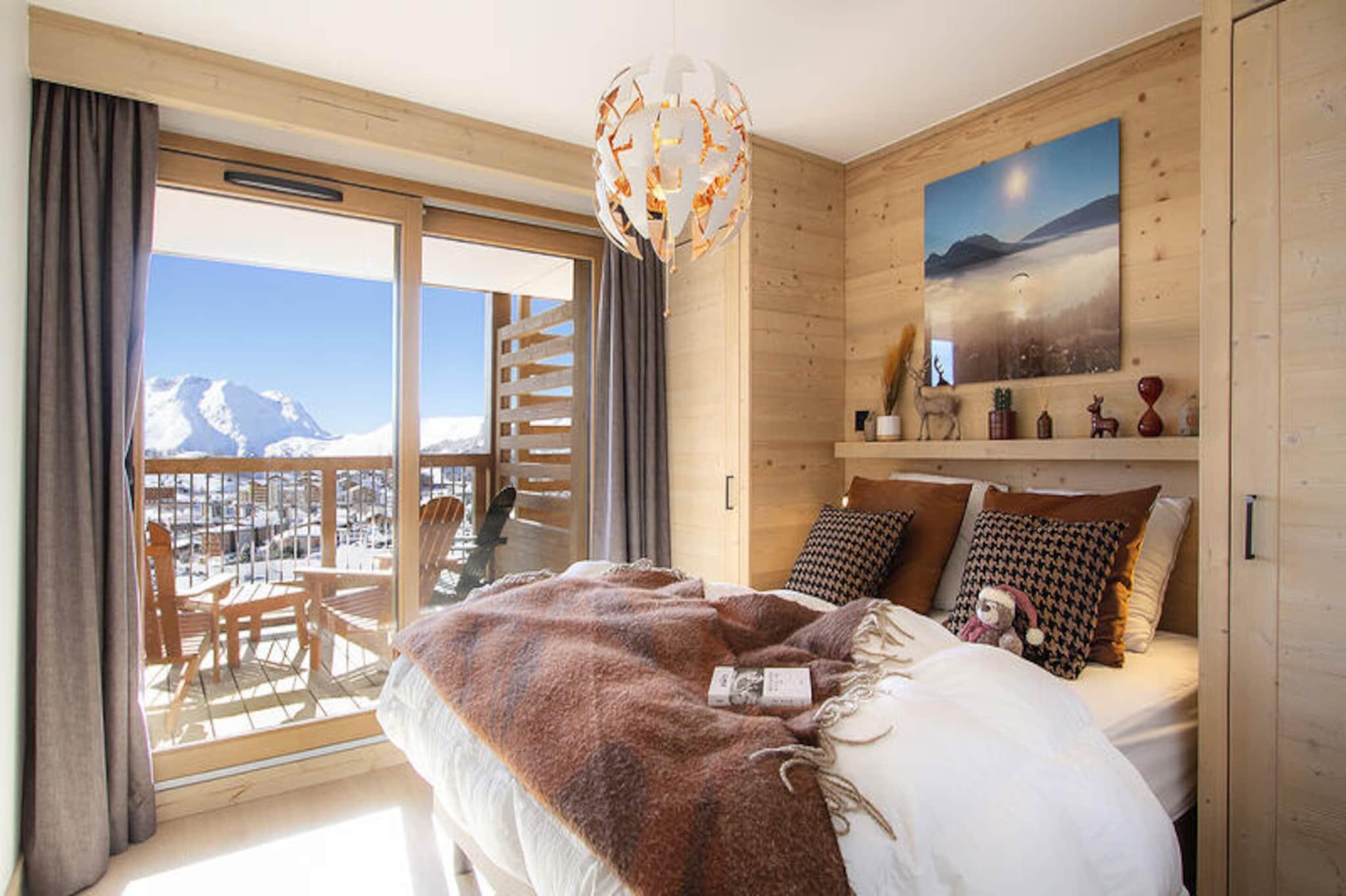 Imagine waking up to the crisp mountain air and the promise of adventure, all from the comfort of a luxurious apartment in the heart of the French Alps. This stunning retreat, nestled in a modern residence, offers ski-in/ski-out access, ensuring you’re always just steps away from the slopes. With breathtaking views from your southwest-facing terrace, you’ll find yourself immersed in the serene beauty of the alpine landscape. Inside, the apartment is a harmonious blend of comfort and style. The spacious, sunlit living room invites relaxation, featuring a large sofa and TV for cozy evenings. The open kitchen-dining area is fully equipped with top-of-the-line appliances, including an oven, microwave, dishwasher, washing machine, induction hob, and a large refrigerator, making it perfect for preparing hearty meals after a day on the slopes. The sleeping arrangements are equally impressive, with two bedrooms featuring 160cm double beds and TVs, and a master bedroom boasting a 180cm double bed, an en-suite shower room, and a private toilet. A separate bathroom and an additional toilet ensure convenience for all guests. Beyond the apartment, the residence offers an array of premium amenities. Unwind in the indoor swimming pool, rejuvenate in the sauna or steam room, or indulge in the sensory showers. For fitness enthusiasts, the gym provides the perfect space to stay active. The ski room offers direct access to the slopes, making it effortless to start your alpine adventures. Whether you’re here to carve through pristine snow in winter or explore the lush trails in summer, this property offers an unparalleled experience. With bed linens, towels, and welcome products provided, and beds made upon arrival, every detail has been thoughtfully arranged to ensure your stay is as seamless as it is memorable. Let this alpine haven be your gateway to unforgettable moments in the French Alps.