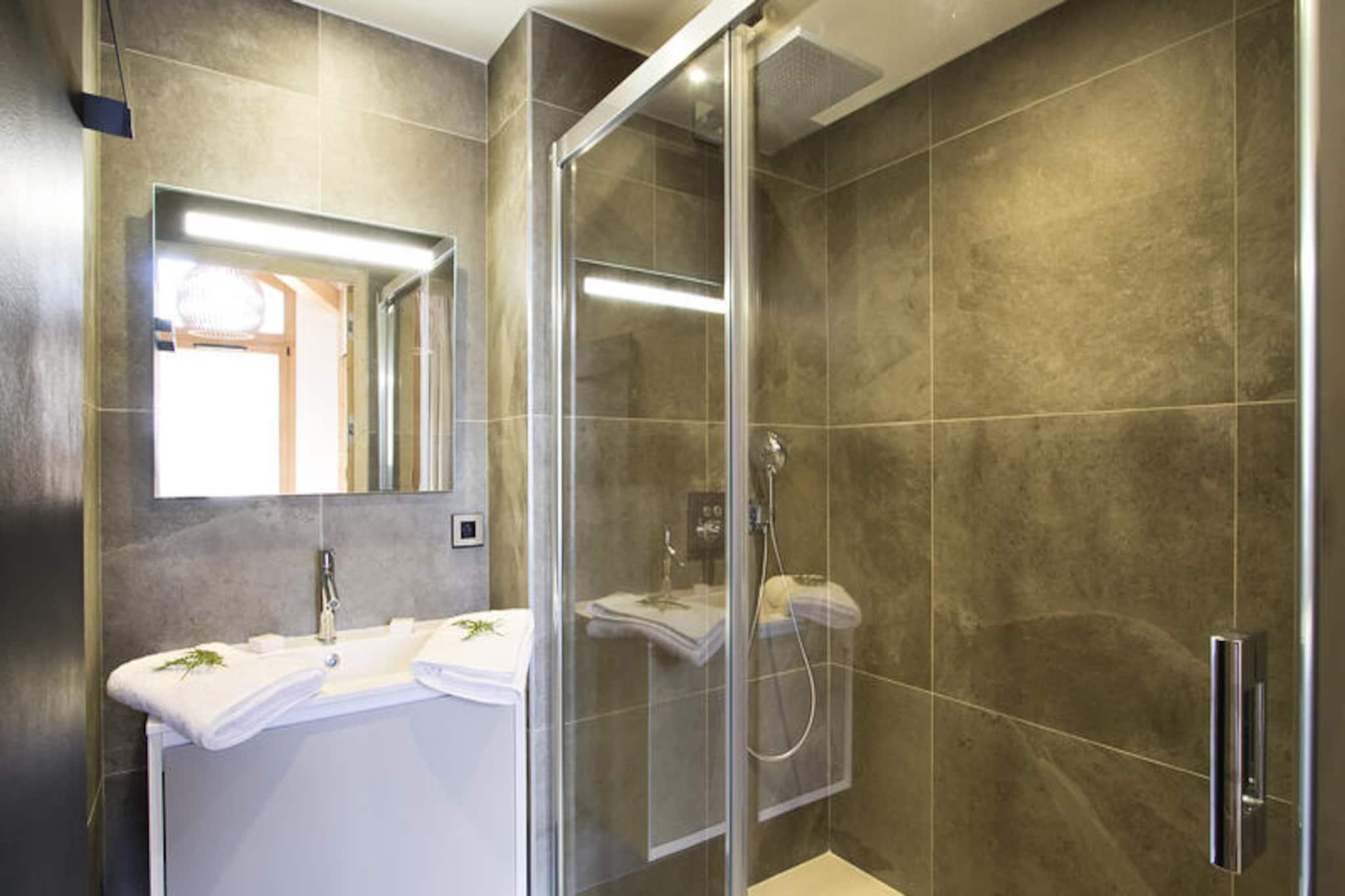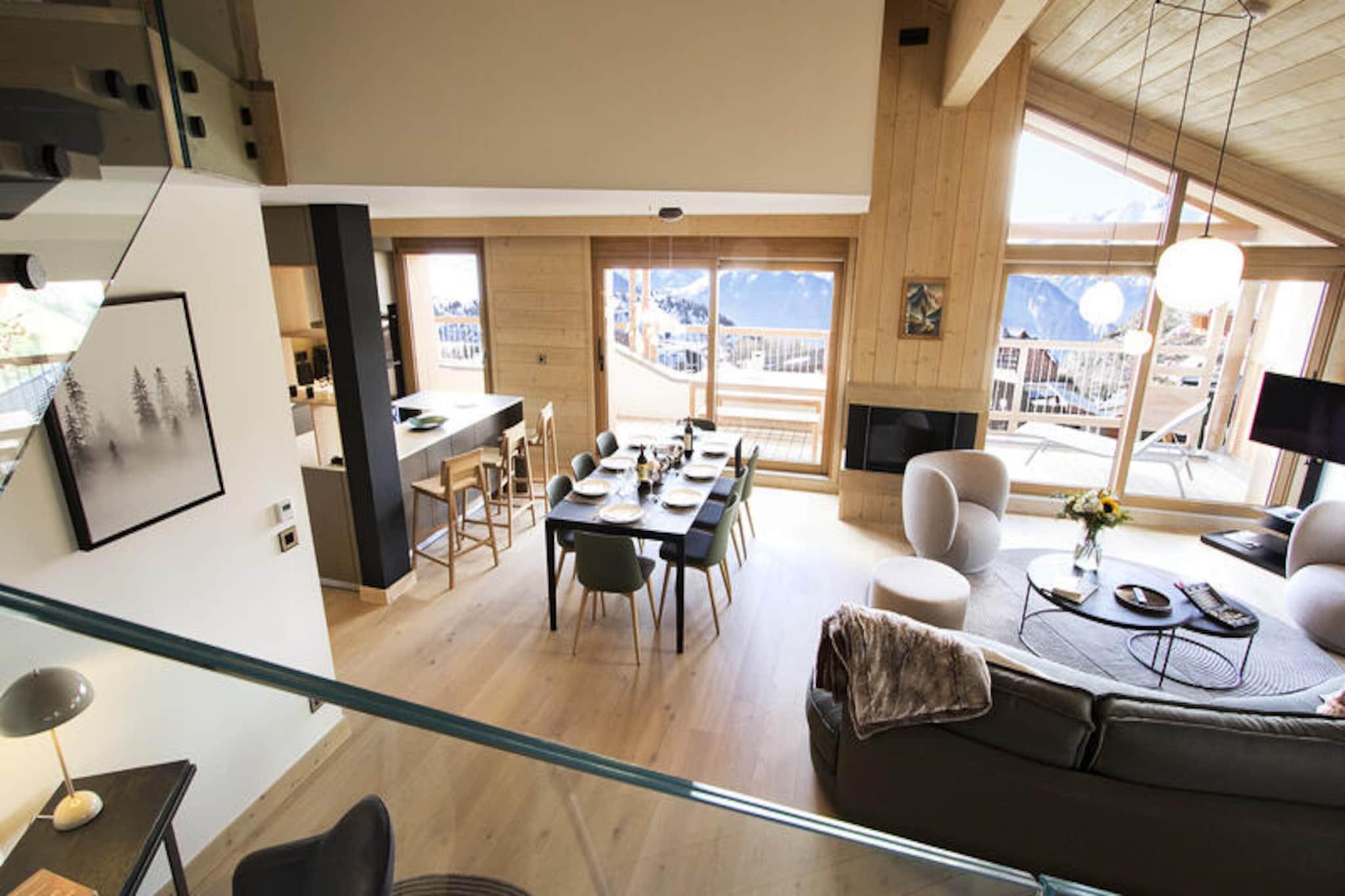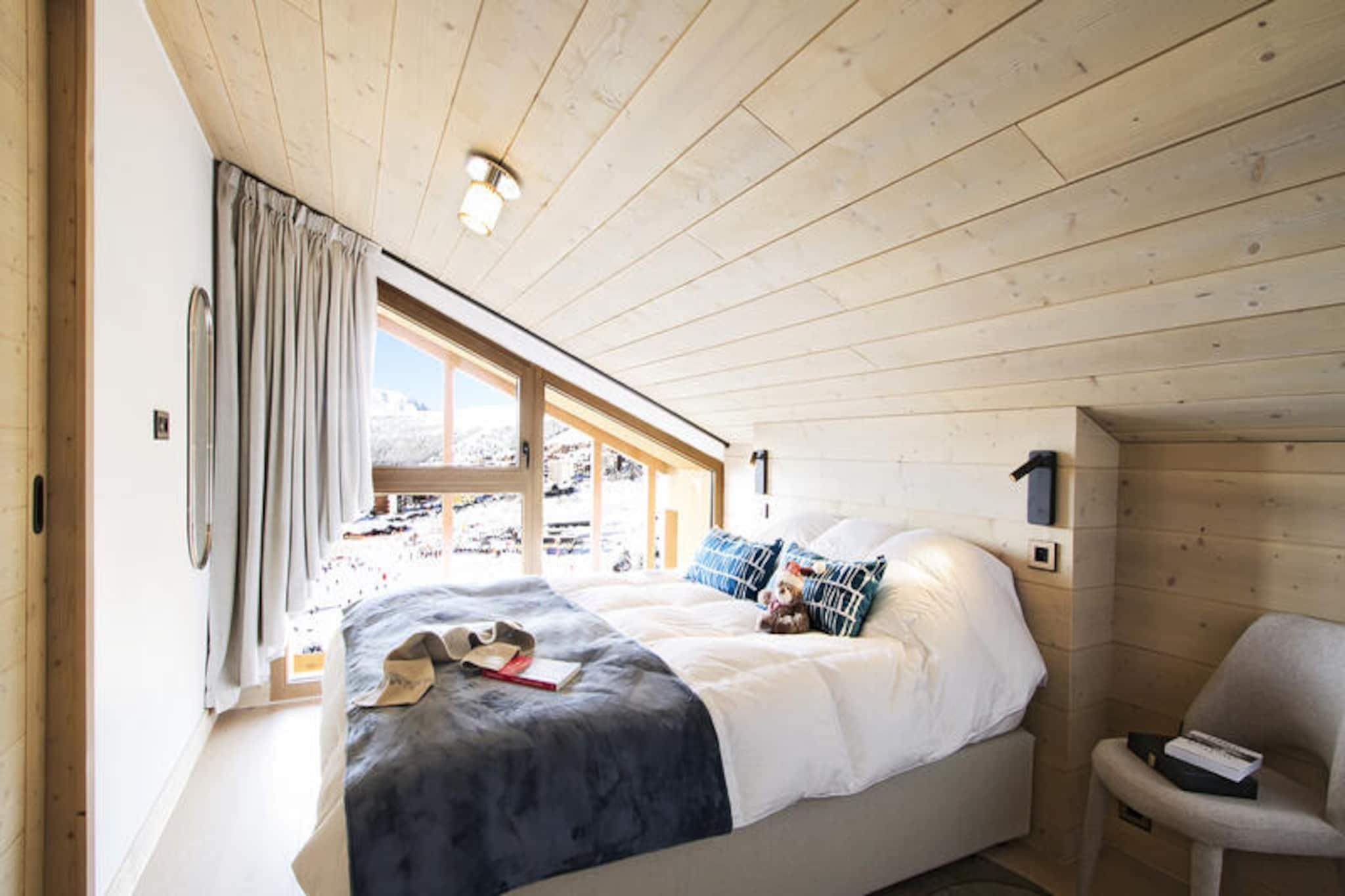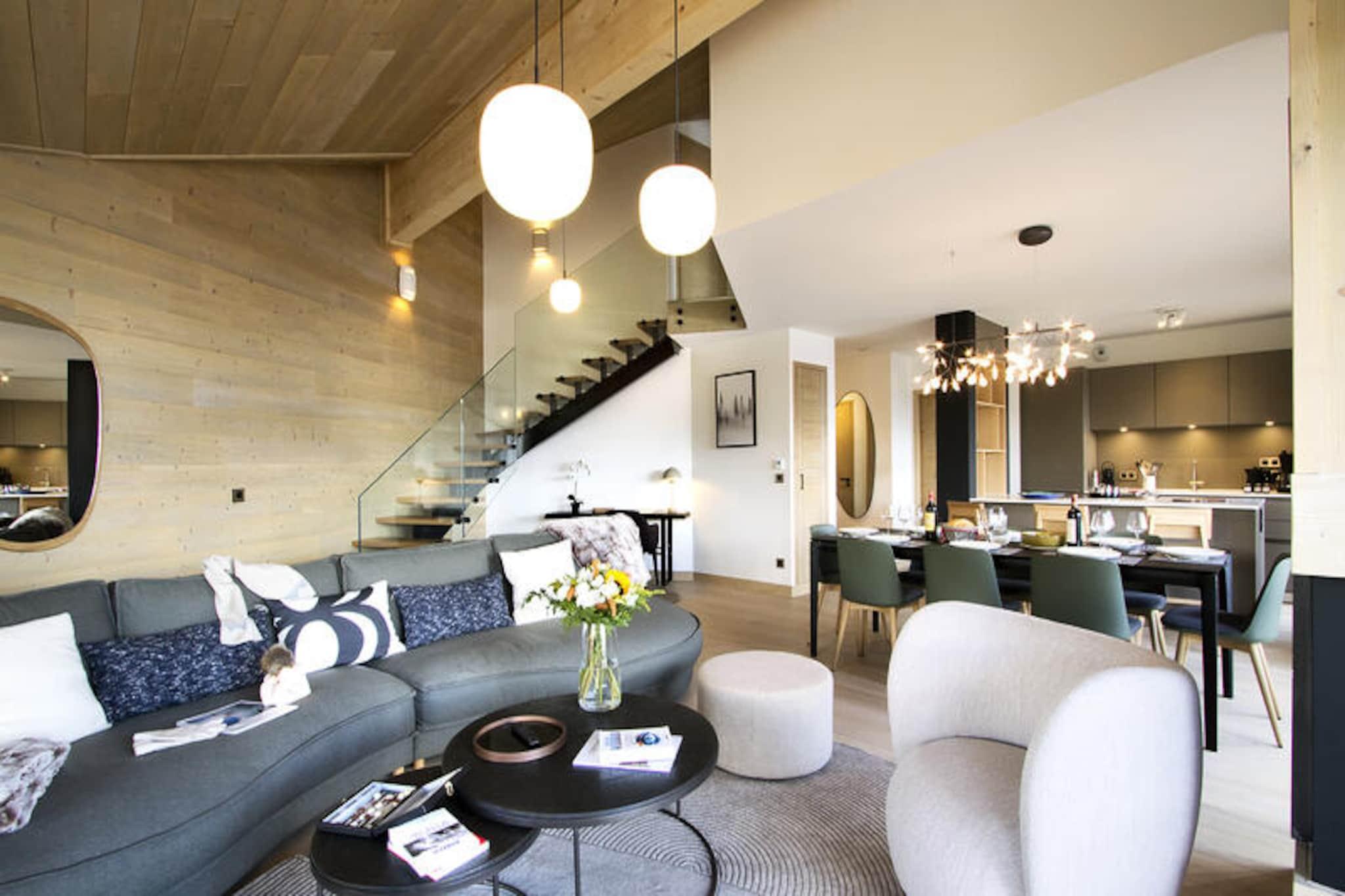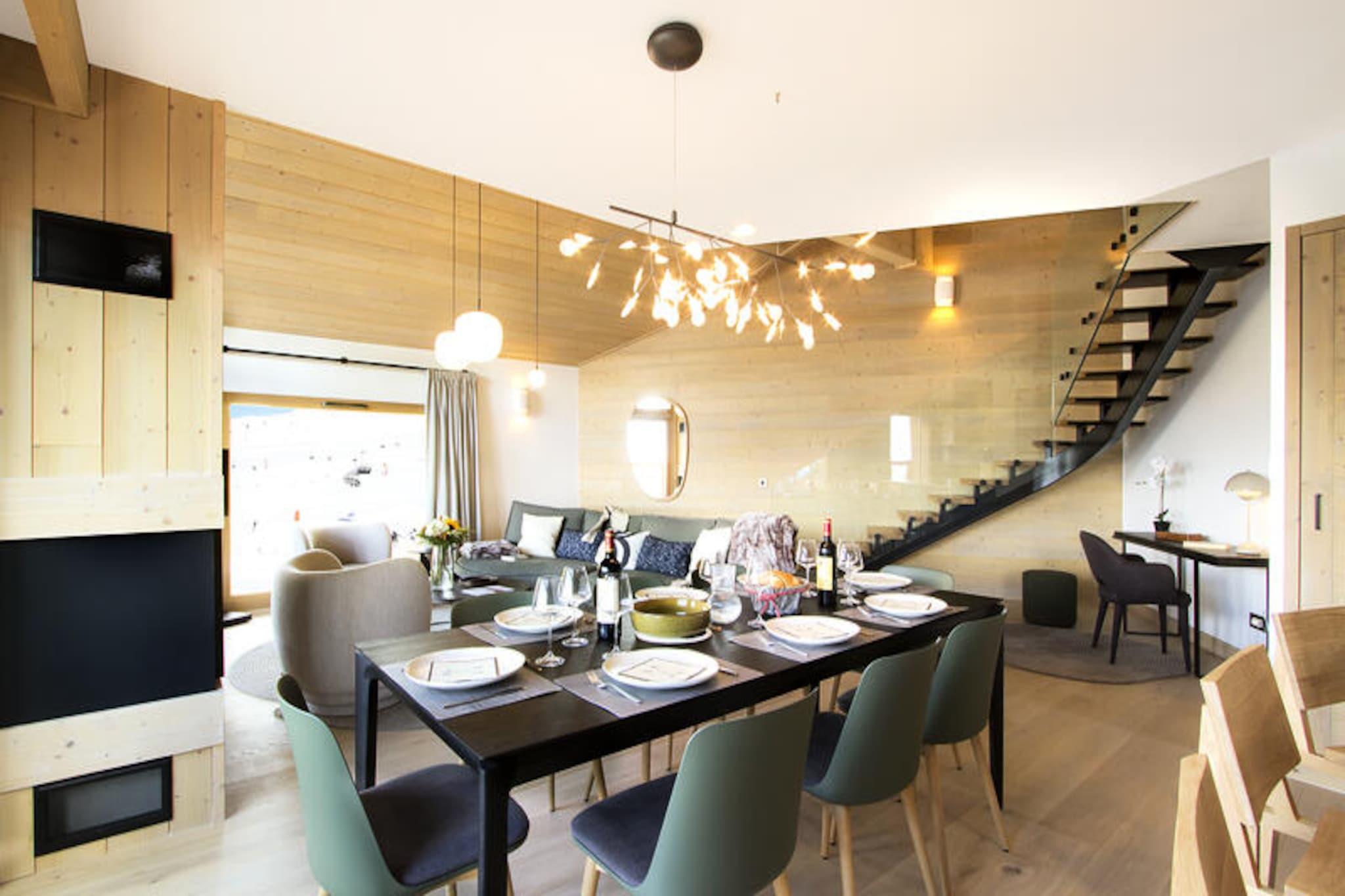 In the serene embrace of the French Alps, this stunning duplex apartment offers a harmonious blend of luxury and alpine charm. Bathed in natural light, the 126 m² residence is thoughtfully designed to provide an unforgettable ski-in/ski-out experience. Whether you're gazing at the snow-dusted peaks or soaking up the sun on the expansive 24 m² southwest-facing balcony, every moment here feels like a retreat into tranquility. The residence also boasts exclusive amenities including an indoor pool, gym, sauna, steam room, and sensory showers, ensuring relaxation after a day of adventure. \n\nStep inside to discover a cathedral-style living room adorned with a cozy wood-burning fireplace and plush seating, perfect for unwinding with loved ones. The fully equipped kitchen, featuring modern appliances such as an espresso machine and blender, invites culinary creativity, complemented by a stylish dining area for shared meals. The apartment accommodates up to eight guests across four elegant bedrooms, including two with private shower rooms and balconies offering breathtaking views. A desk area caters to those who need to stay connected, while a washing machine adds convenience for longer stays. \n\nWith direct access to the slopes from the ski room, your alpine adventures begin the moment you step outside. Beyond skiing, the vibrant surroundings offer hiking trails, picturesque villages, and local gastronomy to explore. Whether you're seeking adrenaline or serenity, this residence is your gateway to the best of the French Alps. \n\nChoose this exceptional property for an unforgettable mountain escape, where every detail is curated to create lasting memories.