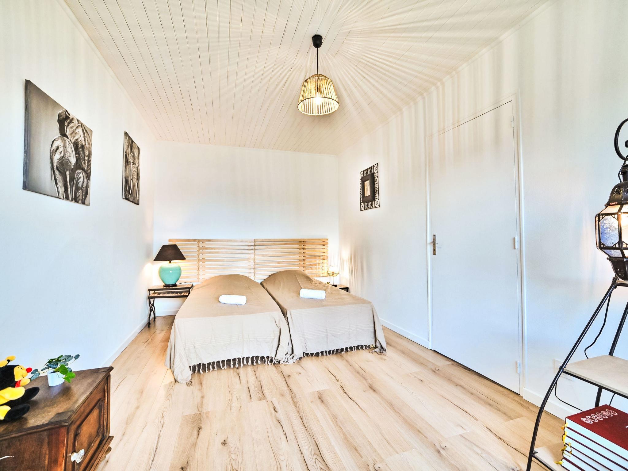 4-room house 60 m2. Comfortable and beautiful furnishings: living/dining room with TV (flat screen). Exit to the garden. 1 room with 1 french bed (160 cm, length 200 cm), shower. 1 room with 1 french bed (140 cm, length 190 cm). 1 room with 2 beds (90 cm, length 190 cm). Open kitchen (oven, dishwasher, 3 induction hot plates, toaster, kettle, microwave, electric coffee machine). Shower/WC. Electric heating. Terrace furniture, barbecue. View of the garden. Facilities: washing machine, hair dryer. Internet (WiFi). Parking (1 car) at the house. Offer by a private individual according to Art. 155, IV of CGI. 1738500109650