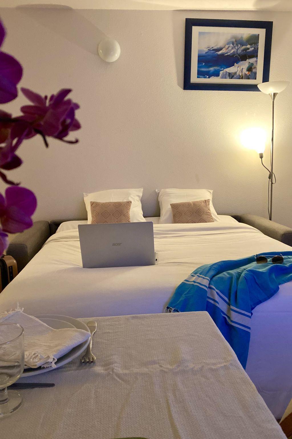 2-room apartment 35 m2. Object suitable for 2 adults + 3 children. Practical and beautiful furnishings: living/sleeping room with 1 double sofabed and TV (flat screen). 1 room with 1 bed. Kitchenette (dishwasher, 2 ceramic glass hob hotplates, toaster, kettle, microwave, electric coffee machine). Bath/WC. Upper floor: (steep stair) gallery with sloping ceilings with 1 double bed. Terrace. Terrace furniture. Facilities: Internet (WiFi). Parking (1 car). Maximum 1 pet/ dog allowed. The property is one of a type of property or apartment. Instead of an enclosed bedroom, some sleeping areas are located in an open-plan area (gallery, alcove, etc.). Offer by a private individual according to Art. 155, IV of CGI.