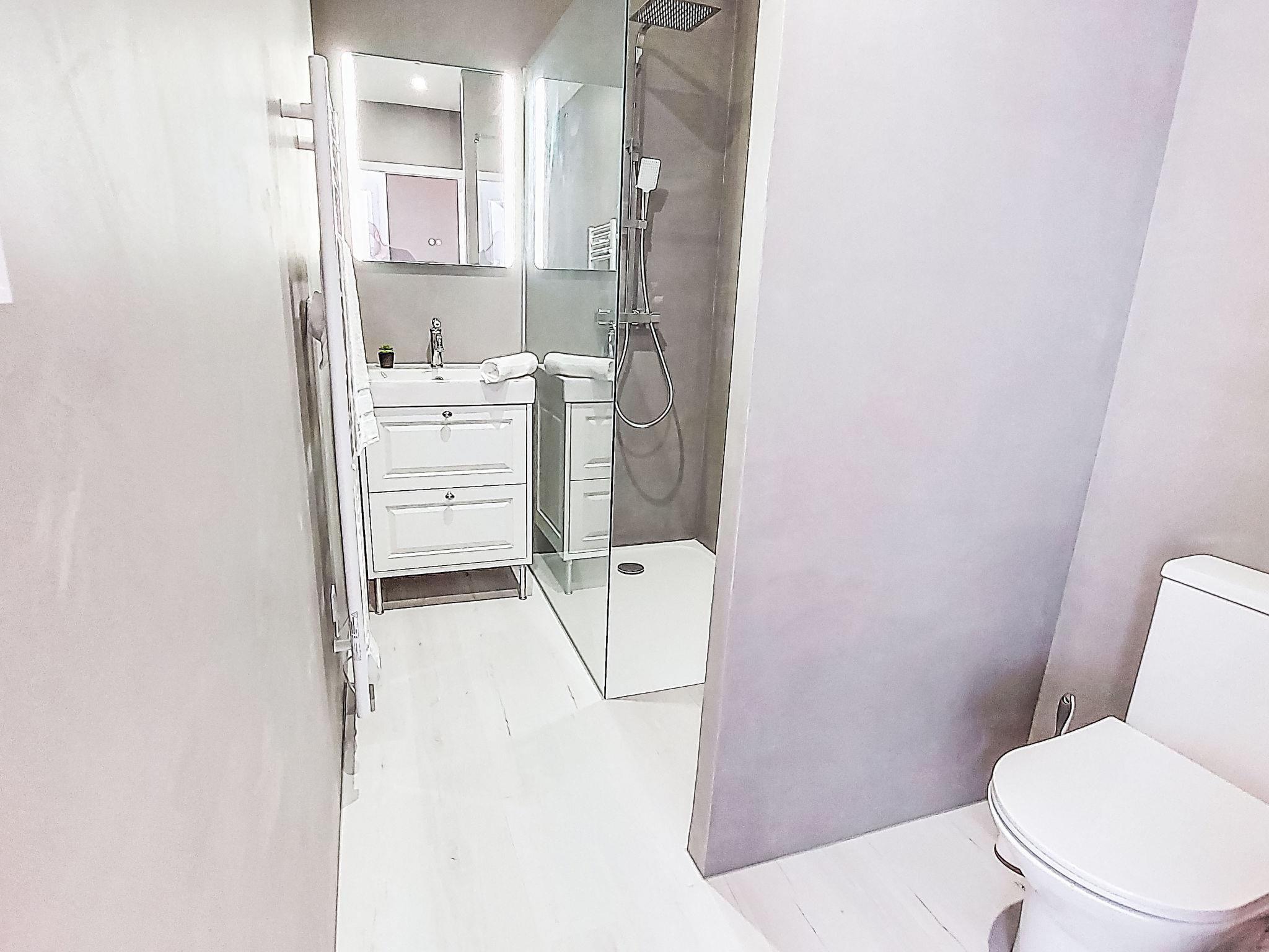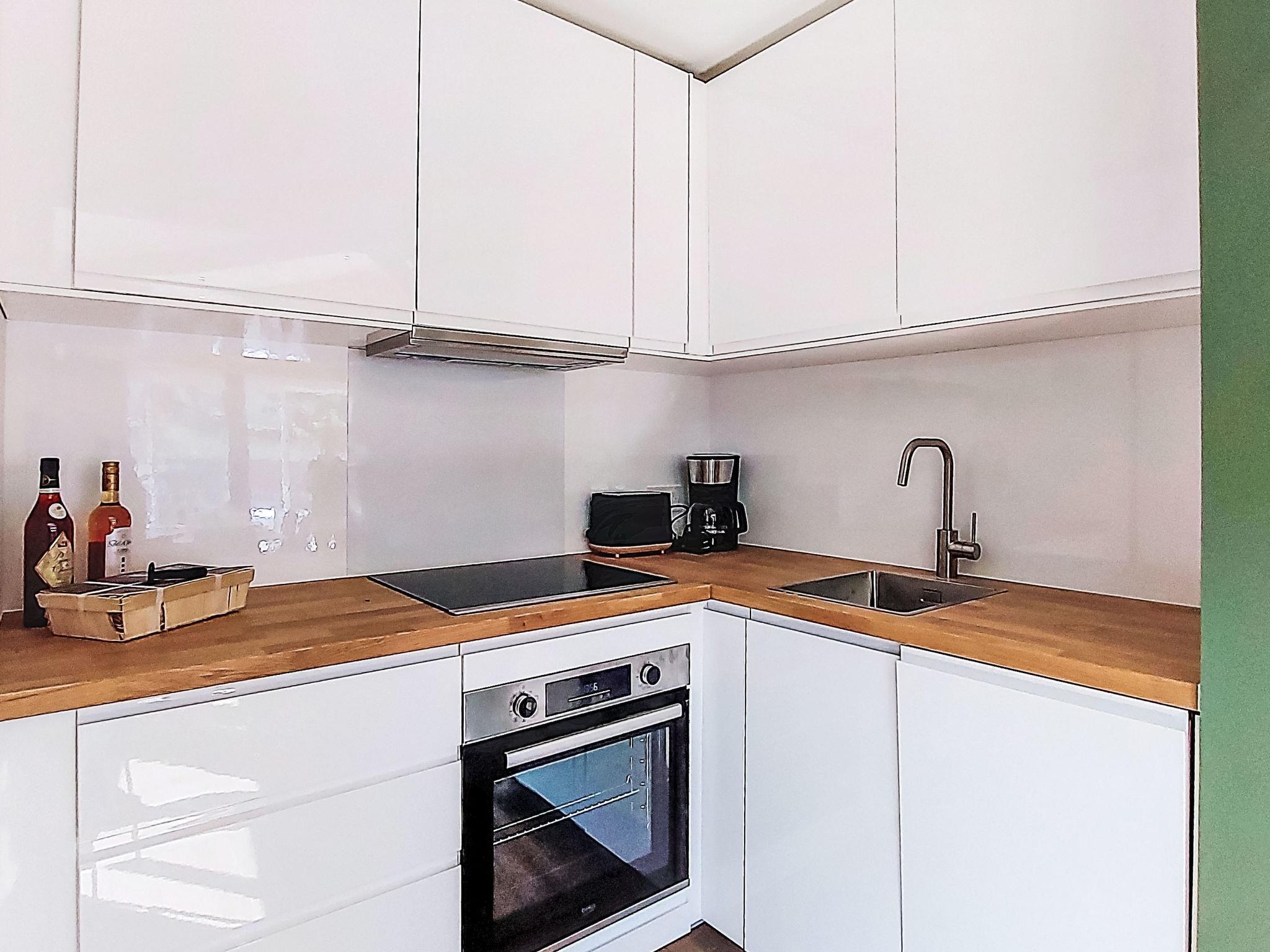 4-room terraced house 85 m2. Comfortable and beautiful furnishings: living/dining room with TV (flat screen). 1 room with 1 french bed (1 x 160 cm, length 200 cm). Open kitchen (dishwasher, 3 induction hot plates, toaster, kettle, microwave, electric coffee machine). Bath/WC. Electric heating. Upper floor: 1 room with 1 french bed (1 x 160 cm, length 200 cm). 1 room with 1 french bed (1 x 160 cm, length 200 cm). Shower/WC. Electric heating. Small terrace, small patio. Terrace furniture, barbecue. Facilities: hair dryer. Internet (WiFi, free). Parking at the house. Please note: non-smoking house. Smoke alarm. Offer by a commercial proprietor according to Art. 155, IV, CGI 17385000459A4