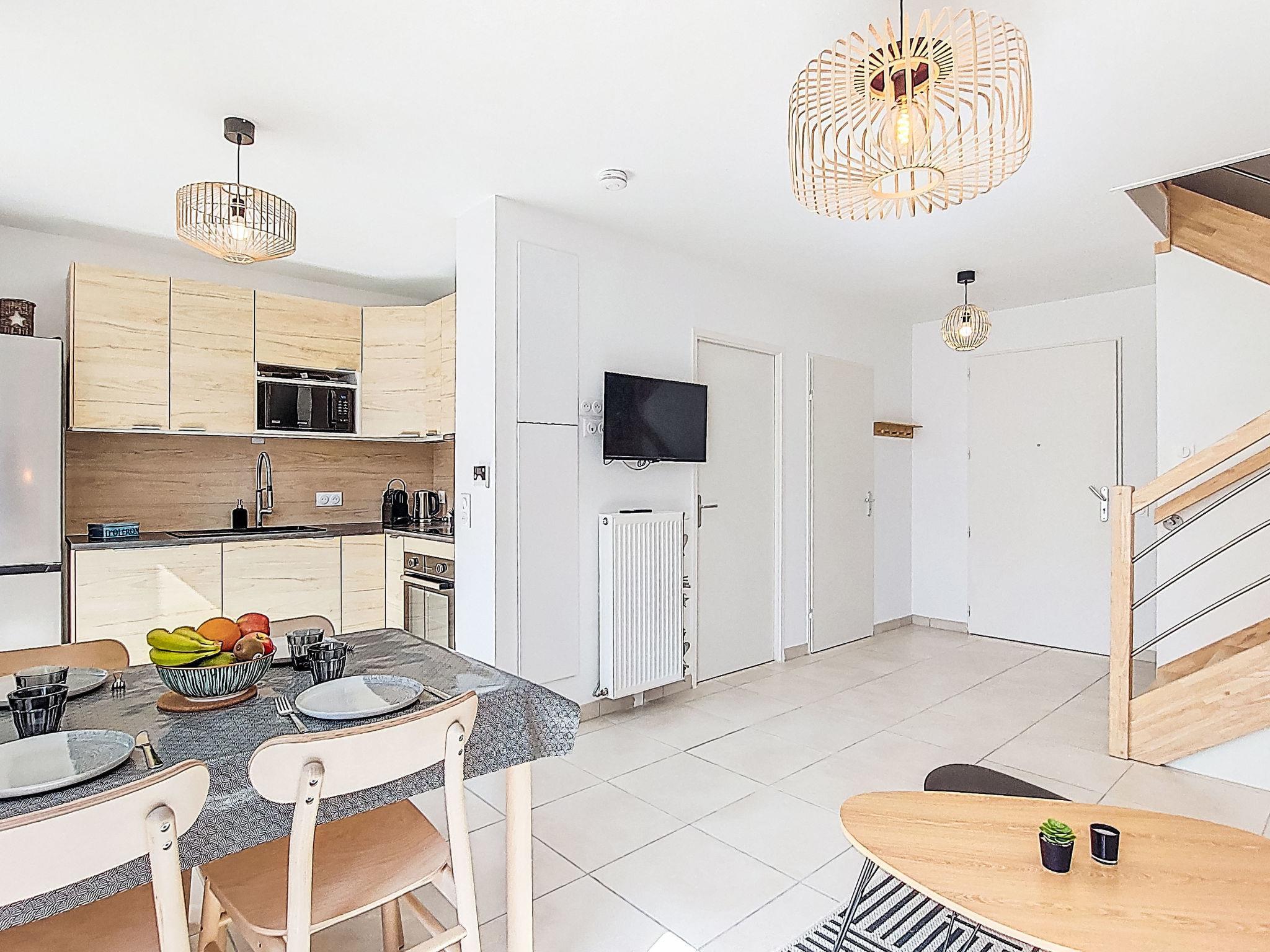"L'Arroche", 3-room terraced house 60 m2. Comfortable and beautiful furnishings: living/dining room with TV (flat screen). Open kitchen (dishwasher, 3 induction hot plates, toaster, kettle, microwave, electric coffee machine). Shower/WC. Electric heating. Upper floor: 1 room with 1 french bed (1 x 140 cm, length 190 cm). 1 room with 2 beds (80 cm, length 200 cm). Bath/WC. Small garden. Terrace furniture. Facilities: washing machine, baby cot, hair dryer. Internet (WiFi, free). Parking at the house. Please note: suitable for families. Non-smoking house. Smoke alarm. Offer by a private individual according to Art. 155, IV of CGI. 17337000457AD