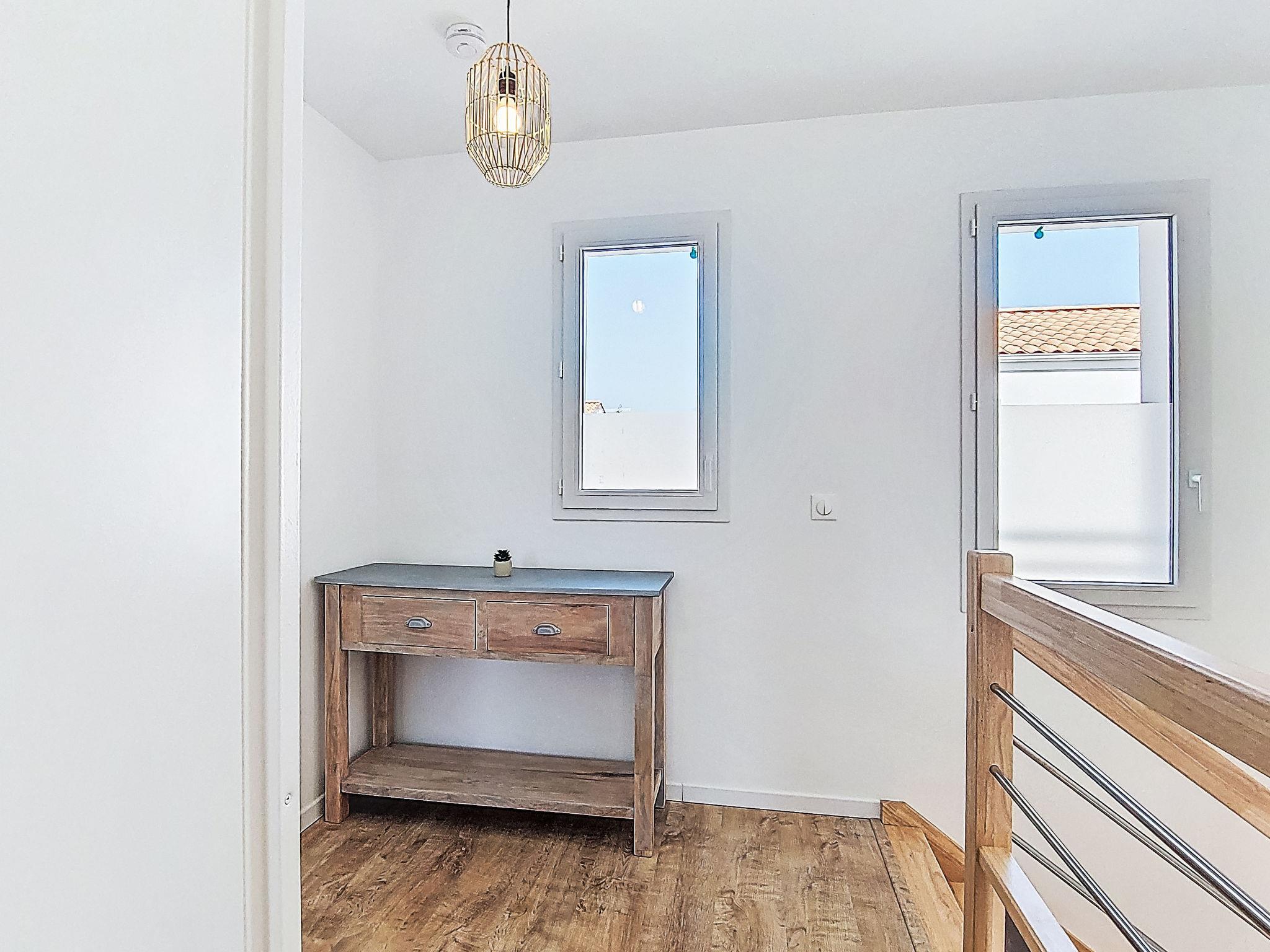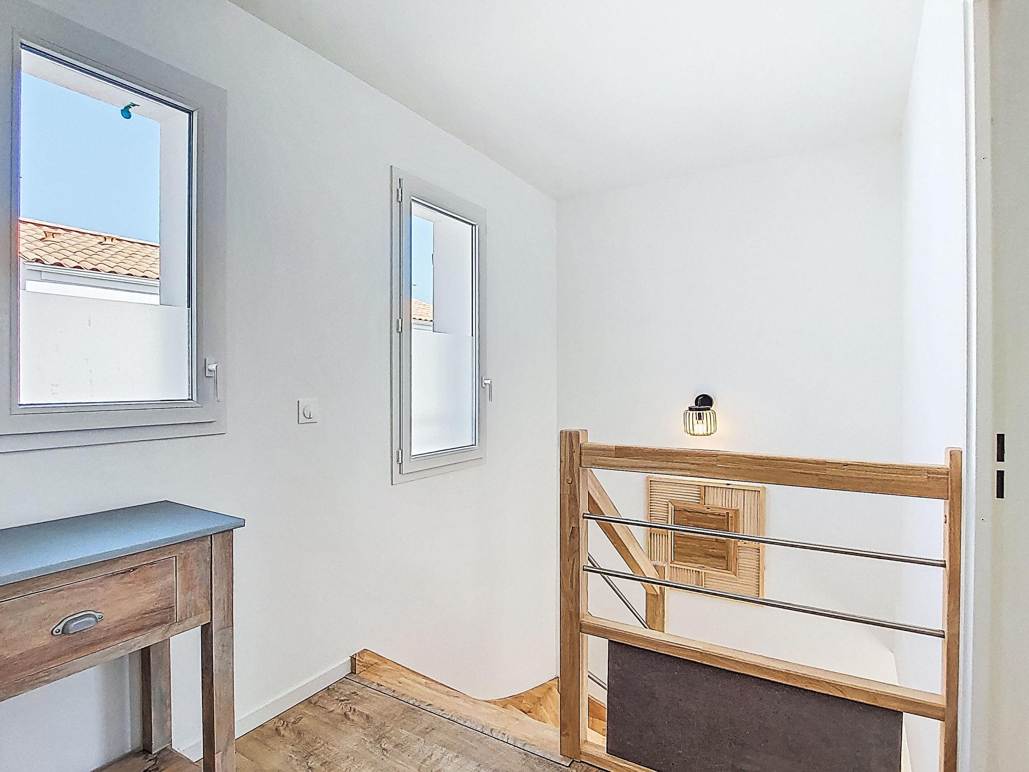 Terraced house "L'Arroche". In the resort 700 m from the centre of Saint Georges d'Oléron, in a quiet position in the residential district, 3.5 km from the edge of the forest, 3.5 km from the sea, 3.5 km from the beach. Private: garden (fenced), parking space n 7&8 (for 2 cars) at the house. Shop, grocery 700 m, supermarket 4.7 km, restaurant, bar, bakery, café 700 m, bus stop "Cheray D734" 4.5 km, railway station "Rochefort sur Mer" 51 km, sandy beach "Foulerot" 3.5 km. Sports harbour 3.6 km, golf course (9 hole) 10 km, surf school 6 km. Nearby attractions: Iléo centre aquatique 12 km, Phare de Chassiron 13 km, Port de la Cotinière 10 km, Corderie Royale Rochefort 51 km, La Rochelle 86 km.