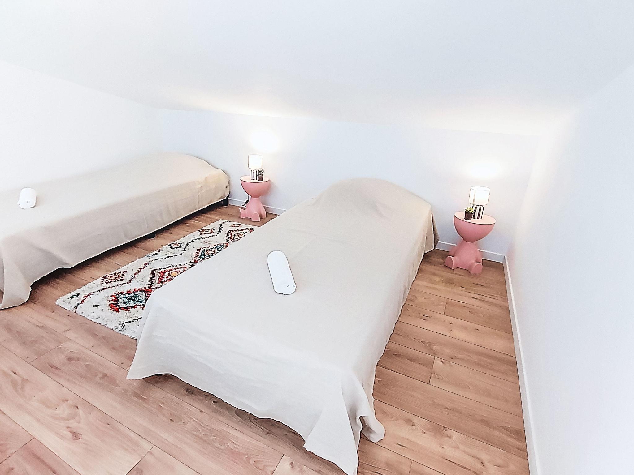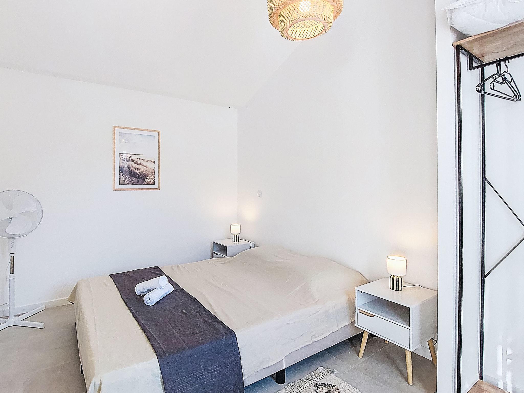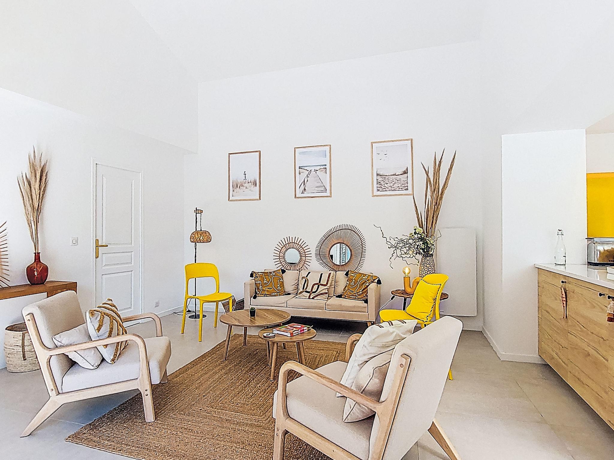 "Les Sables", 4-room house 110 m2. Spacious and bright, comfortable and modern furnishings: large living/dining room with TV (flat screen). Exit to the terrace. 1 room with 1 french bed (1 x 160 cm, length 200 cm). 1 room with 1 french bed (1 x 160 cm, length 200 cm). 1 children's room with sloping ceilings with 4 beds (90 cm, length 200 cm). Large, open kitchen (oven, dishwasher, 4 induction hot plates, toaster, kettle, microwave, electric coffee machine). 2 bathrooms, sep. WC. Electric heating. Terrace 20 m2. Terrace furniture, barbecue, deck chairs. Facilities: iron, hair dryer. Internet (WiFi, free). Parking (1 car). Please note: non-smoking house. Smoke alarm. Offer by a private individual according to Art. 155, IV of CGI. 173370005735B