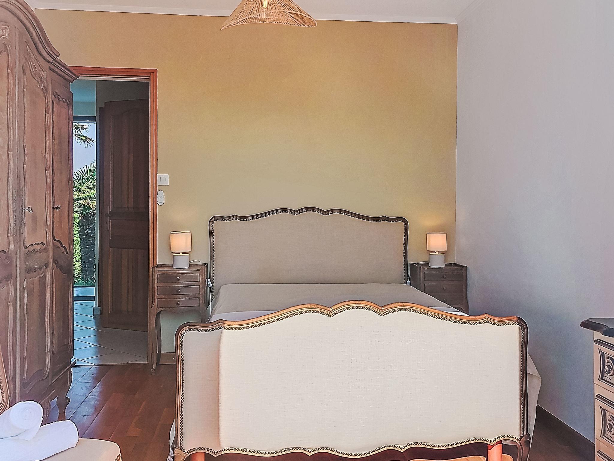 "L'Allée", 4-room house 100 m2, lower ground floor. Simple and practical furnishings: living/dining room with TV (flat screen). Exit to the garden, to the terrace. 1 room with 2 beds (80 cm, length 190 cm). 1 room with 1 french bed (140 cm, length 190 cm). Kitchen (oven, dishwasher, 4 ceramic glass hob hotplates, toaster, kettle, microwave, electric coffee machine). Bathroom, sep. WC. On the lower ground floor: 1 room with 1 french bed (140 cm, length 190 cm), bathroom and separate WC. Playroom. Electric heating. Large terrace, large garden. Terrace furniture, barbecue. Facilities: washing machine, iron, hair dryer. Internet (WiFi, extra). Parking (fenced), garage on the property. Please note: non-smoking house. Smoke alarm. Offer by a private individual according to Art. 155, IV of CGI. 173850004235F