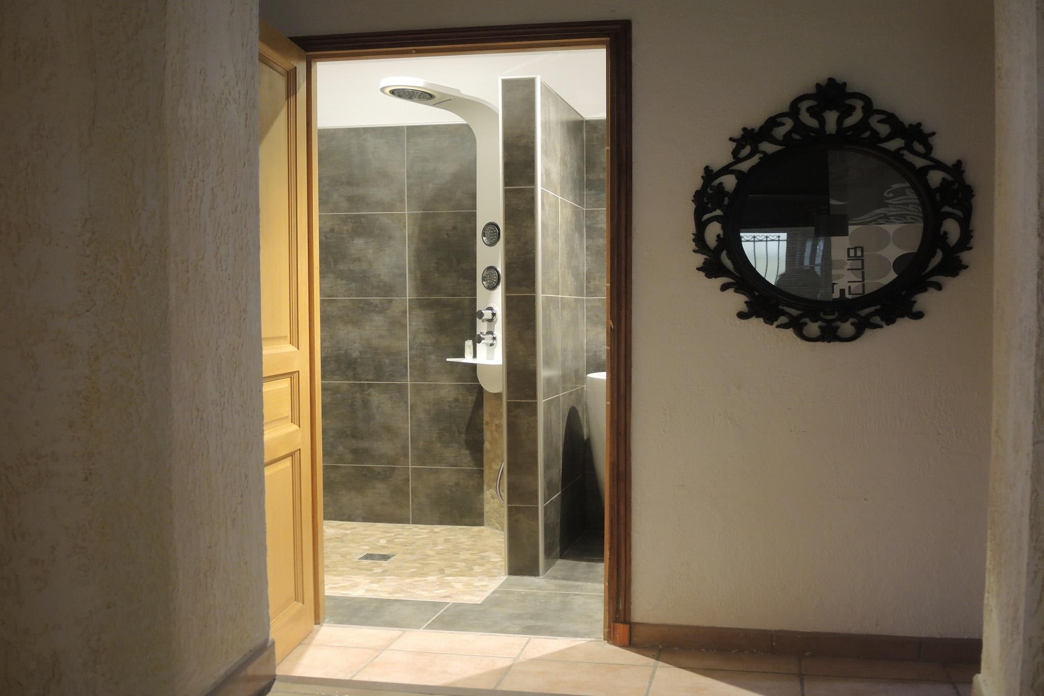 Ground floor: (hallway, Sitting room(double sofa bed, TV(flatscreen, satellite), fireplace, seating area, radio, stereo unit, air conditioning), dining room(dining table, air conditioning, high chair), open kitchen(cooker(4 ring stoves, gas), coffee machine, oven, microwave, dishwasher, fridge(+ ice machine, + freezer, american), air conditioning), bedroom(double bed, shower, air conditioning, children's bed), Bedroom with bathroom(double bed, shower, washbasin, air conditioning), Bedroom with bathroom(double bed, shower, washbasin, air conditioning), Bedroom with bathroom(bunk bed, shower, washbasin, air conditioning), bathroom(shower, washbasin, toilet), toilet, pantry(washing machine)) carport, terrace(private), garden(private, fenced, 2100 m2), garden furniture, sun loungers, BBQ, swimming pool(private, heatable, 8 x 5 m., opened from May upto and including Oct), boules court