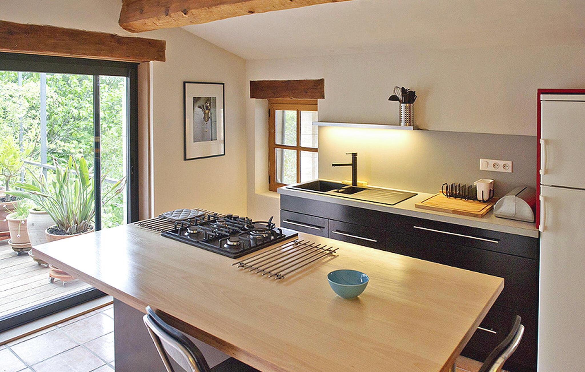 Dieses abgelegene Anwesen (ohne Nachbarn) in der Nähe von Issirac ist ein Paradies für Naturliebhaber. Sie ist über einen 1,2 km langen, teilweise asphaltierten Weg erreichbar und liegt in einer sehr ruhigen Umgebung inmitten der Natur. Die große Wohnung (100 m²) befindet sich in einem vom Haus der Eigentümer getrennten Gebäude. Der Garten und der Pool werden mit den Feriengästen einer kleinen Ferienwohnung geteilt. Die Wohnung verfügt über eine große private Terrasse, ein gemütliches Wohn- und Esszimmer mit einem bequemen Schlafsofa und einem Holzofen sowie zwei Schlafzimmer. Eine gut ausgestattete Wohnküche mit Erkerfenster führt auf die Terrasse.