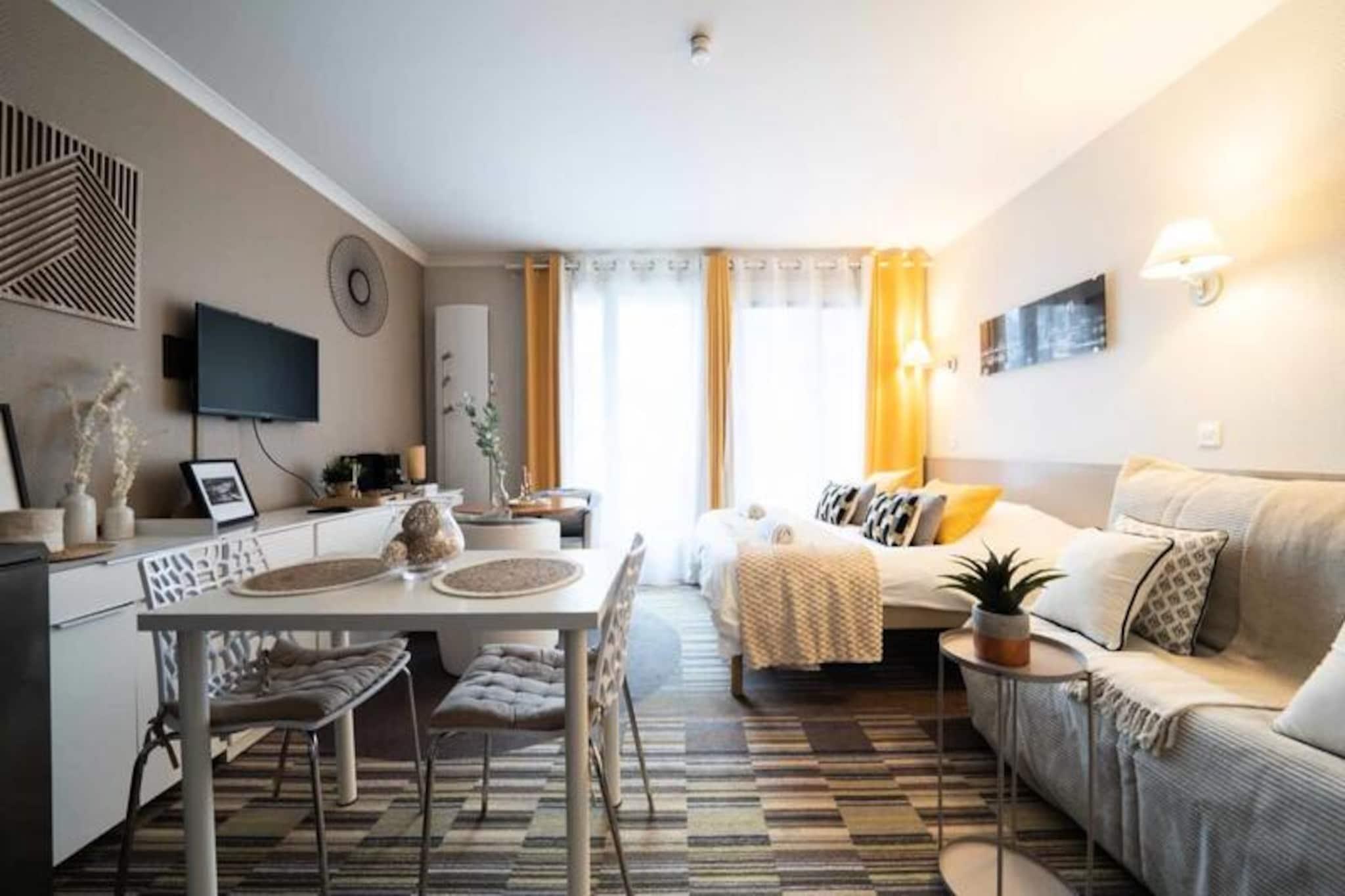 Immerse yourself in the charm of Paris with this bright and spacious studio apartment, perfectly situated just steps away from Porte de Versailles and Balard metro stations, as well as the tramway. Tucked away in a quiet residence, this first-floor retreat offers a serene escape from the bustling city while keeping you connected to its vibrant heart. Whether you're visiting for leisure or business, the nearby Parc des Expositions and the iconic sights of Paris are easily accessible, making this location ideal for any traveler. This 26 m² studio is thoughtfully designed to combine comfort and practicality. The main living area features two single beds and a sofa bed, perfect for a small child, ensuring a cozy stay for up to two adults and one child. A fully equipped kitchenette with a Nespresso coffee machine, microwave, and kettle allows you to prepare meals at your convenience, while the private bathroom with a bathtub and separate toilet adds to the comfort. Enjoy your morning coffee on the balcony, which offers a peaceful, unobstructed view, a rare luxury in the city. Modern amenities such as a flat-screen TV with satellite channels and portable air conditioning ensure a comfortable stay year-round. The apartment is part of the 4-star Adagio Aparthotel residence, which offers a range of services to enhance your experience. Take advantage of the lounge/library, foosball table, laundry facilities, and vending machines for snacks. A buffet breakfast and private parking are available for an additional charge, adding convenience to your stay. The residence’s tranquil setting, just off the main street, is complemented by nearby shops, restaurants, and entertainment options in Issy-les-Moulineaux and Porte de Versailles. With easy access to public transport, including metro lines 8 and 12 and the Porte d’Issy tram stop, exploring Paris has never been easier. Whether you're here to visit the Aquaboulevard water park, enjoy a film at the local cinemas, or attend an event at the Parc des Expositions, this apartment offers the perfect base for your Parisian adventure. Book your stay now and experience the best of Parisian comfort and convenience.