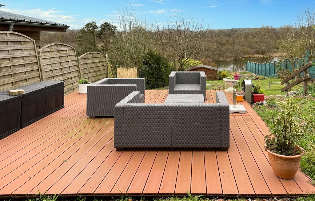 Genießen Sie die friedliche Atmosphäre bei einem Frühstück auf der Terrasse und lauschen Sie dem leisen Rauschen des Flusses bei einem Glas Wein auf der Lounge. Nutzen Sie den Steg zum Angeln und entfachen Sie abends den Grill.