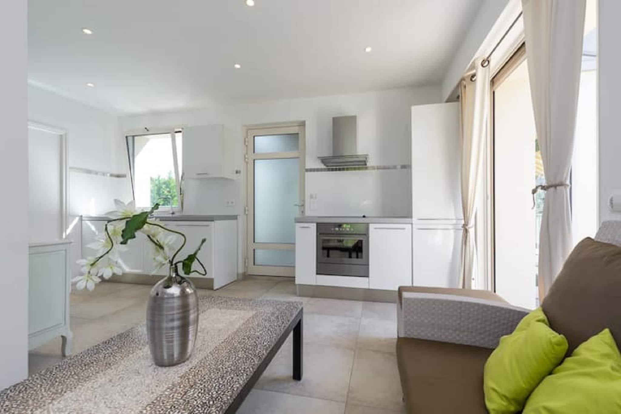 This expansive villa in Juan-les-Pins offers a luxurious coastal escape for up to 14 guests, just 100?m from the sandy beach. The ground floor features a stylish living room with fireplace, CD player, and TV, a spacious dining area, and a fully equipped open kitchen with espresso machine, blender, and dishwasher. Four bedrooms and three bathrooms ensure comfort and privacy, while the first floor adds two additional living rooms, four more bedrooms, two bathrooms, and a heated terrace. Outdoors, guests enjoy a private fenced swimming pool (9?×?5?m) with water alarm, sun loungers, BBQ, and a lounge set in the garden. Amenities include air conditioning, fitness equipment, table football, and a steam shower. The villa also features an outdoor kitchen, patio, and multiple terraces for relaxing or entertaining. Located just 1?km from Juan-les-Pins center and 8?km from Cannes, the villa is close to Juan-les-Pins train station and Nice Airport. Dining options abound nearby, including L'escale, Le Bistrot, and La Mamma, offering everything from classic French fare to Italian favorites. With its prime location and upscale amenities, this villa is perfect for large families or groups seeking sun, style, and seaside charm.