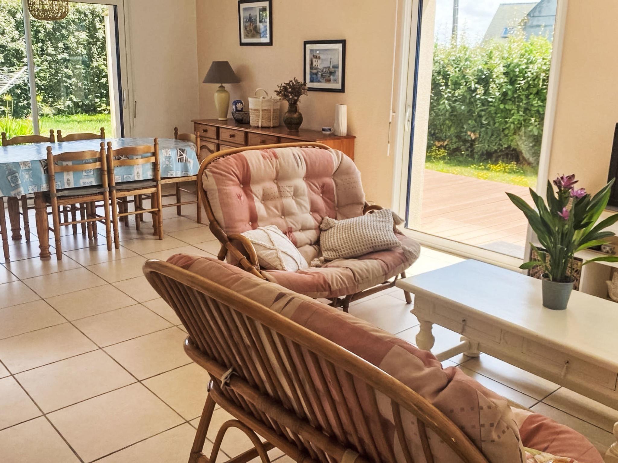 "L'appel du Large", 4-room house 80 m2 on 2 levels. Beautiful and tasteful furnishings: living/dining room 40 m2 with dining table and satellite TV. Exit to the terrace. Open kitchen (oven, dishwasher, 4 ceramic glass hob hotplates, toaster, kettle, microwave, electric coffee machine). Sep. WC. Upper floor: 2 rooms with sloping ceilings, each room with 1 french bed (140 cm, length 190 cm). 1 room with sloping ceilings with 2 beds (90 cm, length 190 cm). Shower, sep. WC. Electric heating. Parquet floors. 2 terraces. Terrace furniture, barbecue (portable), deck chairs (4). Facilities: washing machine, iron. Internet (WiFi, free). Please note: non-smoking house. Smoke alarm. The shower on the ground floor is located in the garage. Offer by a commercial proprietor according to Art. 155, IV, CGI