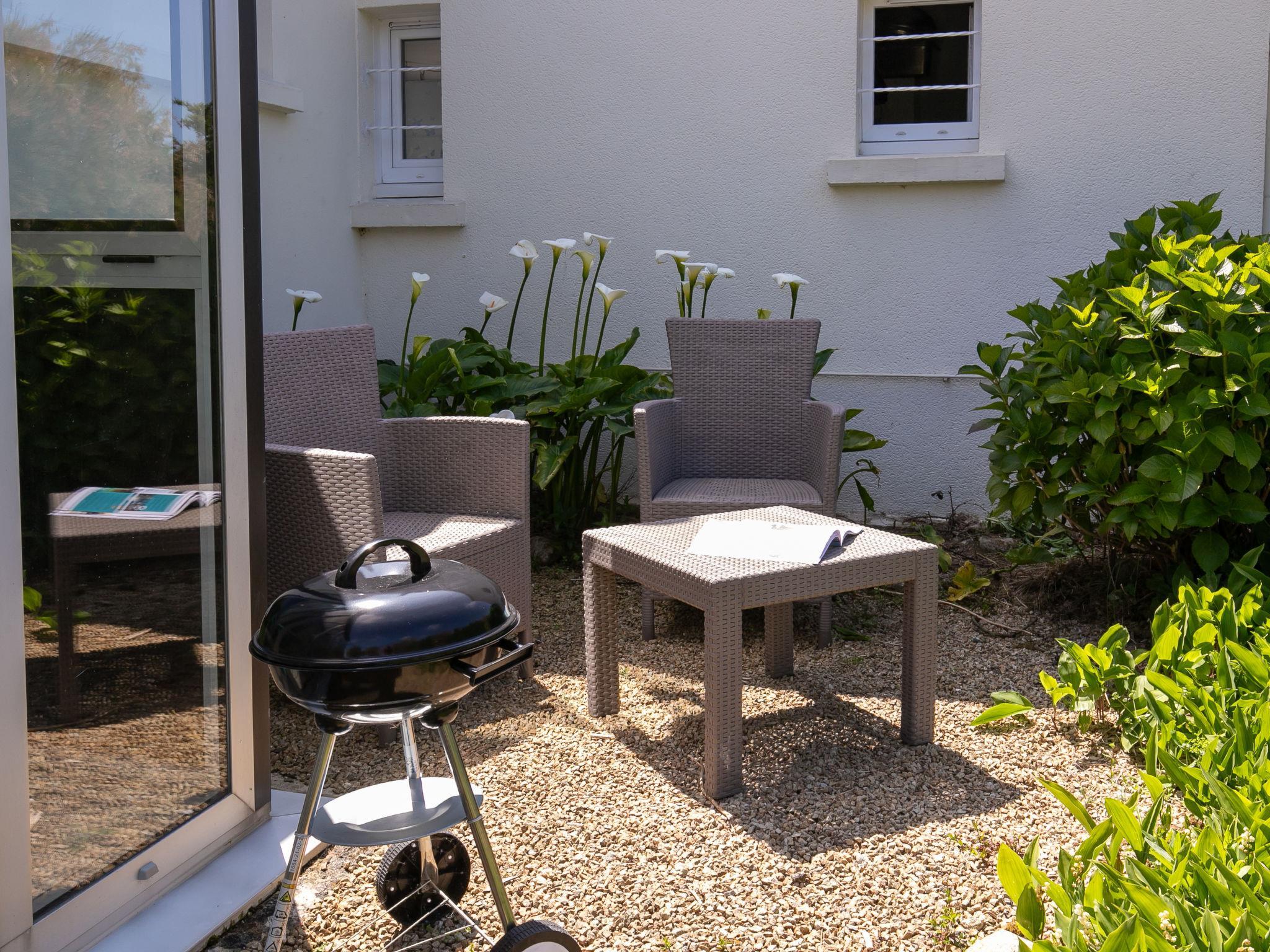"Les Hortensias", 1-room studio 35 m2. Comfortable and beautiful furnishings: living/dining room with 1 bed (140 cm, length 190 cm), TV (flat screen). Open kitchen (oven, 4 gas rings, kettle, microwave, grill, electric coffee machine) with dining nook. Exit to the veranda, to the patio. Bathroom, sep. WC. Oil heating. Small patio 10 m2, garden 200 m2, south facing position. Terrace furniture, barbecue (portable), deck chairs (2). Facilities: hair dryer. Internet (WiFi, free). Please note: non-smokers only. 1 small pet/ dog allowed. Private entrance, smoke alarm. No internal connecting door between the separated properties.