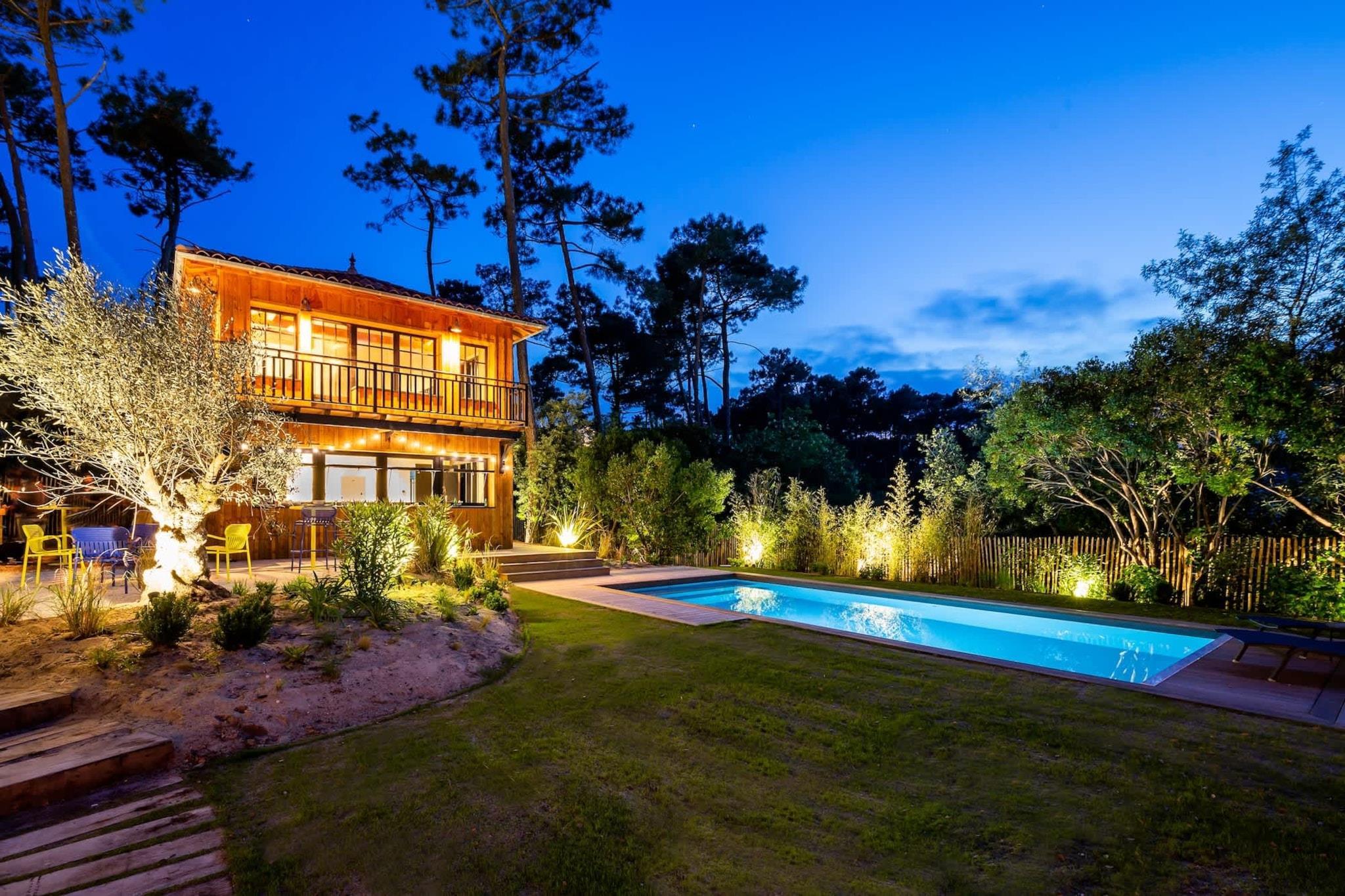Here is a three-paragraph, innovative and elegant description under 2,000 characters for **Villa Sylvestre**: --- Tucked into the pine-scented hills of Le Canon in Cap Ferret, Villa Sylvestre blends timeless Basque charm with contemporary design in an extraordinary setting. Designed by a renowned architect, this spacious retreat welcomes up to 14 guests across seven en-suite bedrooms, including two in the serene pool house. Just a short walk from local markets and oyster huts along the Bassin d’Arcachon, it’s an ideal escape for families and friends seeking style, space, and seaside pleasures. The villa’s interiors are curated for comfort and connection—with soaring ceilings, soft natural light, and open-plan spaces that invite gatherings. From the professional Bulthaup kitchen to the wine cellar and sound system across every zone, no detail is overlooked. Whether dining under the stars, reading on a shaded terrace, or enjoying a morning coffee on your private balcony, every corner offers something special. For those mixing work and play, a quiet desk nook with garden views provides a calming workspace. Outdoors, the experience unfolds across a beautifully landscaped 1,800 m² garden with a heated pool, pétanque court, bar, and brasero lounge. After beach outings or bike rides through Cap Ferret, guests can unwind with warm showers and gather for slow evenings over wine and local oysters. This is more than a beach villa—it’s a sustainable, soulful hideaway where elegance and responsibility come together to celebrate the best of coastal France.
