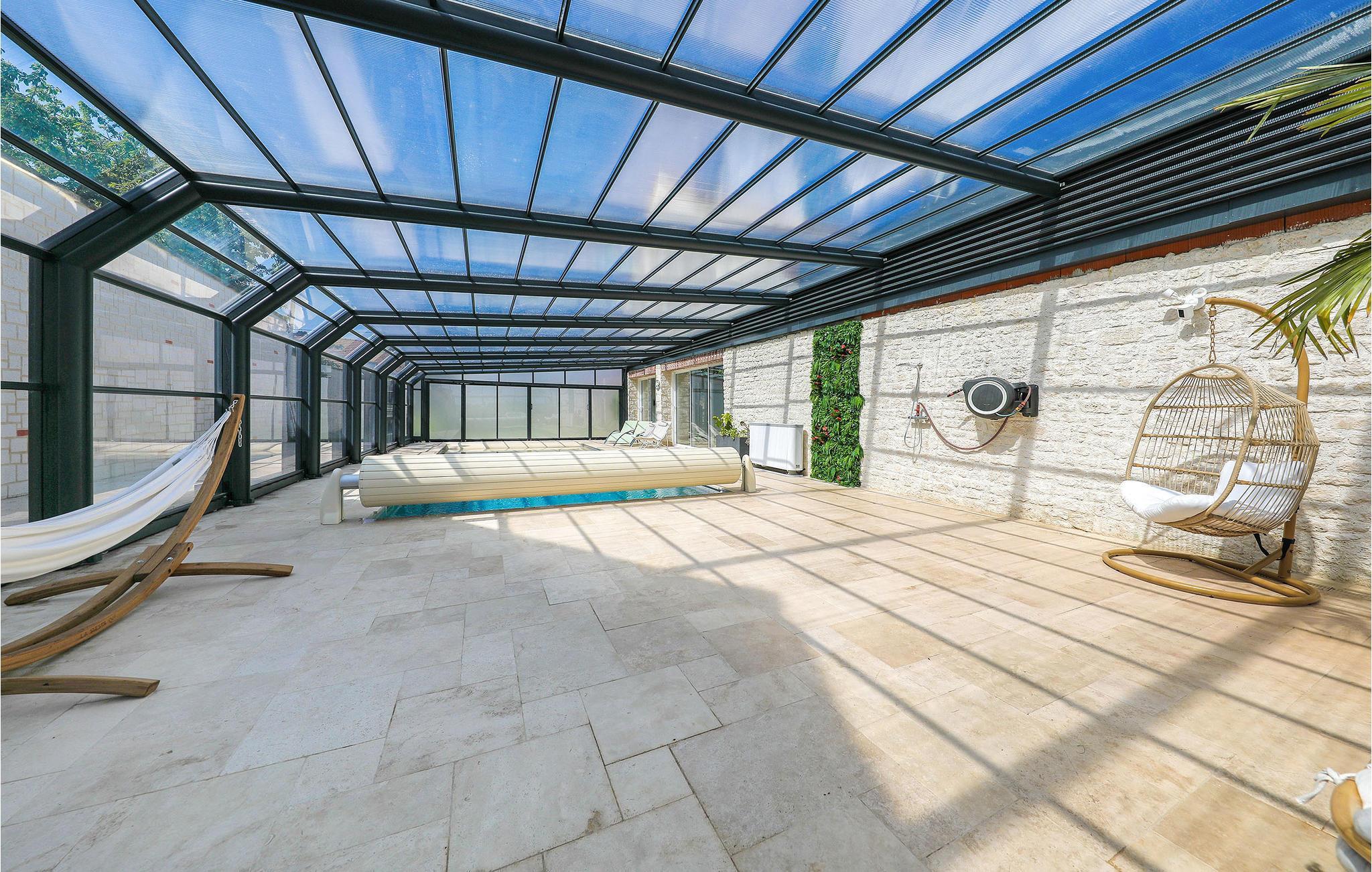 Fühlen Sie sich mit Ihrer Großfamilie, befreundeten Familien oder Freunden wie zuhause. Das moderne Haus bietet Ihnen die Atmosphäre eines großen Lofts und verbindet mehrere Ebenen miteinander. Hier können Sie sich wohlfühlen und nach einer leckeren Mahlzeit, die Sie in der Küche gezaubert haben, viel Spaß im privaten Badebereich genießen. Ein beheizter Indoor-Pool, ein Whirlpool und Sauna laden Sie ein Ihr privates Wellenessprogramm zu genießen und dabei zur Ruhe zu kommen. Die Abende können Sie sich beim Spielen oder Filmschauen verbringen und erholt in den nächsten Urlaubstag starten.