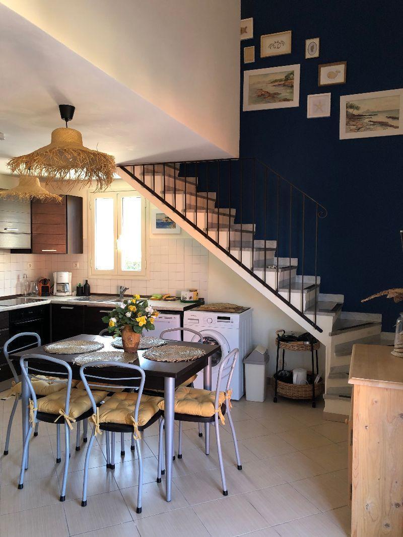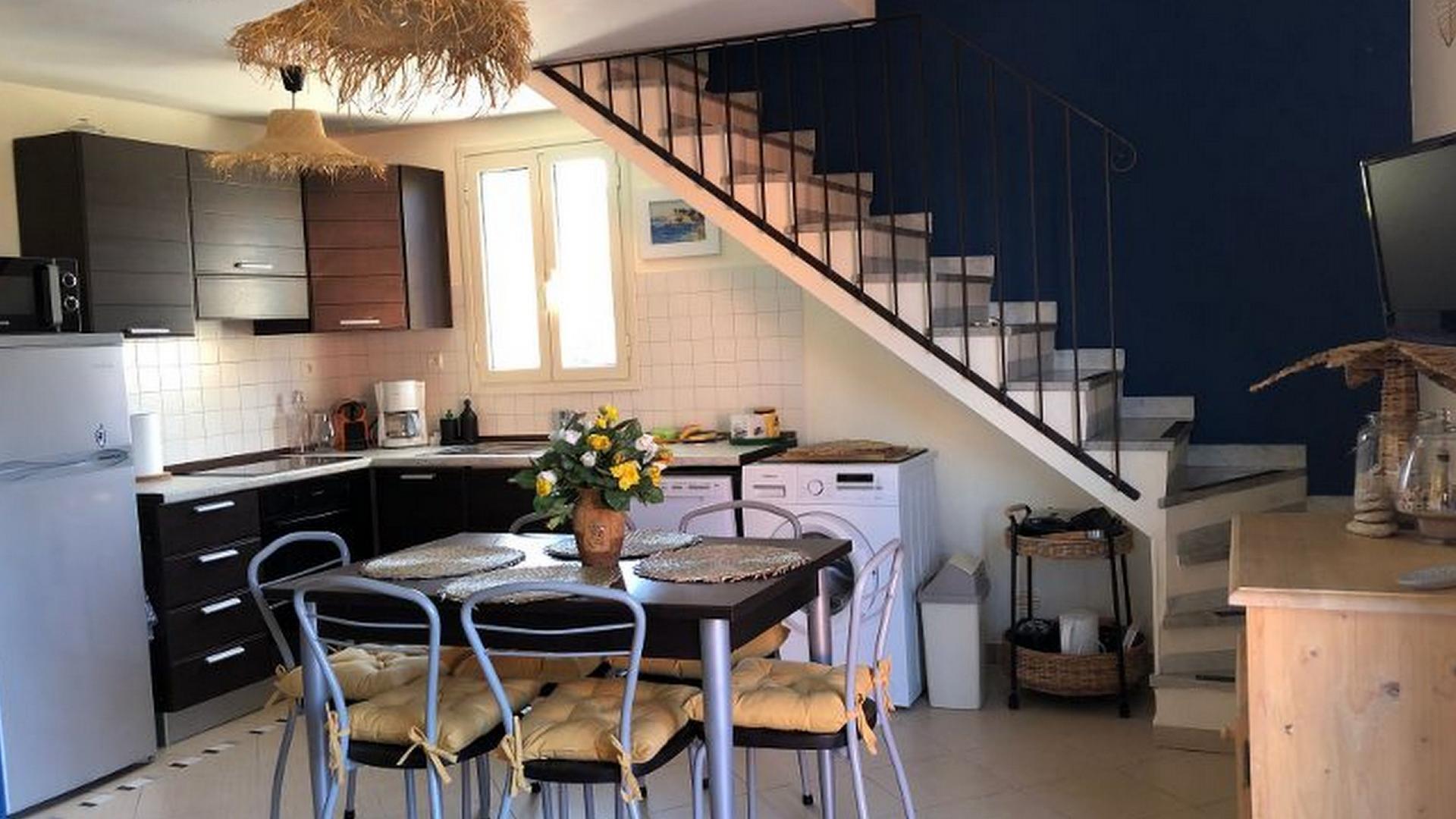 Outside, make the most of access to a large swimming pool with sun loungers and a children's pool. What's more, from your terrace overlooking the sea and pool, you can relax or enjoy your meals al fresco thanks to the garden furniture and parasol provided. A baby high chair, an umbrella bed and beach chairs are also available to ensure the comfort of the whole family.