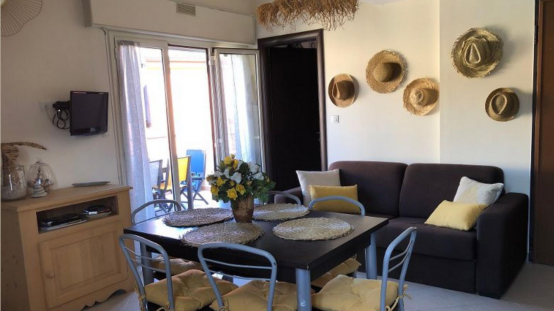 The flat's bright, air-conditioned interior has been designed with your comfort in mind. It opens onto two terraces with sea or mountain views. The living room has a double sofa bed, satellite HDTV, a table with six chairs and two pieces of solid pine occasional furniture. The open-plan kitchen leaves nothing to be desired, fully equipped with oven, ceramic hob, microwave, filter and Nespresso coffee makers, kettle, toaster, fridge-freezer, dishwasher and washing machine. A BBQ is also available, as is a bedroom with two solid pine beds and a bathroom with a walk-in shower.