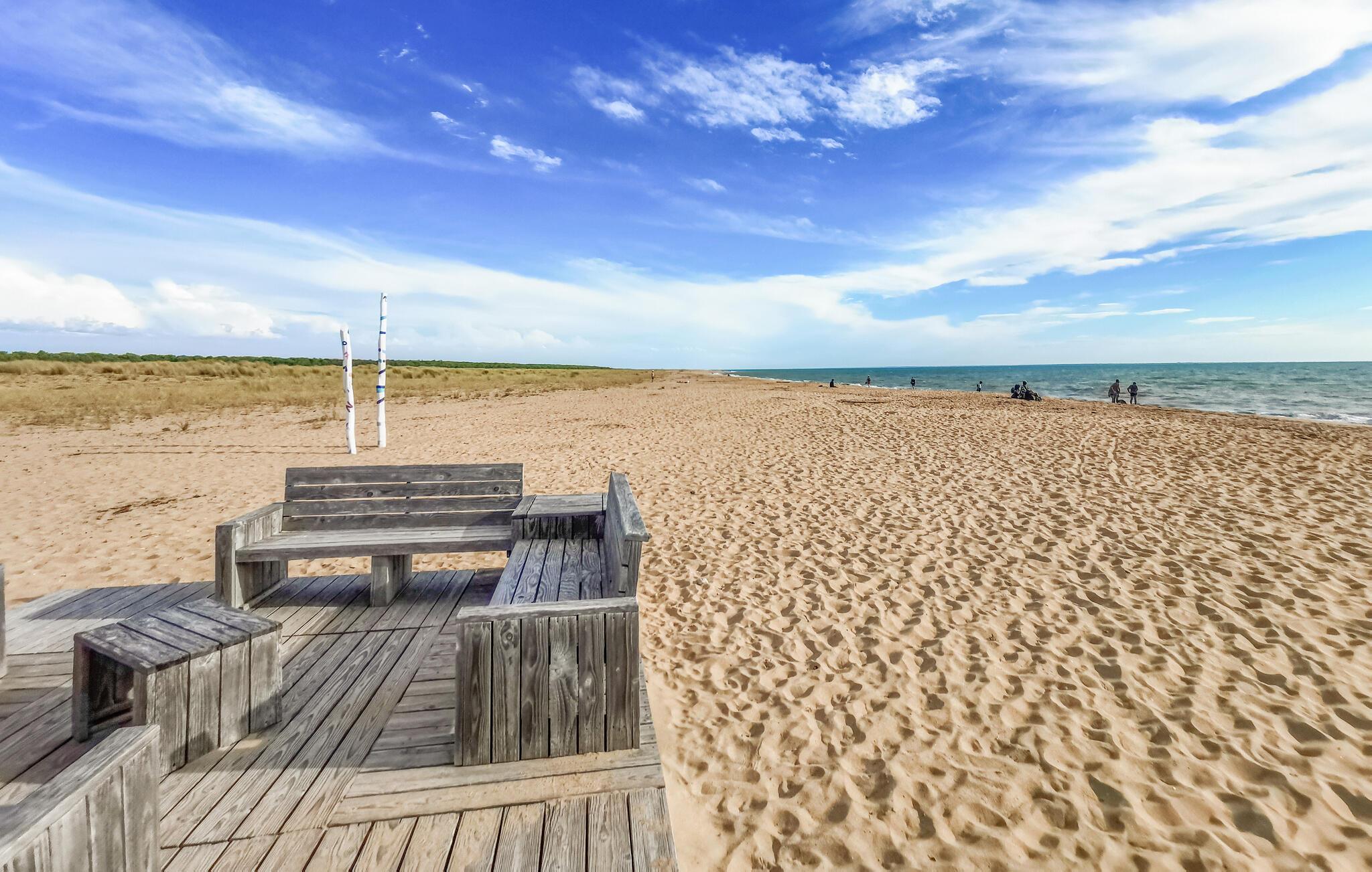 Erleben Sie die Küste von L'Aiguillon la Presqu'île. Die Umgebung bietet Ihnen vielfältige Möglichkeiten zur Erholung und Freizeitgestaltung. Nur wenige Minuten entfernt, erwarten Sie schöne Strände und der lebendige Hafen, der zum Flanieren und zu Bootstouren einlädt. Entdecken Sie regionale Köstlichkeiten in den charmanten Restaurants oder unternehmen Sie Wanderungen und Fahrradtouren durch die Natur. Die Region bietet zudem zahlreiche Rad- und Wanderwege entlang der Küste, die Sie direkt in die wunderschöne Landschaft und zu den Stränden führen.