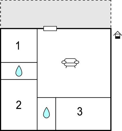 Badezimmer 3m2 (nr. 1) - Warmes und kaltes Wasser. Dusche