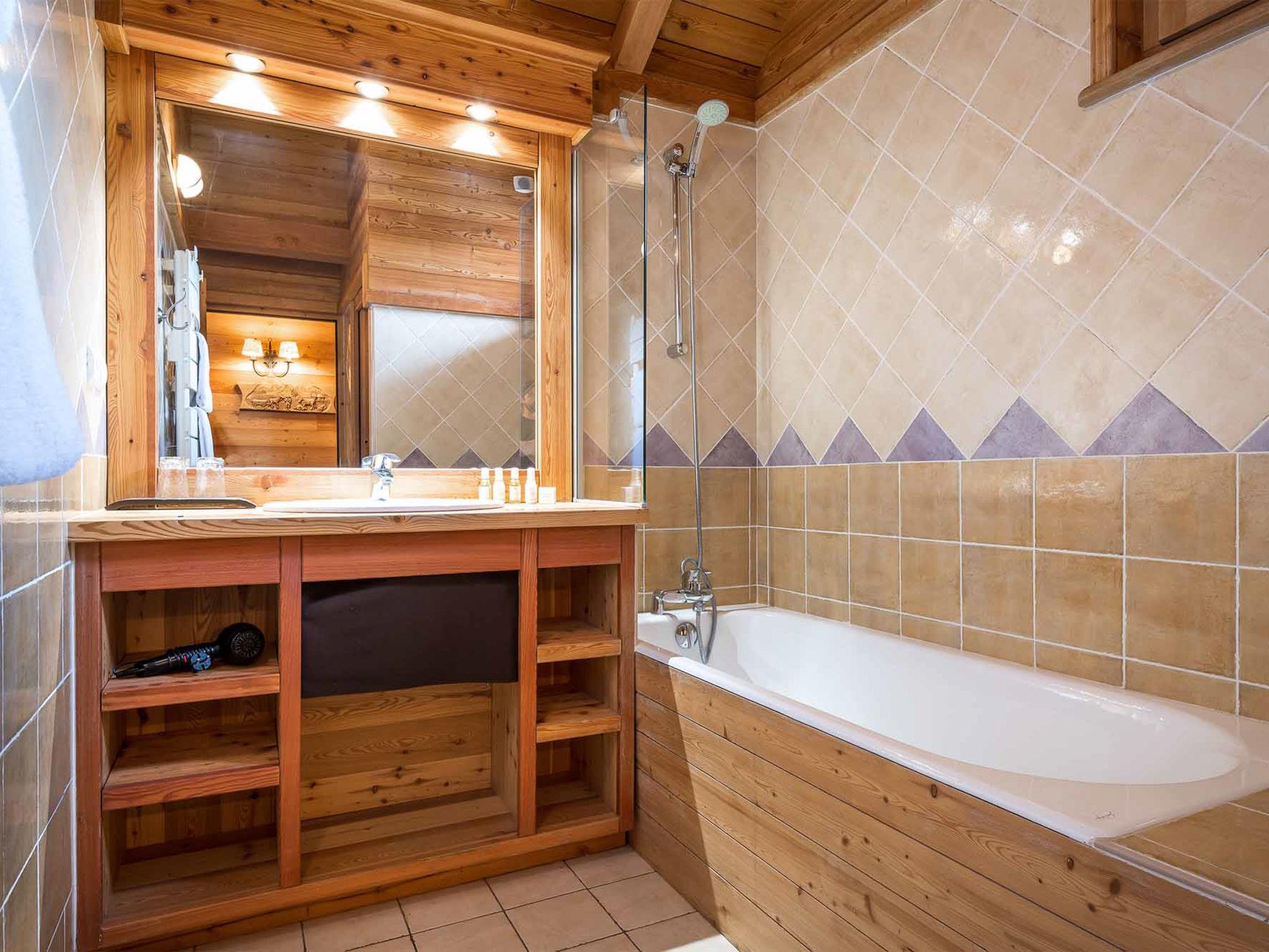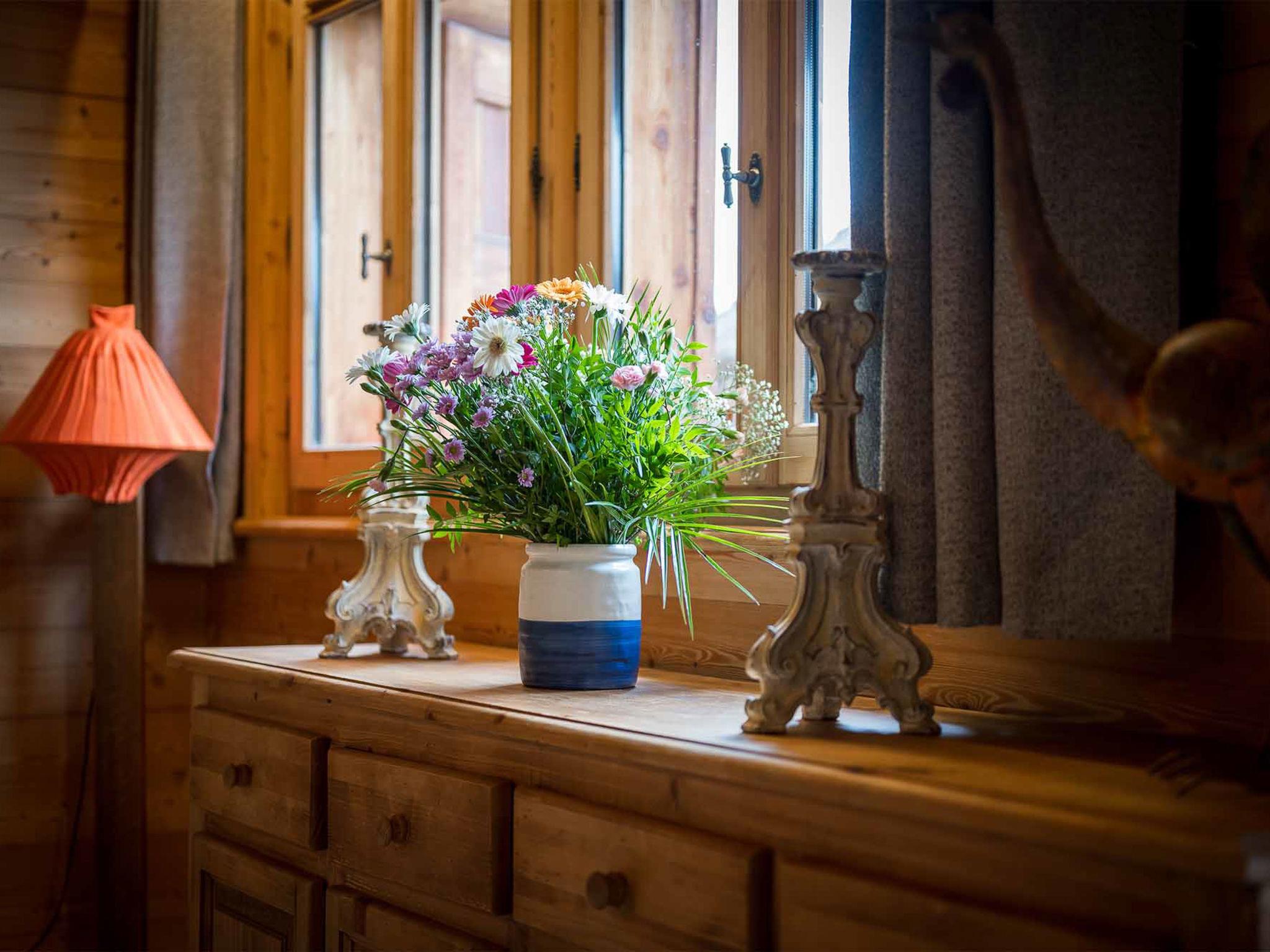 "Chalet Lièvre Blanc", 8-room chalet 300 m2 on 3 levels. Tasteful and wooden furniture furnishings: on the lower ground floor: 2 rooms, each room with 2 beds (90 cm, length 190 cm), bathroom. Exit to the balcony. Upper floor: living/dining room with open-hearth fireplace, dining table, TV and flat screen. Exit to the balcony. 1 room with 2 beds and bathroom. Exit to the balcony. Open kitchen (oven, dishwasher, 4 induction hot plates, toaster, kettle, microwave, freezer, electric coffee machine, Capsules for coffee machine (Nespresso) extra). 2nd upper floor: 2 rooms, each room with 2 beds (90 cm, length 190 cm), bathroom. Exit to the balcony. 1 room with 1 french bed (1 x 160 cm, length 190 cm), shower. Exit to the balcony. 3nd upper floor: 1 large room with 2 sleeping facilities and bathroom. Exit to the balcony. 1 pet/ dog allowed. The entrance to the chalet is on the ground floor, where there is also a ski room allowing you to store and dry your ski belongings and clothes. There is also a WC near the staircase as well as an indoor spa area.