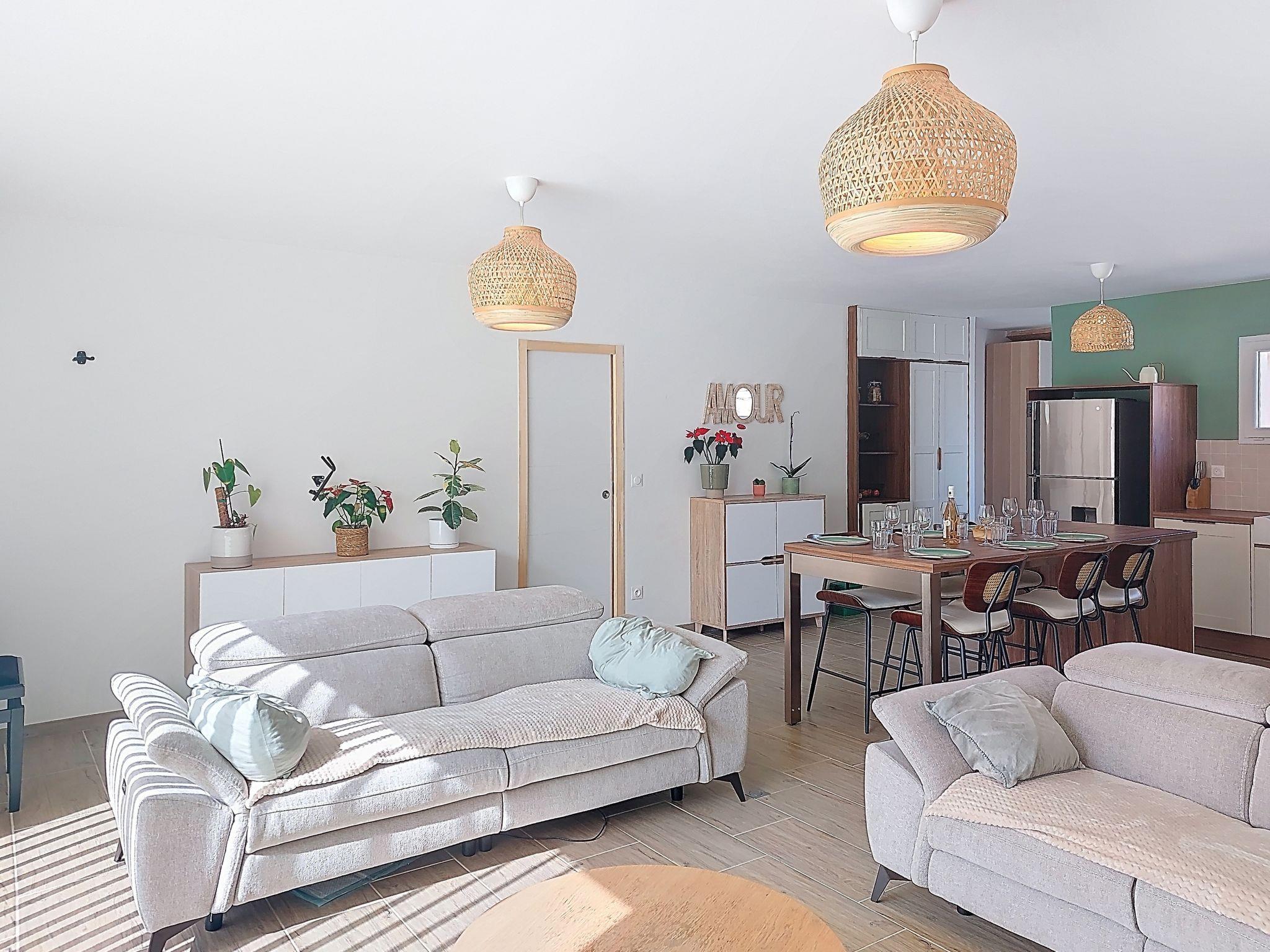 "AQUI SIAN BEN", 4-room villa 120 m2. Comfortable and modern furnishings: large living/dining room with TV (flat screen), air conditioning. Exit to the terrace. 1 room with 1 french bed (160 cm, length 200 cm), separate WC, shower, double hand-basin and TV (flat screen), air conditioning. Exit to the terrace. 1 room with 1 pull-out bed (2 pers. 2 x 80 cm, length 190 cm). 1 room with 1 french bed (140 cm, length 190 cm). Open kitchen (oven, dishwasher, 5 induction hot plates, toaster, kettle, microwave, freezer, electric coffee machine, cooking island) with dining table. Bathroom, sep. WC, double hand-basin. Electric heating. Terrace 40 m2, south facing position. Terrace furniture, barbecue, deck chairs (6). Facilities: washing machine, iron, baby cot for up to 3 year olds, hair dryer. Internet (WiFi, free). Please note: non-smoking house. Maximum 1 pet/ dog allowed. The pool mentioned in the description is for private use. Offer by a private individual according to Art. 155, IV of CGI. 840540011307T