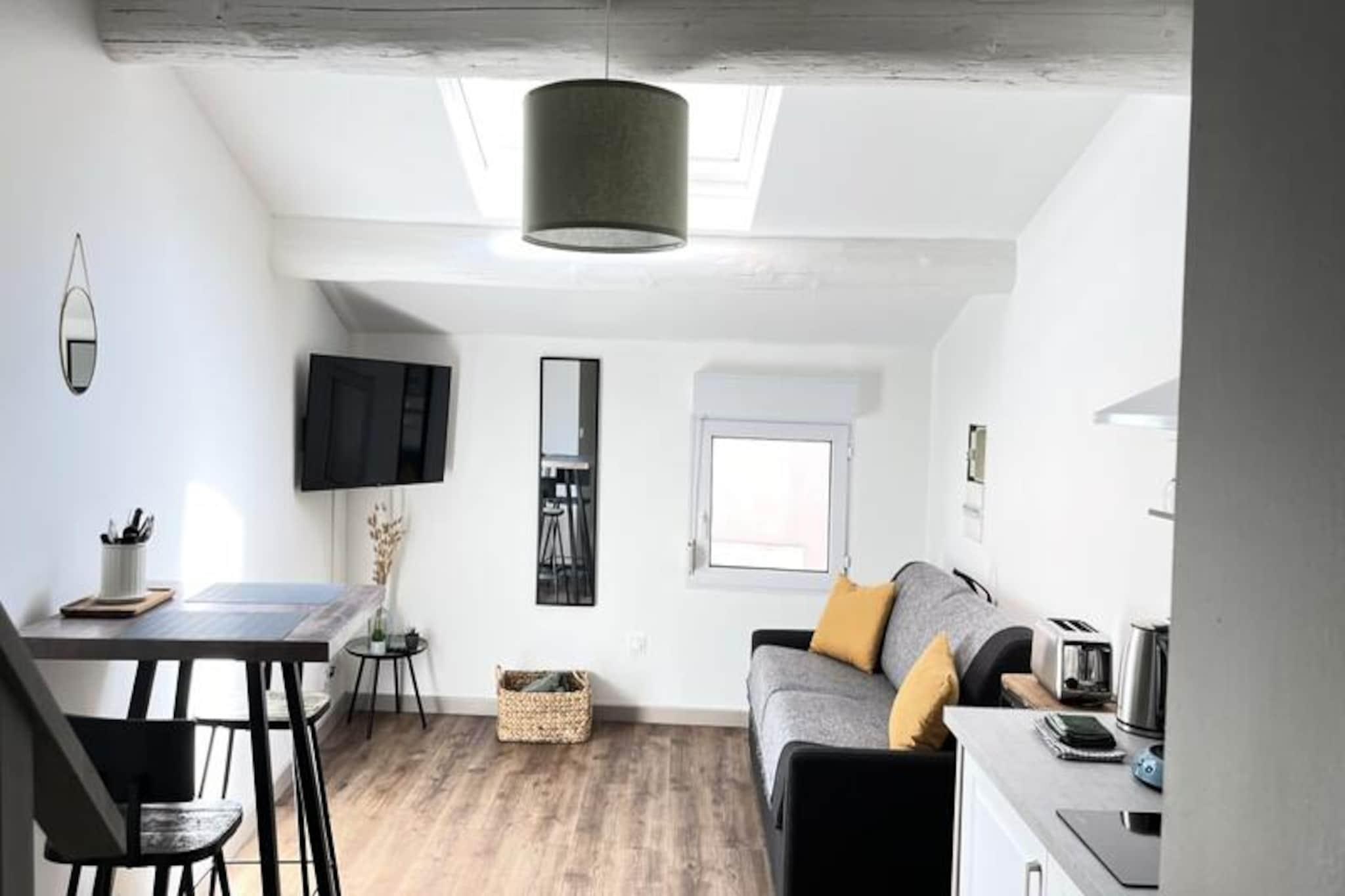 Step into the heart of Provence and let the charm of L'Isle-sur-la-Sorgue, known as the 'Venice of Provence,' captivate your senses. This delightful studio apartment, tucked away in a peaceful neighborhood, offers an intimate retreat for couples seeking a romantic getaway. Surrounded by the town's iconic canals and vibrant markets, this is your gateway to the true essence of southern France. The studio is thoughtfully designed to maximize comfort and style. Its cozy layout features a fully equipped kitchenette where you can prepare meals with fresh local ingredients, a welcoming living area with a plush sofa bed, and a charming mezzanine that houses the shower room and toilet, accessed via an elegant Japanese-style staircase. The tasteful decor blends contemporary touches with Provençal warmth, creating a serene and inviting ambiance for your stay. Step outside and immerse yourself in the picturesque streets of L'Isle-sur-la-Sorgue, renowned for its antique shops, colorful markets, and the soothing melody of cicadas in the summer. Just a short drive away, discover the natural beauty of Fontaine-de-Vaucluse and the perched villages of the Luberon, including Gordes, Ménerbes, and Roussillon. For those seeking even more adventure, the Alpilles region, with its treasures like Saint-Rémy and Les Baux, awaits your exploration. Whether you're strolling along the canals, savoring Provençal cuisine, or simply relaxing in the comfort of this charming studio, your stay promises to be an enchanting escape to the rhythm of the South. Perfectly suited for two, this is a haven of peace, privacy, and unforgettable memories.