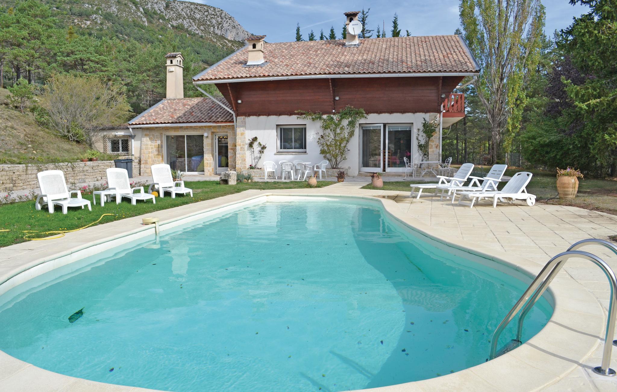 Originell dekoriert und überdies geschmackvoll eingerichtet finden Sie diese Villa. Sie liegt in einem riesigen Garten und ist im Stil eines Schweizerhauses errichtet. Vom Haus haben Sie eine herrliche Aussicht auf die Berge der Umgebung und die duftenden Nadelbäume rund um das Eigentum. Liegestühle und Gartenmöbel stehen Ihnen rund um den Swimmingpool zur Verfügung. In der Nähe vom Haus liegt La Bastide, eine Ortschaft mit einem Restaurant, einem Bäcker und einem lokalen Geschäft. Sie erreichen die Einrichtungen nach 500 m zu Fuß. Dem morgendlichen Croissant steht demnach nichts im Wege. Das Haus ist perfekt für Wanderer, Naturfreunde und Radfahrer geeignet. In unmittelbarer Nähe liegt auch ein Center für Delta-Flugzeuge, wo der Club Ihnen in der Ortschaft Rouge Eslapon Kurse anbietet. Die Besucher werden hier mit unterschiedlichsten Ausflugszielen verwöhnt, z. B. mit der Schlucht des Verdon und dem See Sainte-Croix. Kletterer finden auch markierte Steige zum Ausprobieren.