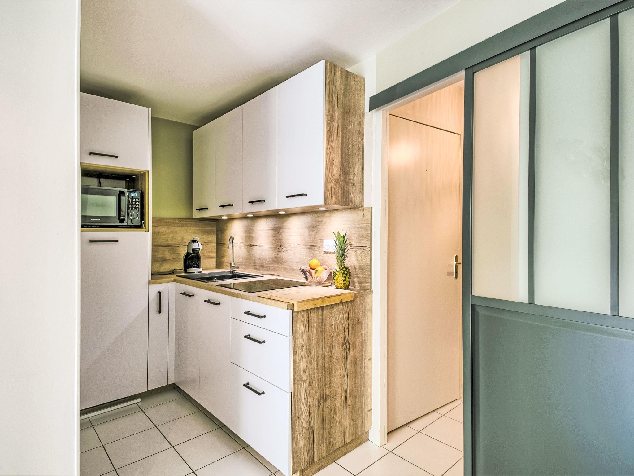 2-room apartment 35 m2 on 1st floor. Object suitable for 2 adults + 2 children. Renovated in 2024, beautiful furnishings: entrance hall. Small alcove with curtain with 2 sleeping facilities (80 cm, length 190 cm). Living/dining room with TV (flat screen). Exit to the balcony. 1 small room with sliding door with 1 french bed (160 cm, length 200 cm). Exit to the balcony. Open kitchen (dishwasher, 2 induction hot plates, toaster, kettle, microwave, freezer, electric coffee machine). Bathroom, sep. WC. Electric heating. Balcony 8 m2, south facing position and south-west facing position. Balcony furniture, deck chairs (2). Facilities: washing machine, iron, hair dryer. Internet (WiFi, free). Parking space n 57. Please note: non-smokers only. Smoke alarm. Offer by a private individual according to Art. 155, IV of CGI. 440550040799E