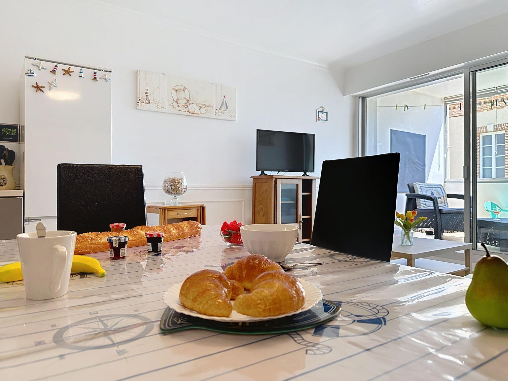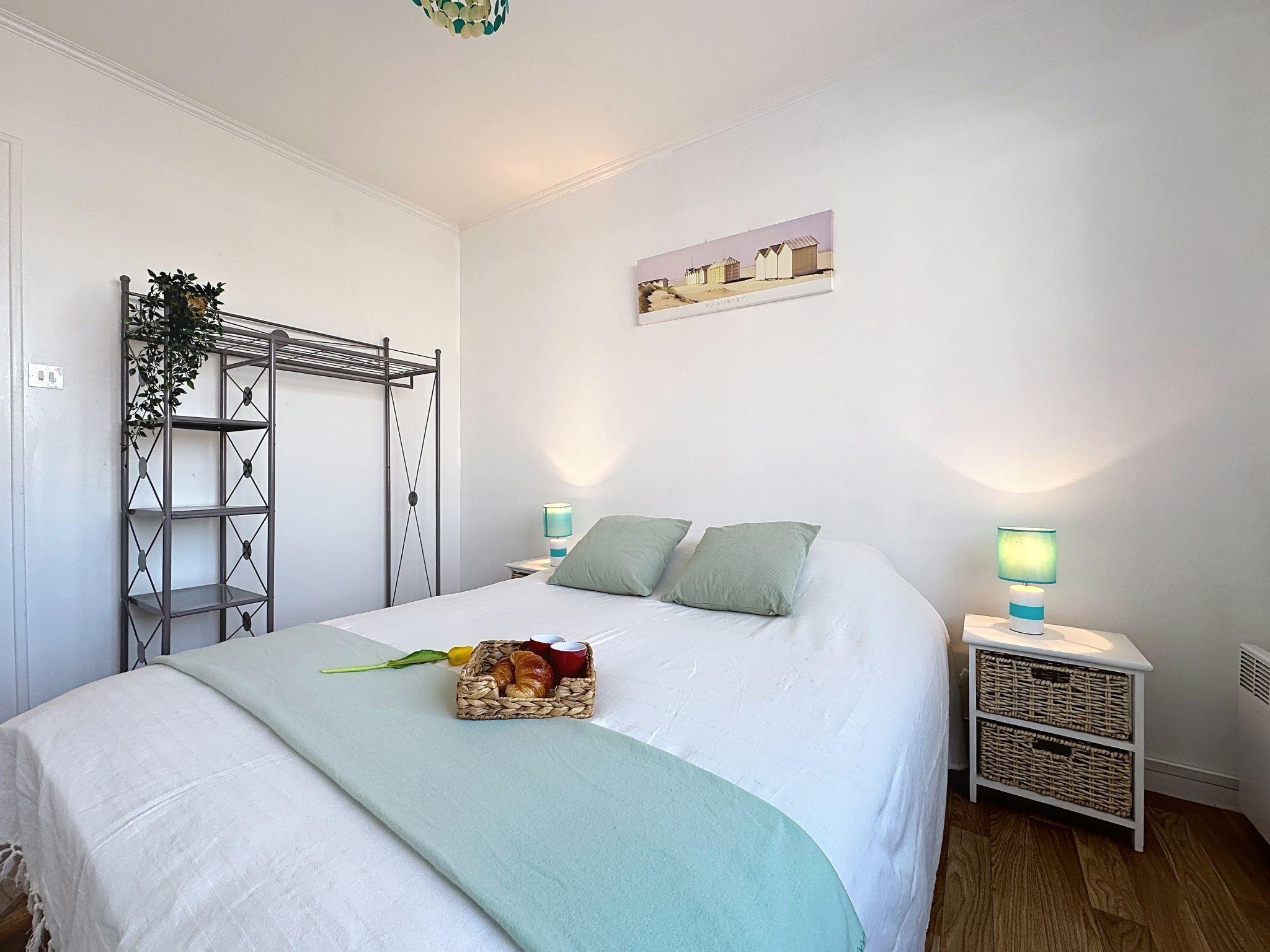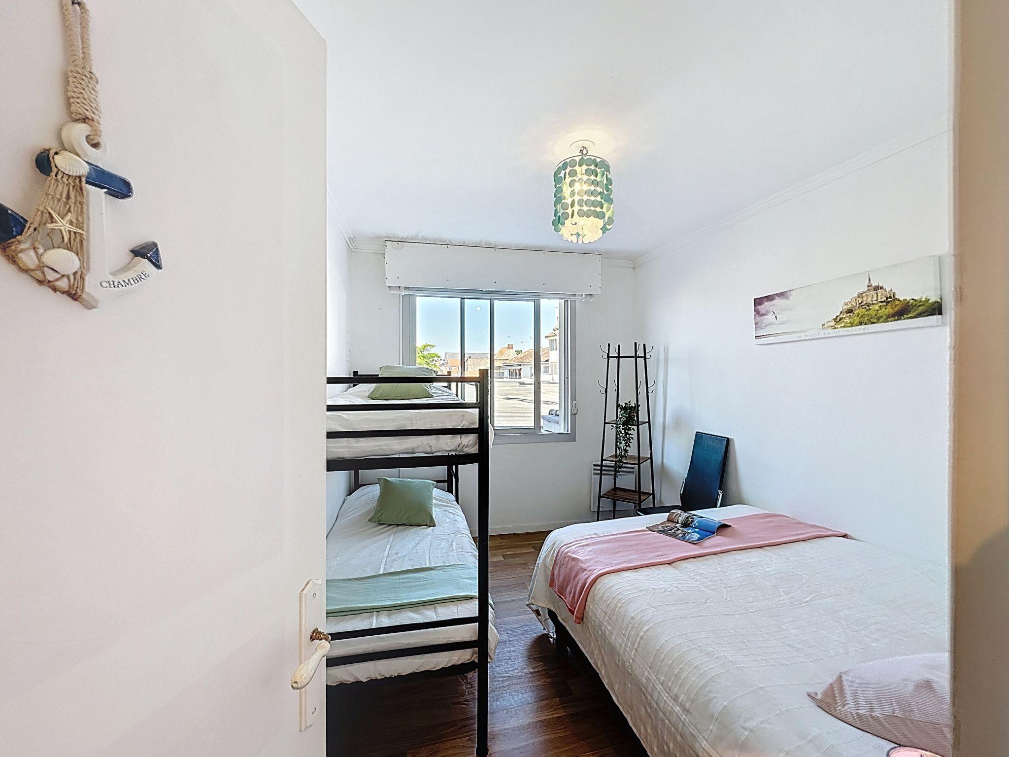 "Résidence de la Mer", 3-room apartment 65 m2 on 1st floor. Living/dining room with TV (flat screen). Exit to the balcony, east facing position. 1 room with 1 x 2 bunk beds (80 cm, length 190 cm), 1 french bed (1 x 140 cm, length 190 cm). 1 room with 1 french bed (1 x 140 cm, length 190 cm), TV (flat screen). Open kitchen (oven, dishwasher, 1 ceramic glass hob hotplate, 3 gas rings, toaster, kettle, microwave, freezer, electric coffee machine, Capsules for coffee machine (Tassimo) extra). Shower, sep. WC. Electric heating. Balcony 9 m2, east facing position. Balcony furniture. Facilities: washing machine, iron, children's high chair, baby cot for up to 2 year olds, hair dryer. Internet (WiFi, extra). Parking space n 3 (roofed, fenced 1 car). Please note: non-smokers only. Smoke alarm, no lift. Offer by a private individual according to Art. 155, IV of CGI. 44012000353W9
