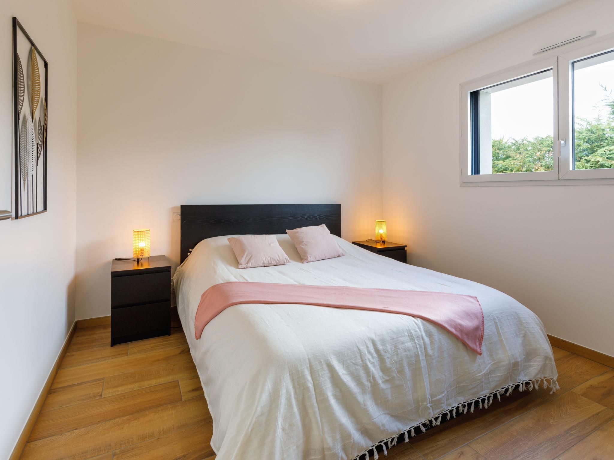 Beautiful single-family house "Le Pré Tarin", 2 storeys, built in 2024. Above La Bernerie en Retz, in a secluded, quiet position in the residential district, 3 km from the sea, 3 km from the beach, south-east facing position. Private: property 500 m2 (fenced), swimming pool (3 x 6 m, depth 100 - 150 cm, seasonal availability: 15.May. - 15.Sep.). Terrace (35 m2), garden furniture, barbecue, parking (for 2 cars). Supermarket 2.5 km, restaurant 2.5 km, bakery 2.5 km, 30 minute walk to the centre, bus stop "Bourg (Navette Estivale)" 2.5 km, railway station "La Bernerie en Retz" 2 km, sandy beach "Grande Plage" 3 km, thermal baths "Alliance Pornic Thalasso & Spa" 8 km. Golf course (18 hole) 11 km, tennis 2.7 km, minigolf 11 km. Nearby attractions: Marché de la Bernerie en Retz 2.5 km, Pornic 9 km, Port du Collet 10 km, Les Machines de l'Ile de Nantes 43 km, La Baule 50 km, Noirmoutier 52 km. Well-known lakes can easily be reached: Lac de Saint Viaud 23 km. The keys‘ handover takes place by the agency Interhome in Pornic, 7 km.